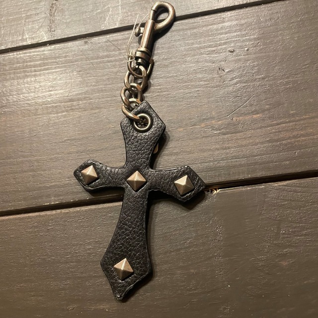 real leatherにスタッズのクロスモチーフがcoolなキーホルダー 鍵とセットでcoordinateのアクセントにはもちろん、バッグチャームにも◎ size color black material leather