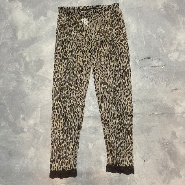 レオパードの総柄がインパクトのあるスパッツ 淡いカラーとブラウンのレースのカラーリングも◎ size W67 cm 丈64cm