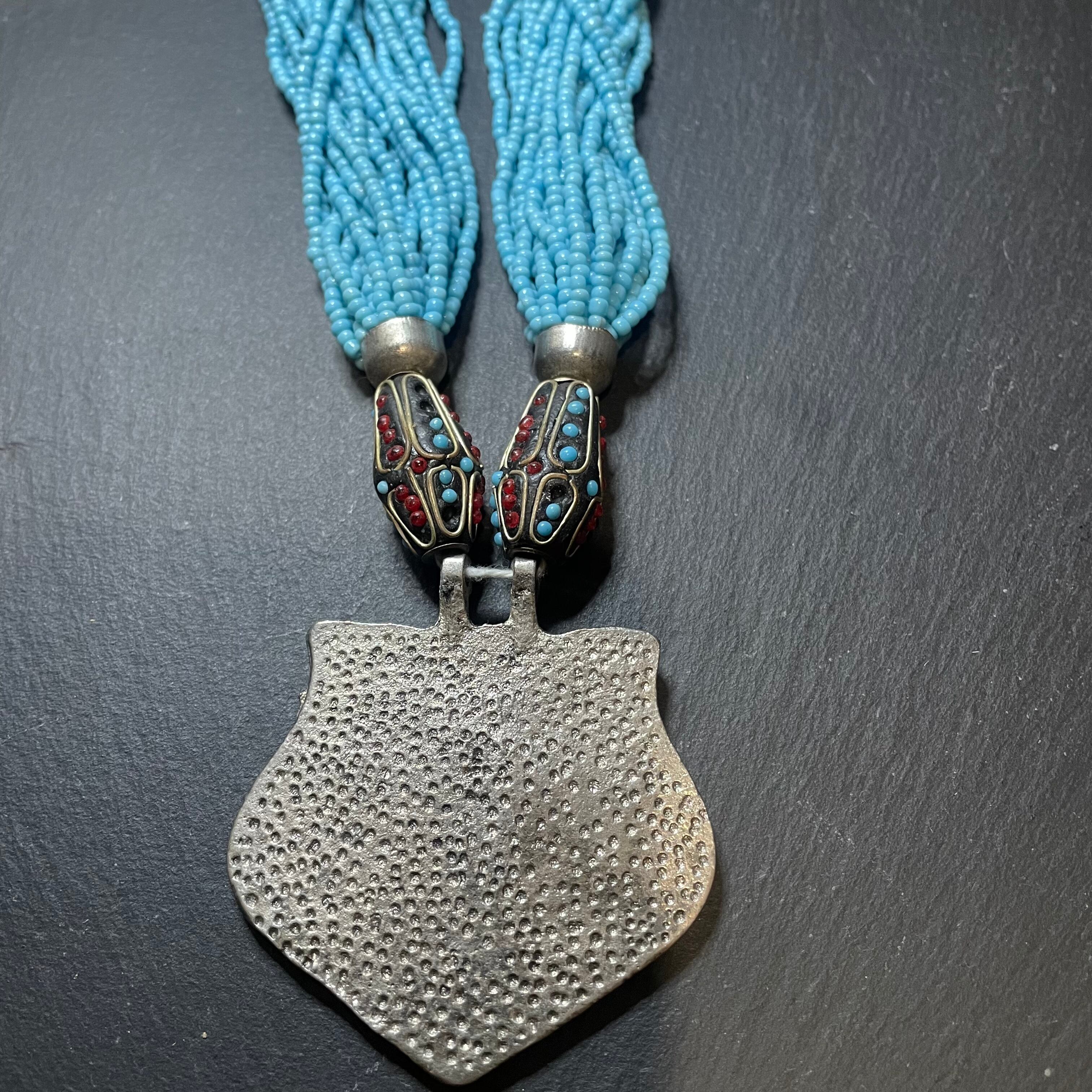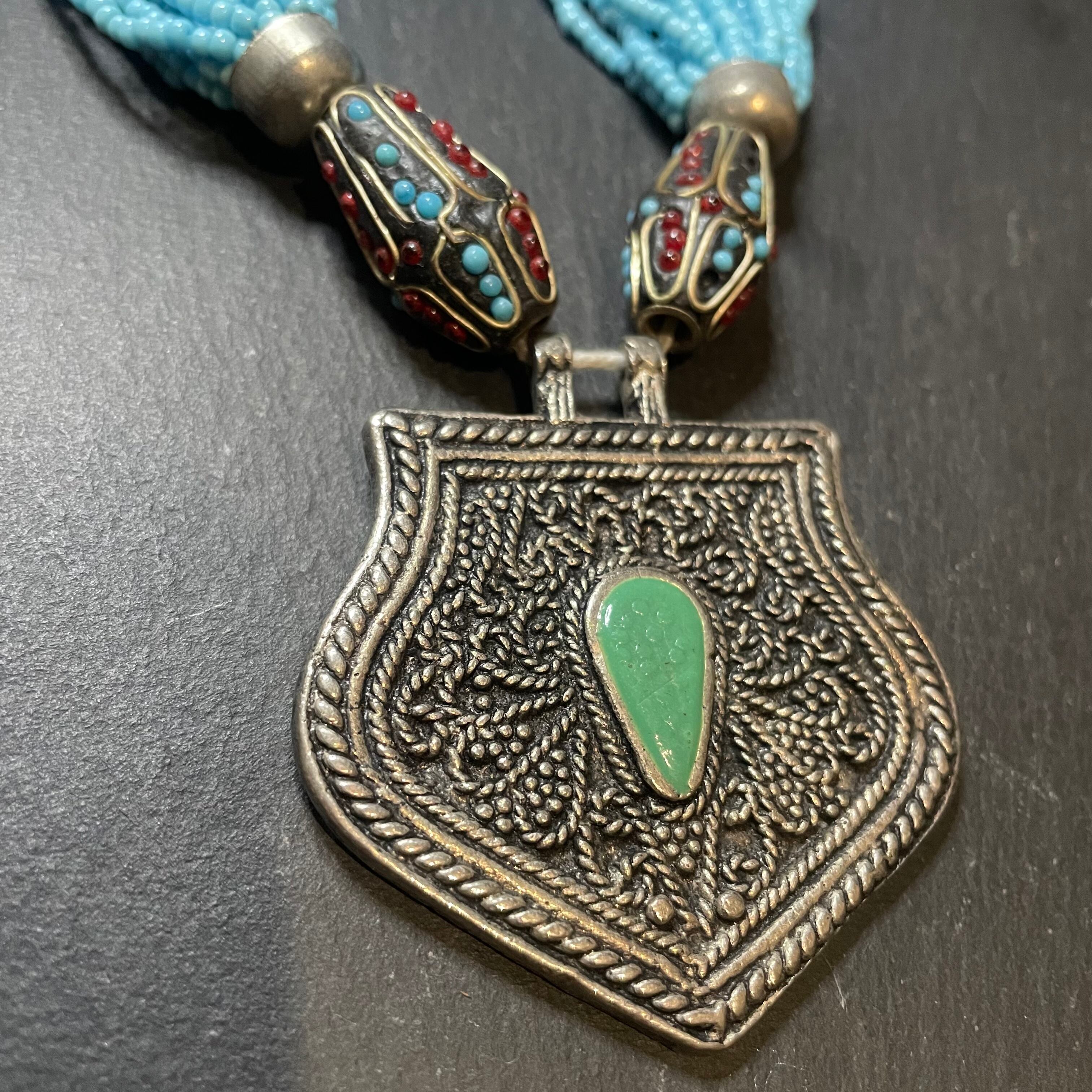 exoticでgorgeousなビーズとターコイズにsilverの雰囲気がcoolなネックレス