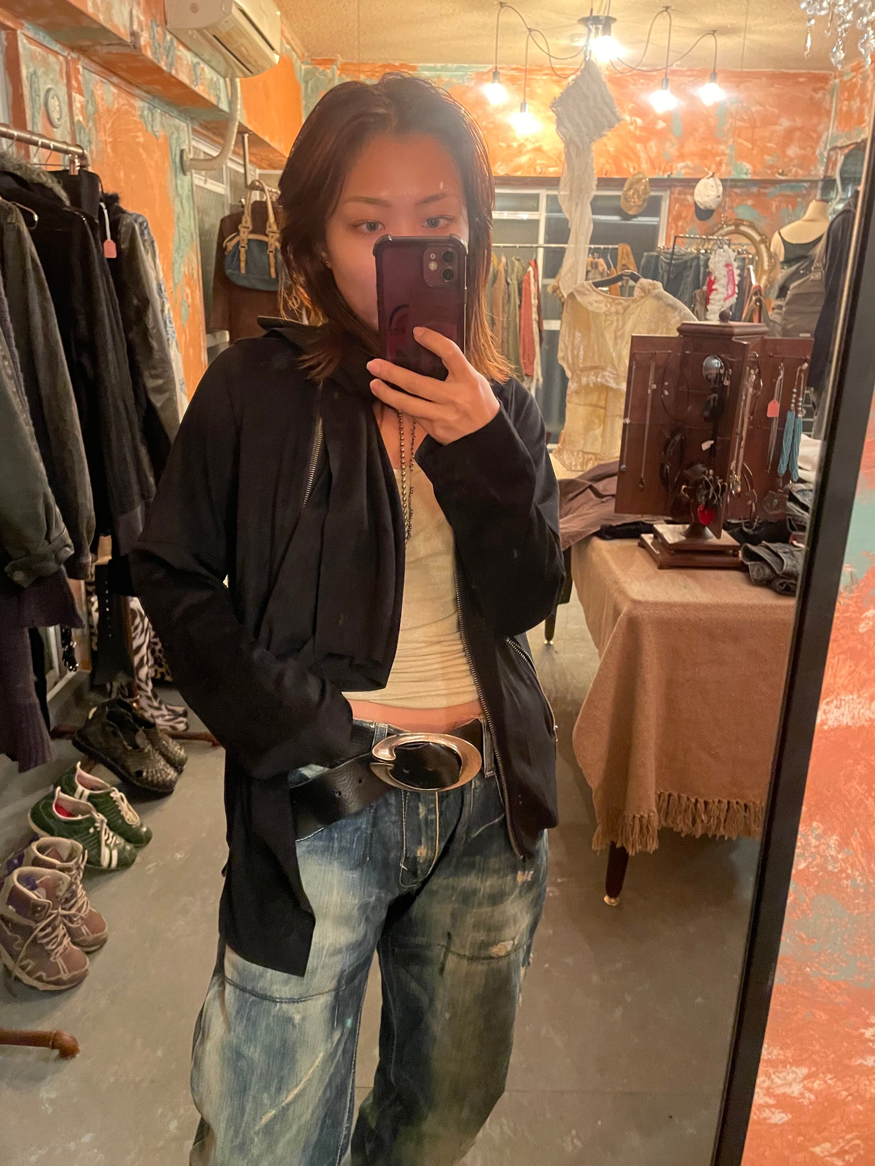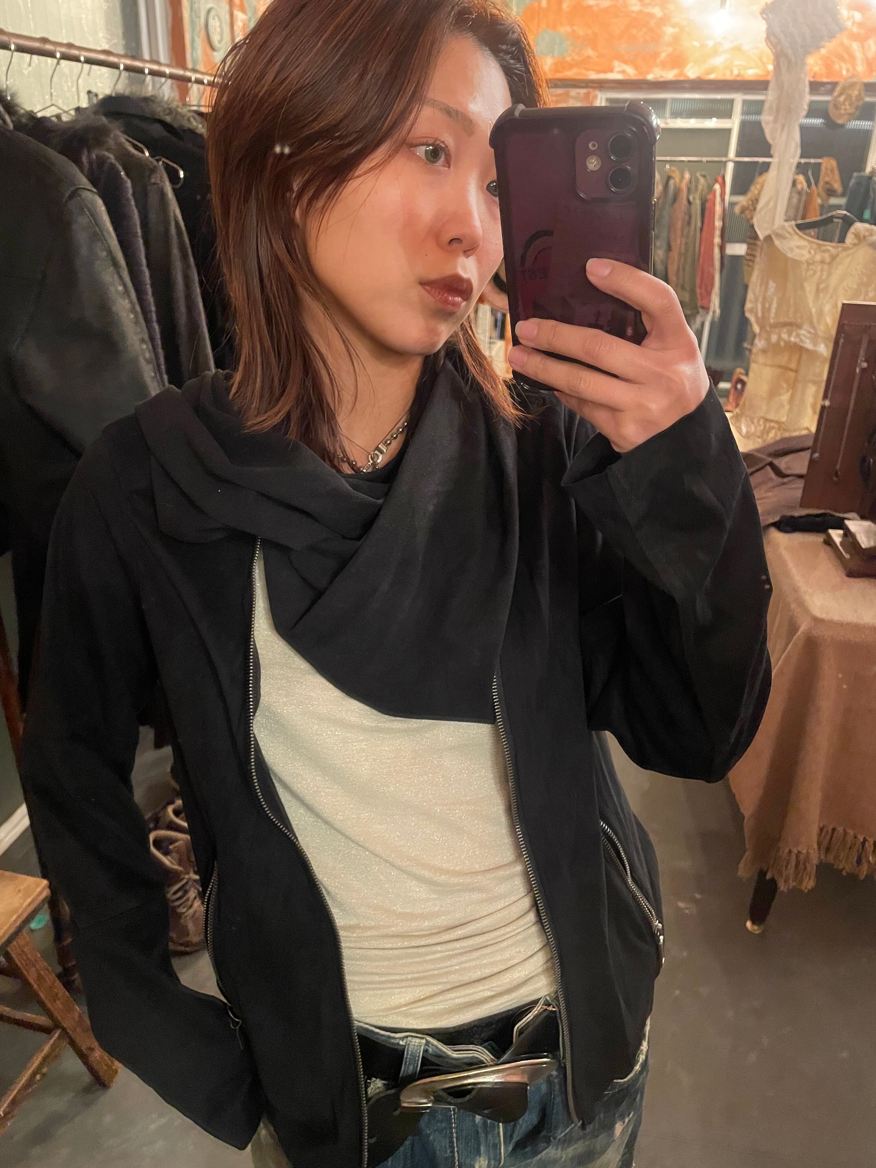 裾のasymmetryなデザイン、ファスナーを開けてまた違う表情に
