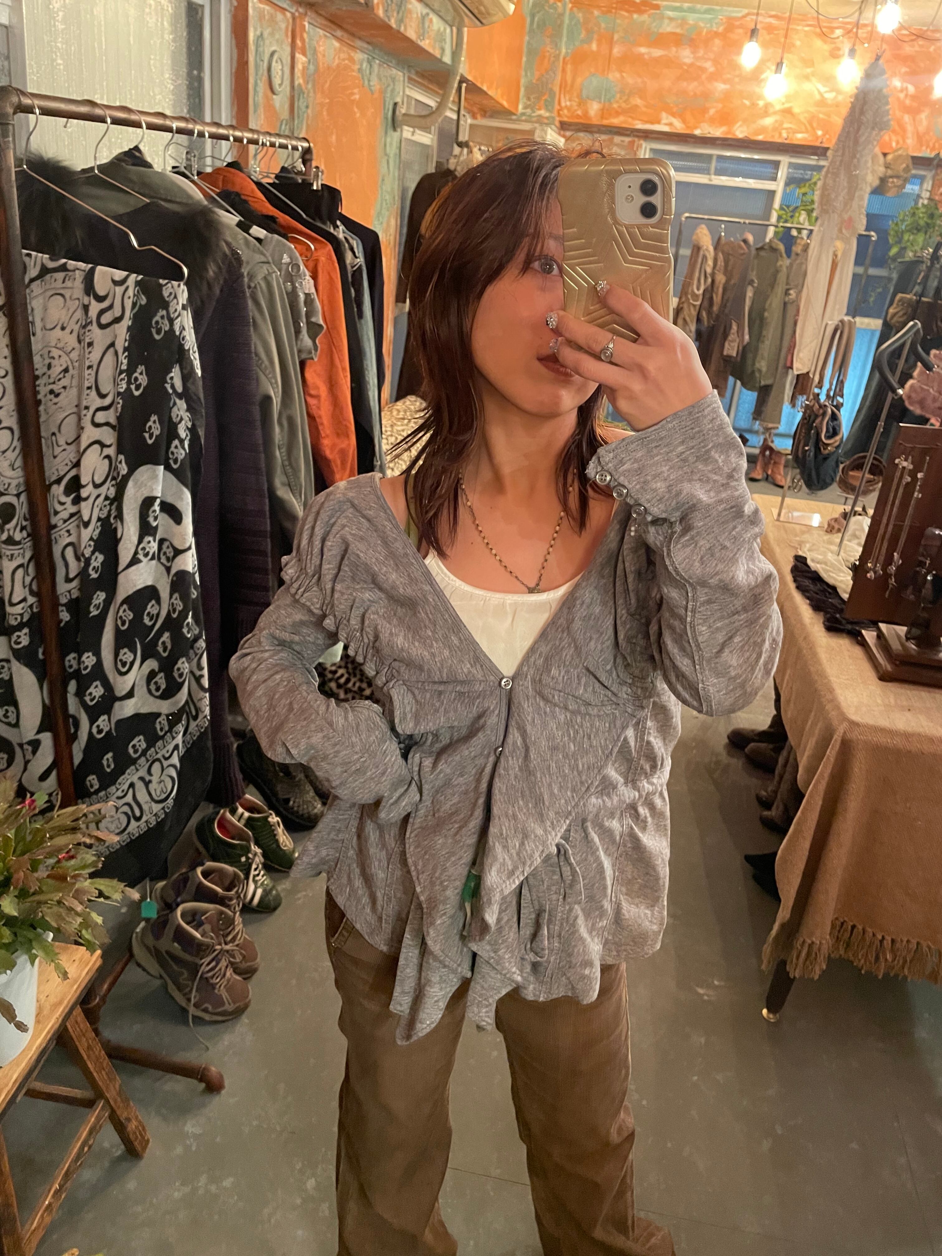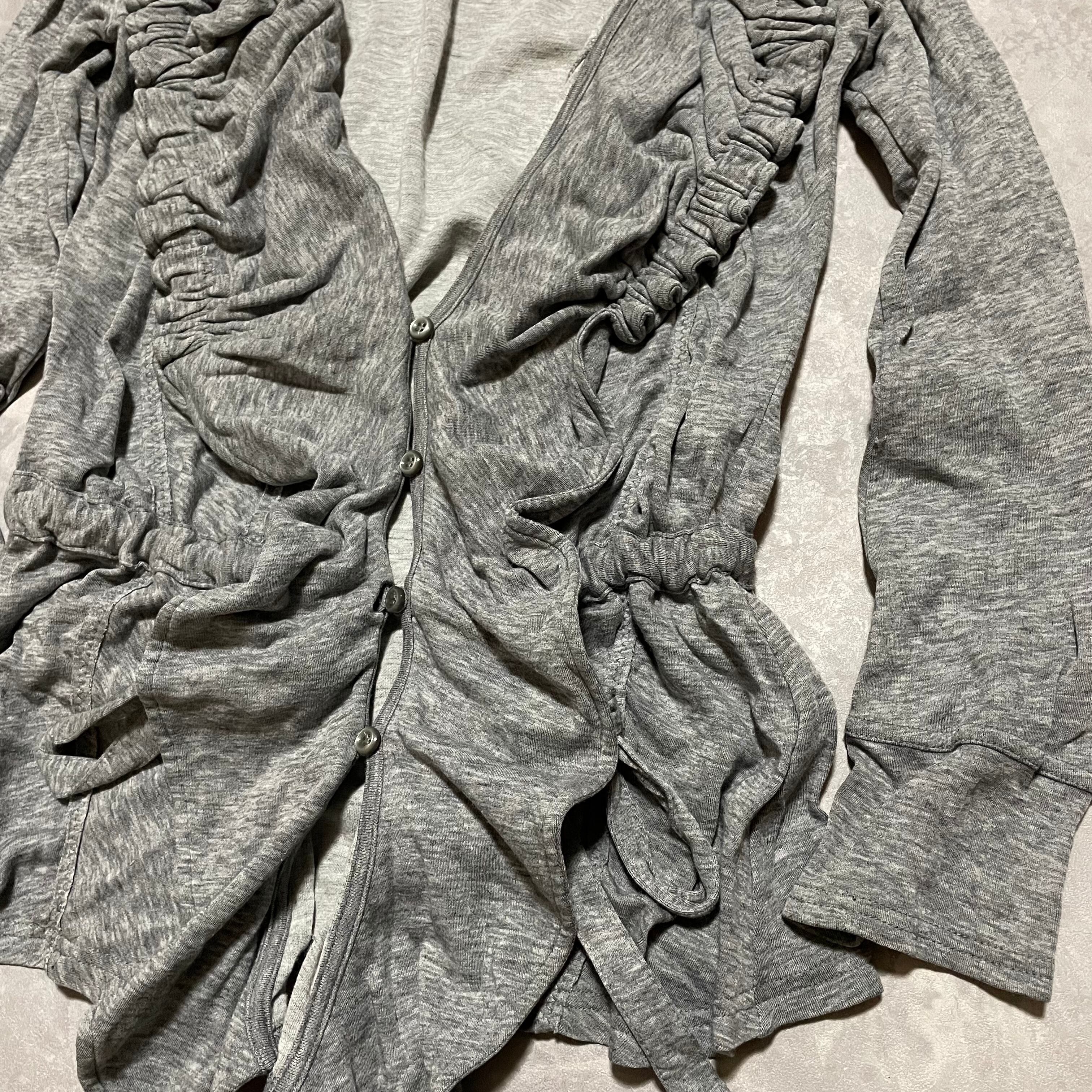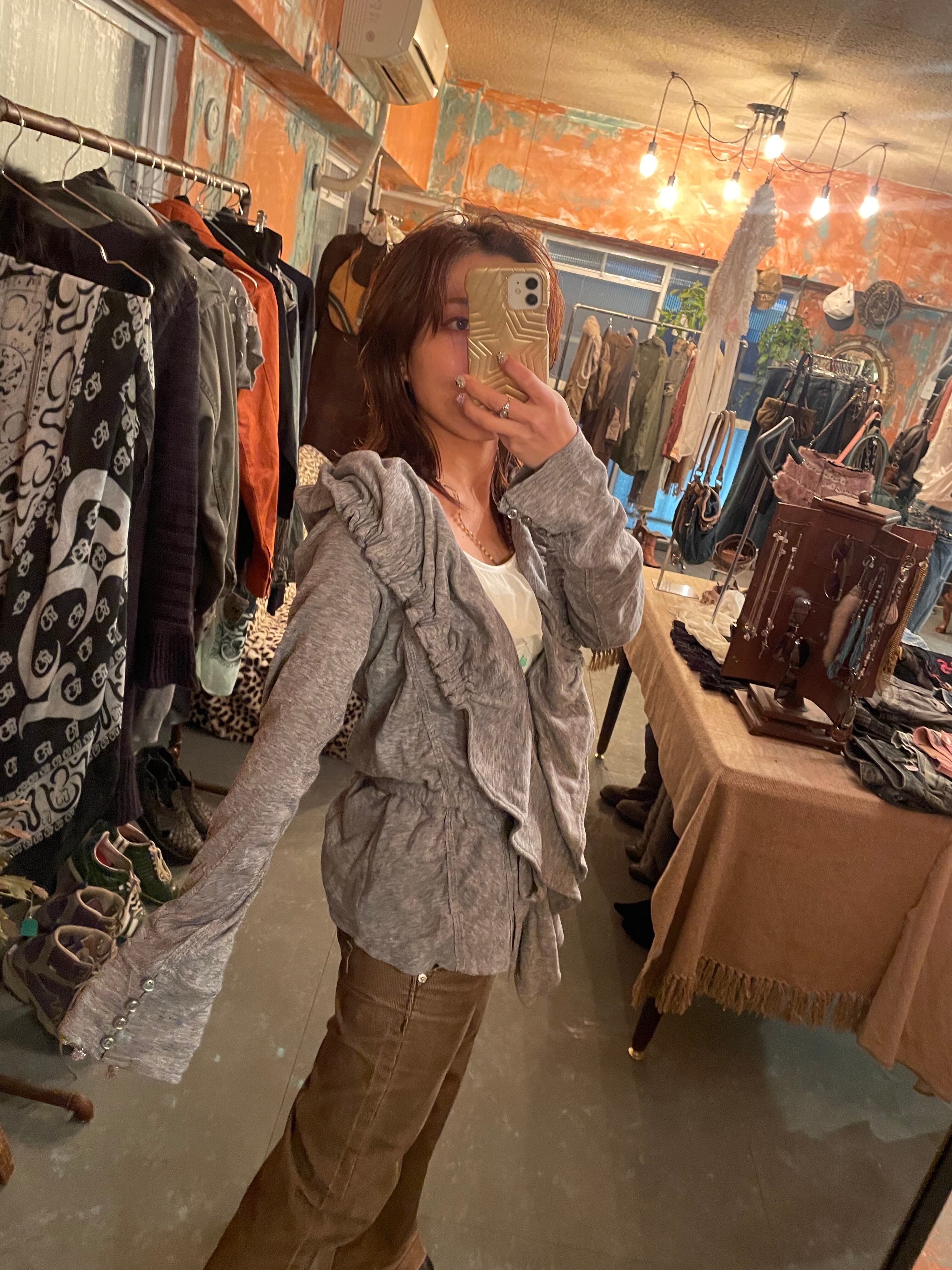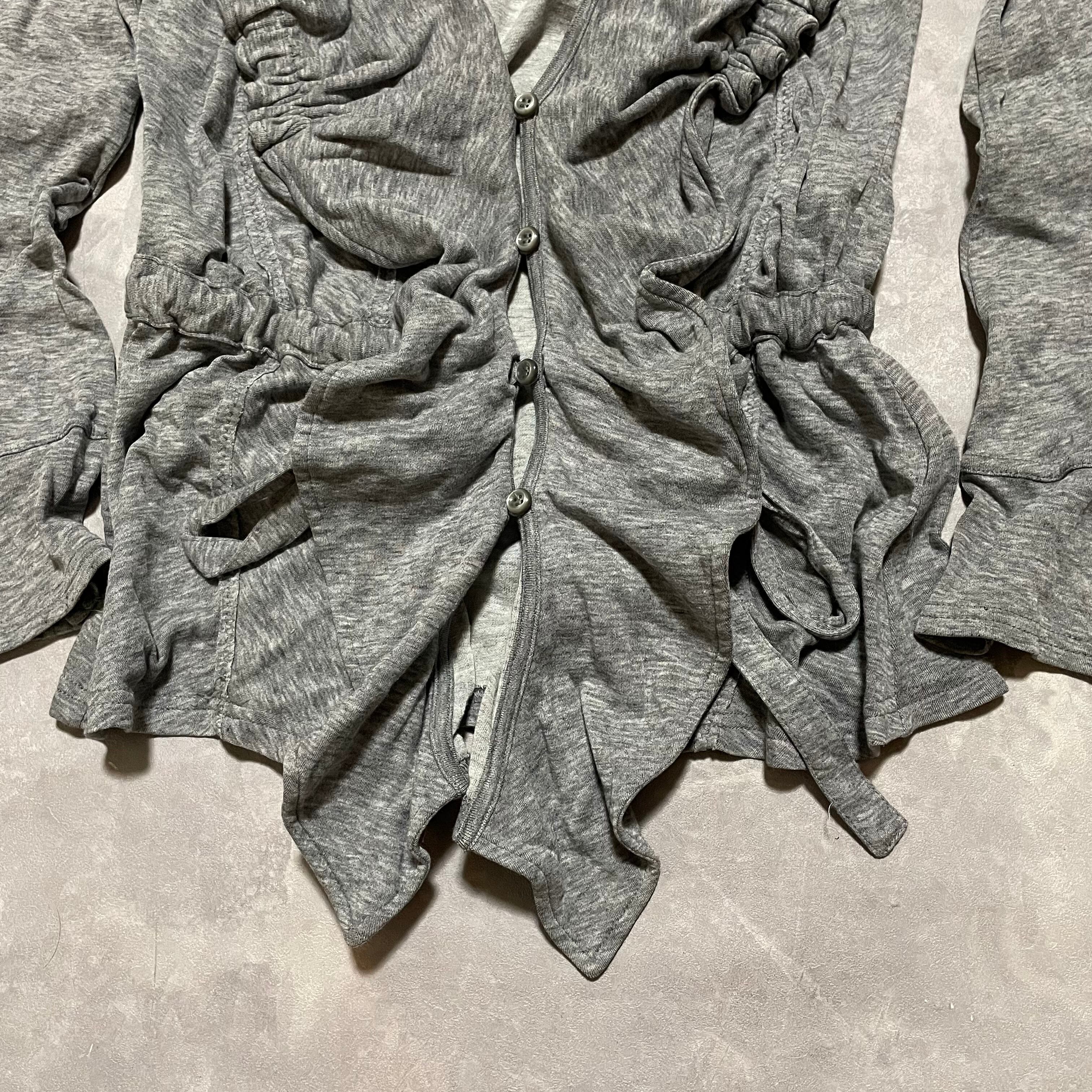 フリルのようにシャーンリングで寄せたdesignがcuteなスウェット素材のカーディガン