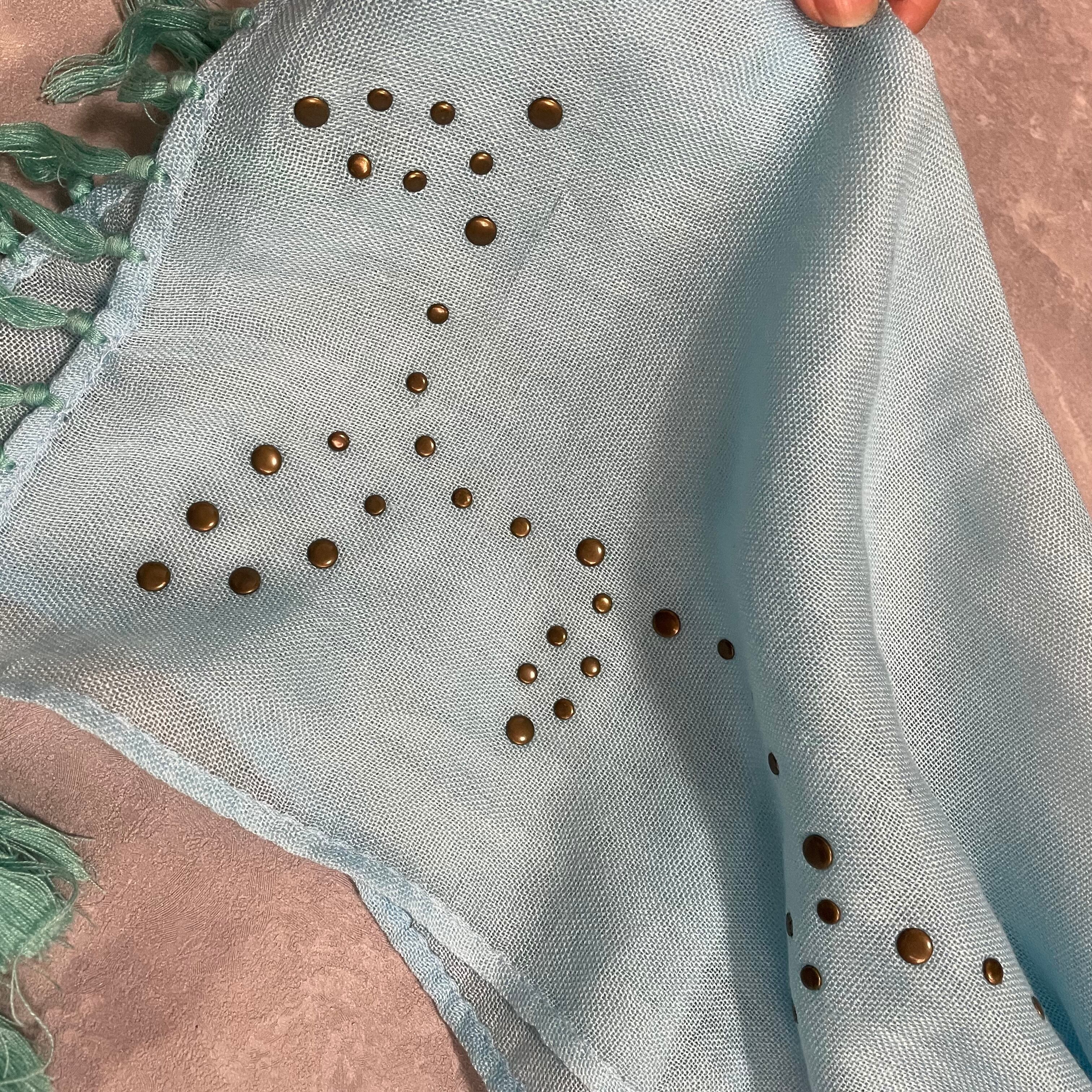きれいなlight blueの色にstudsがアクセントのストール