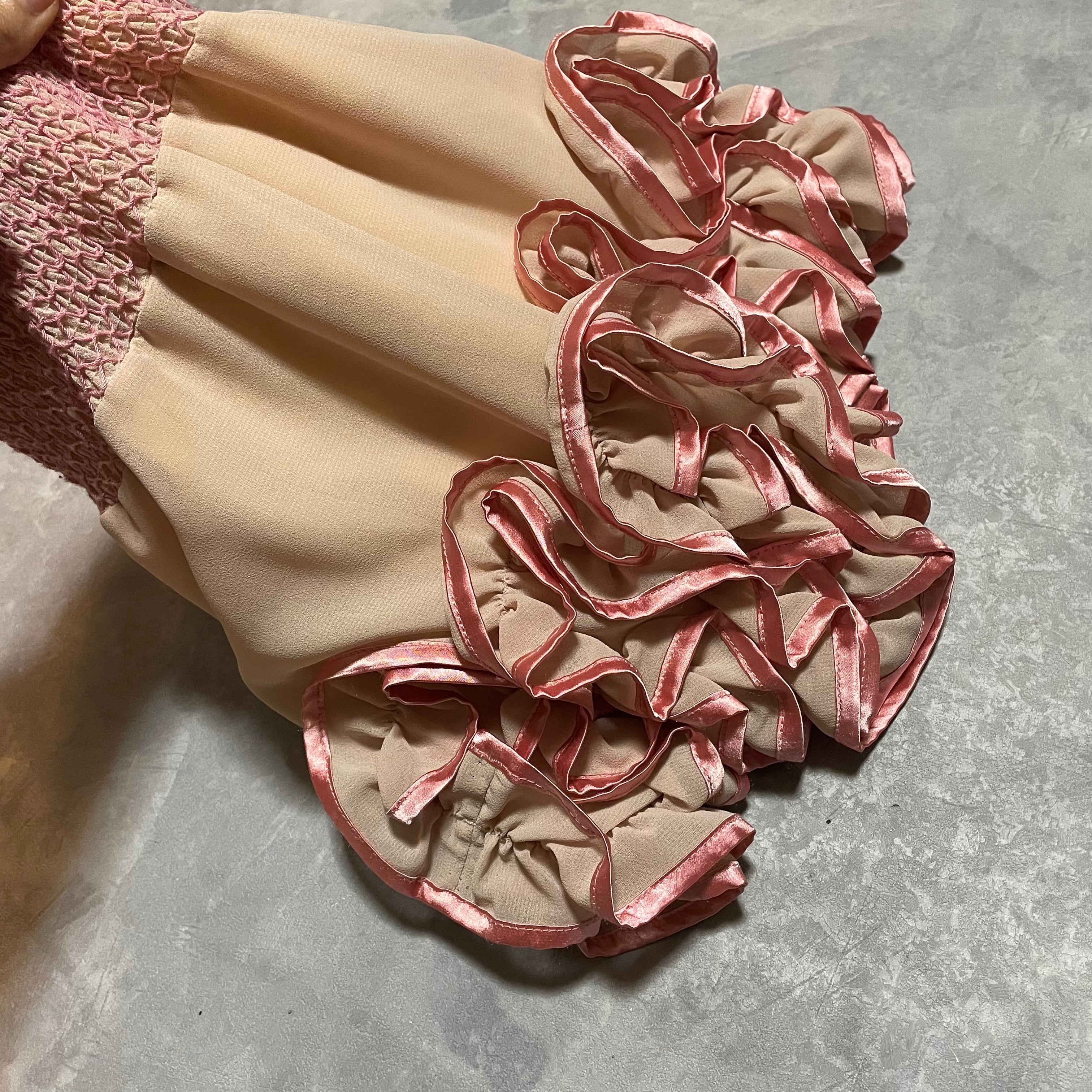 pinkのリボンがアクセントになったフリルのキュロットスカート