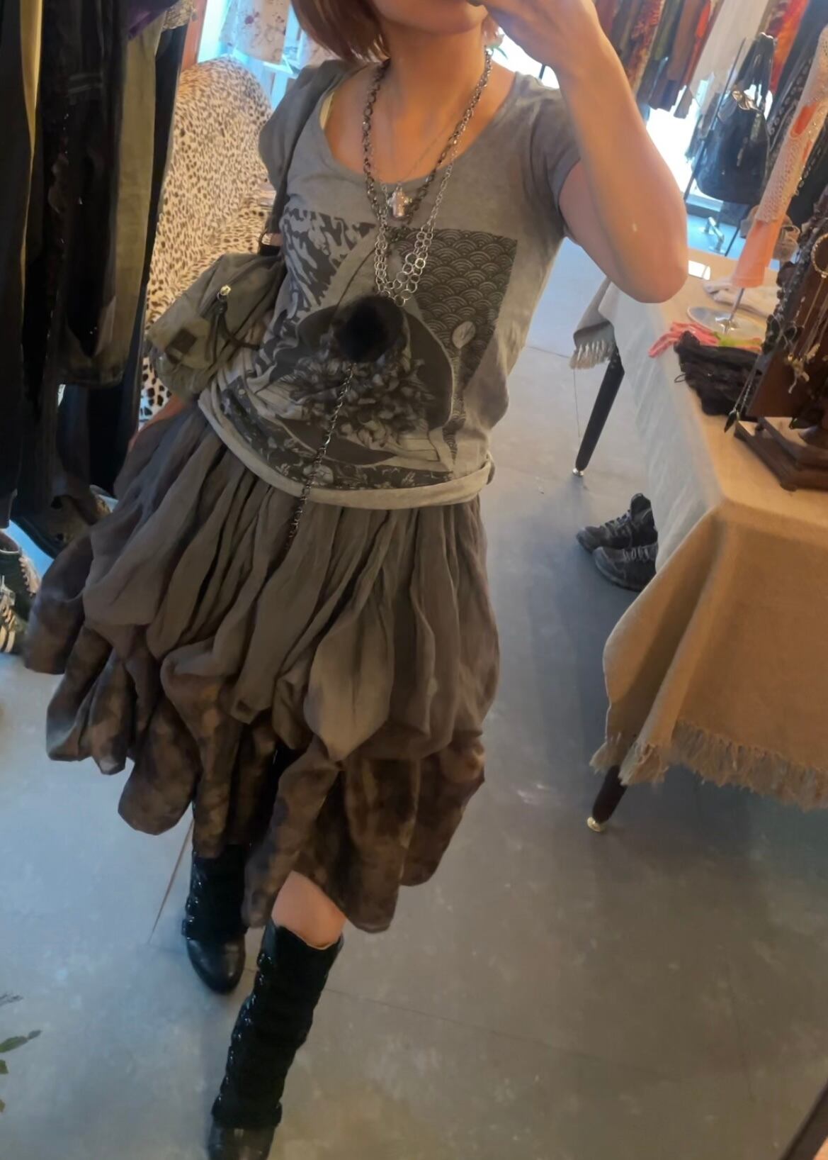 ボリューミーなchiffon、抽象的でアートな柄が他にない魅力のスカート