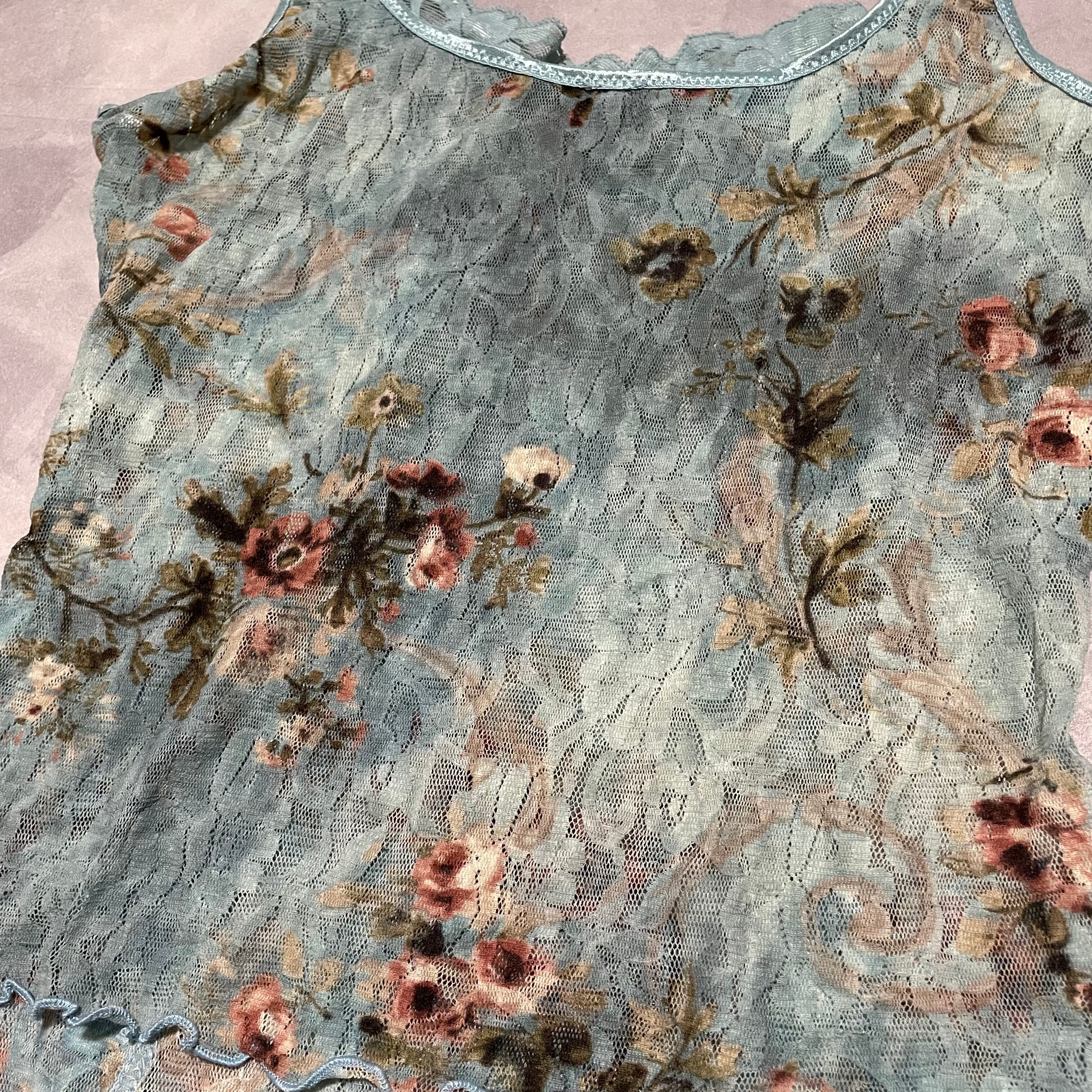 light blueのvintageフラワーのレースが綺麗なコルセット風のタンクトップ