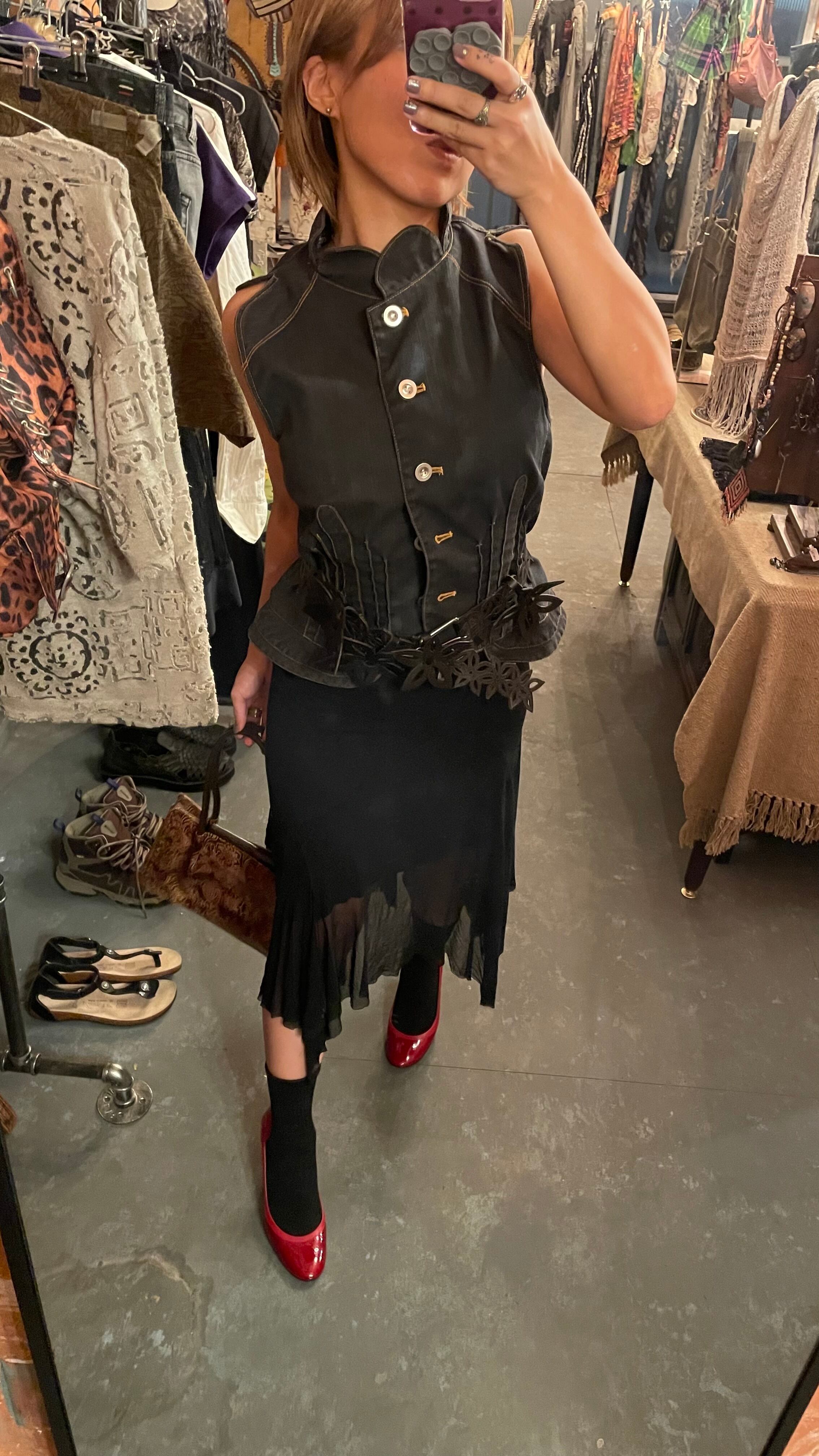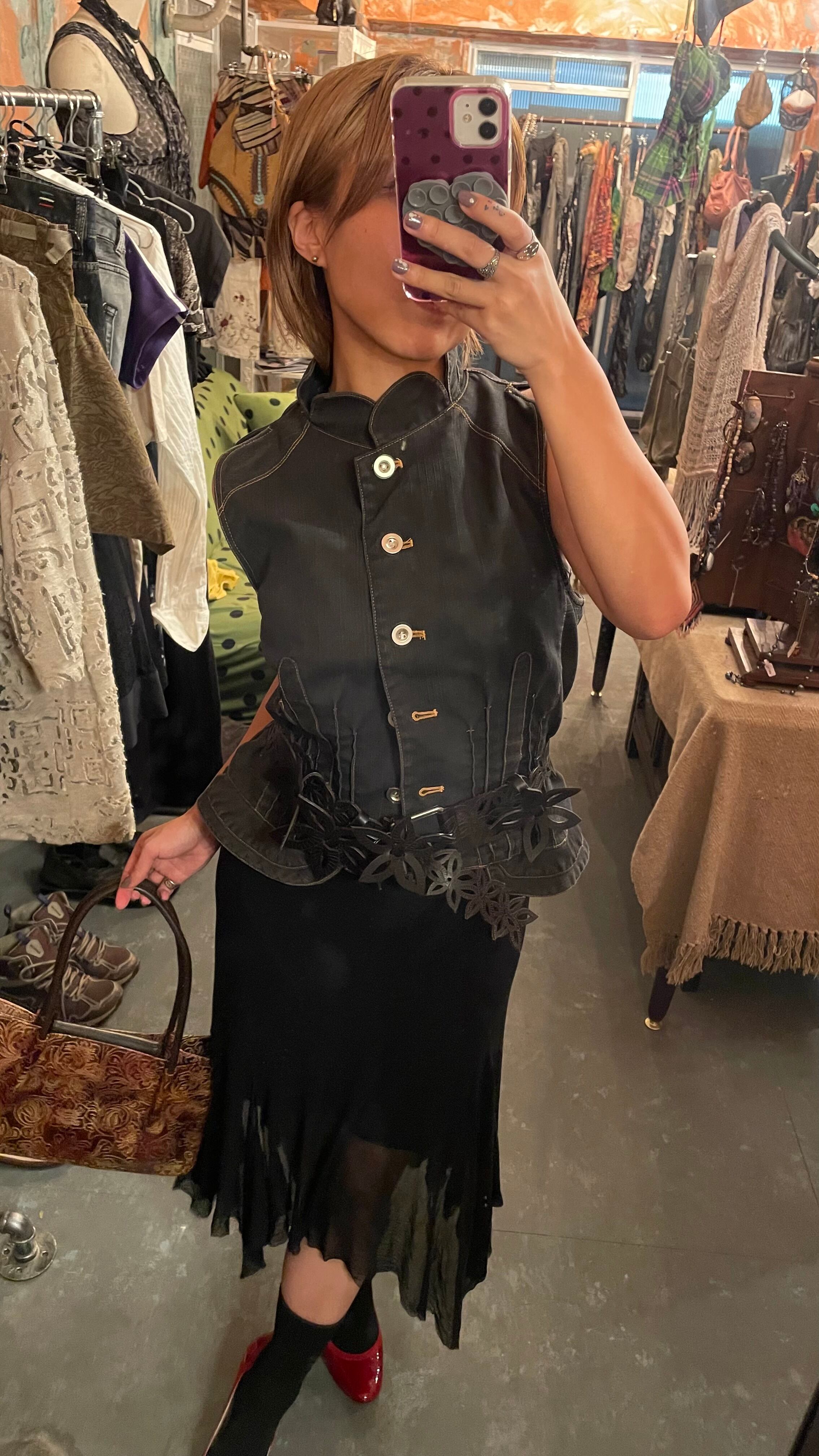 ISSEY MIYAKEからアシンメトリーな裾のデザインがcoolでgrungeな雰囲気のblack skirt