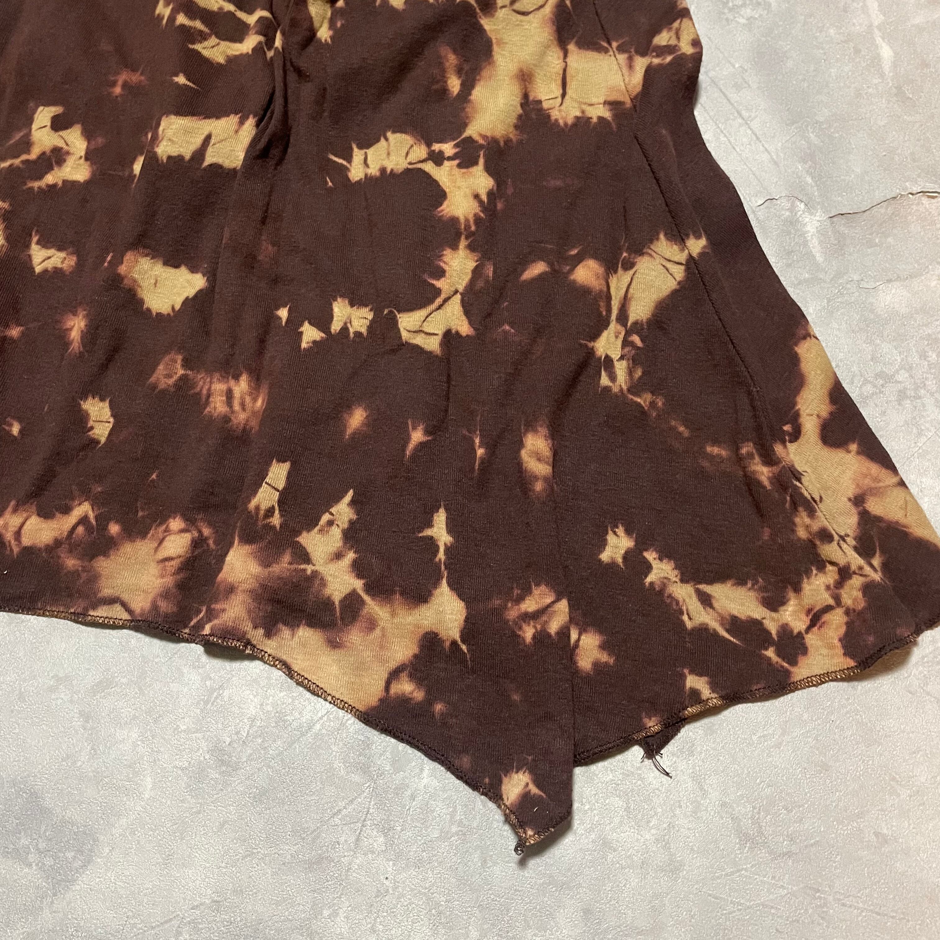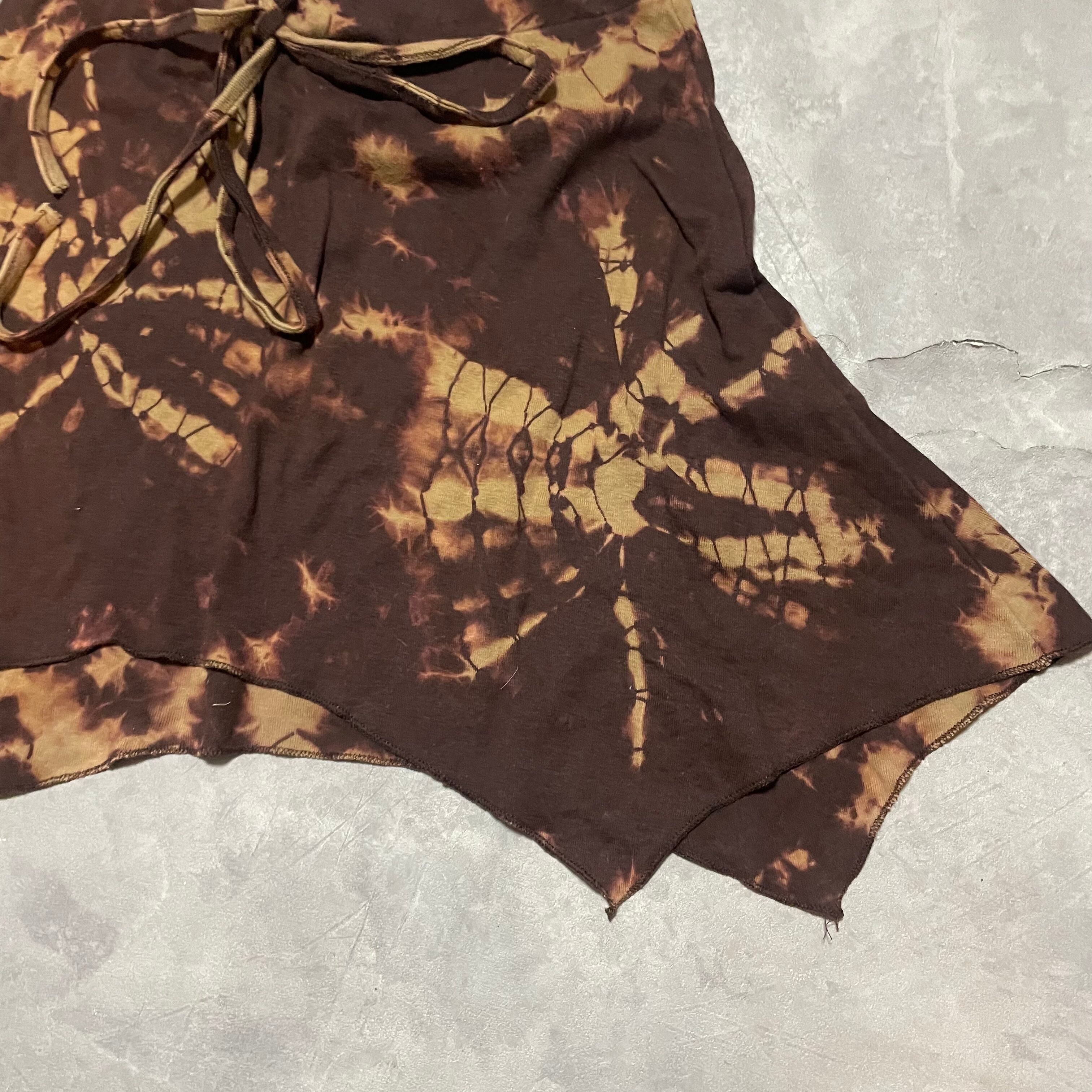 from Thailand.ブラウンのtie-dye柄、アシンメトリーな裾のミニスカート