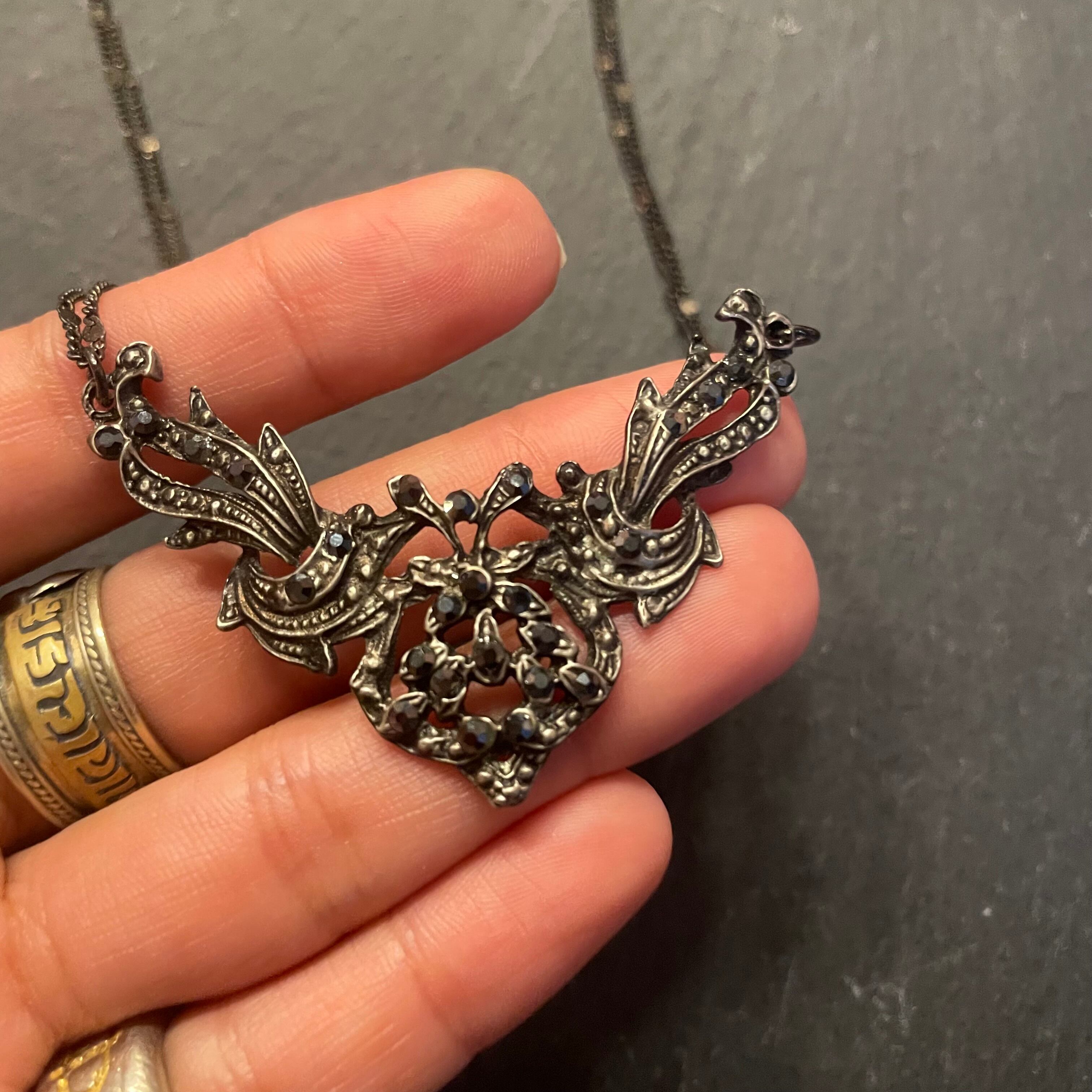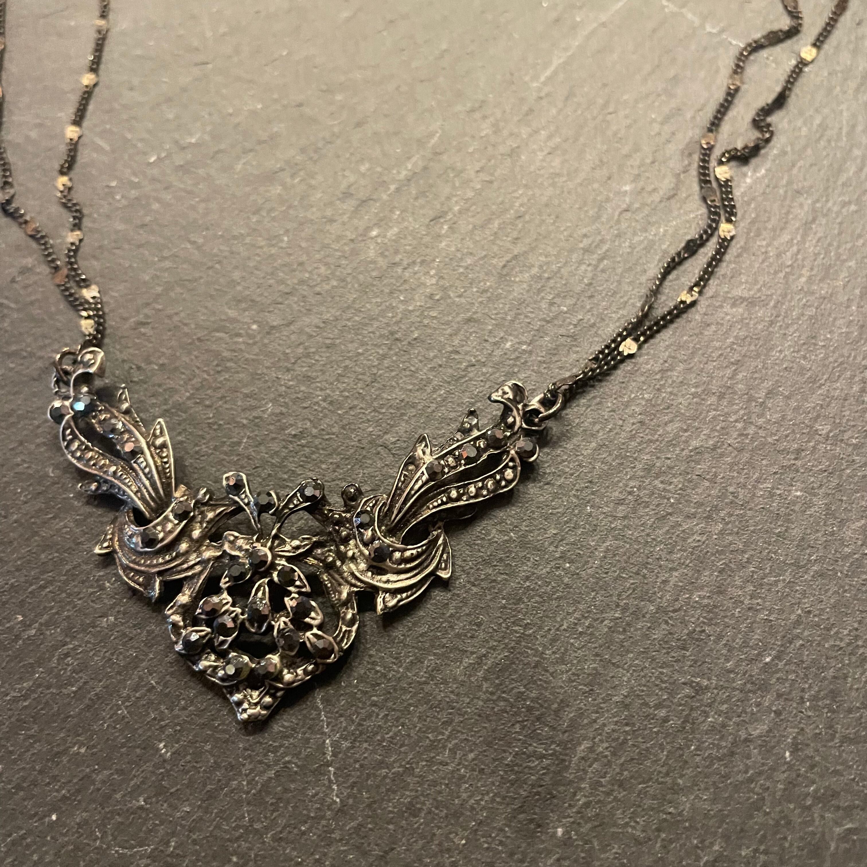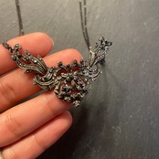 ブラックシルバーのgrungeな雰囲気のモチーフが特徴的なネックレス