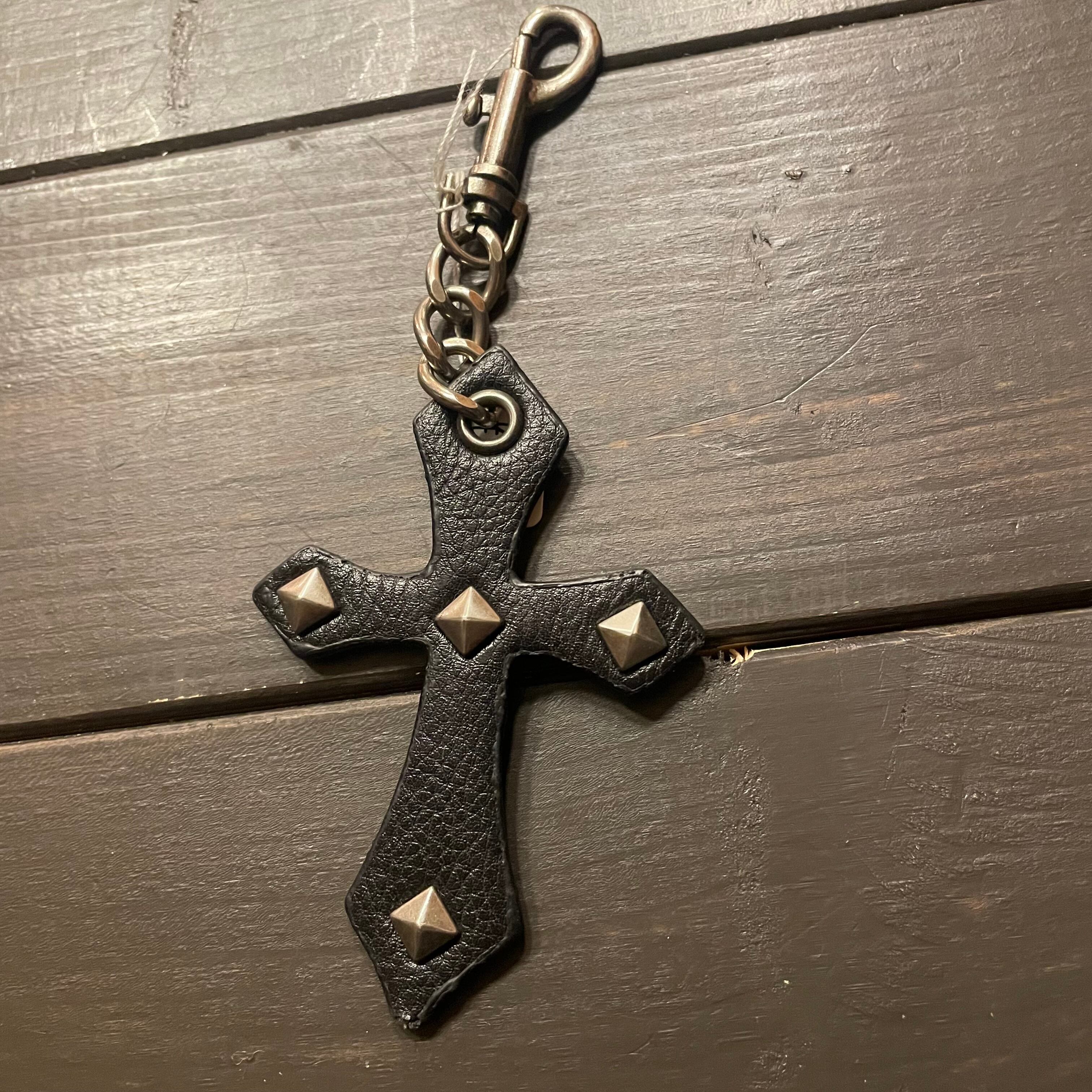 real leatherにスタッズのクロスモチーフがcoolなキーホルダー