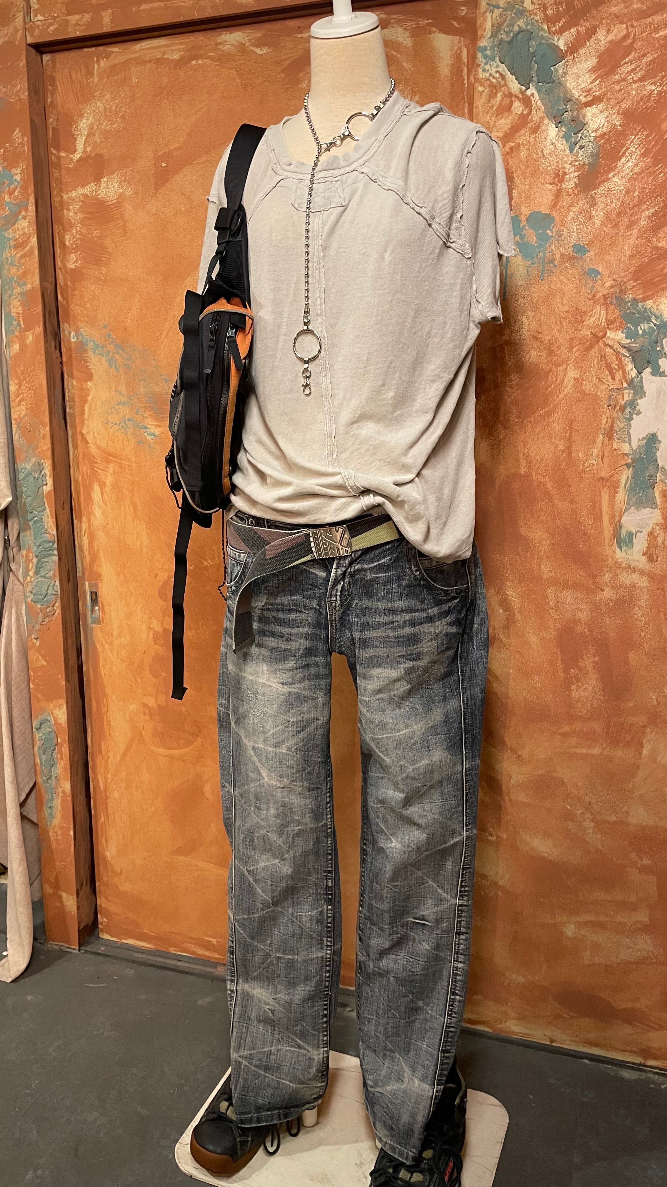 ベトナム製ナチュラルな風合いの裏返しのようなアウトシームdesignがcoolなTシャツ