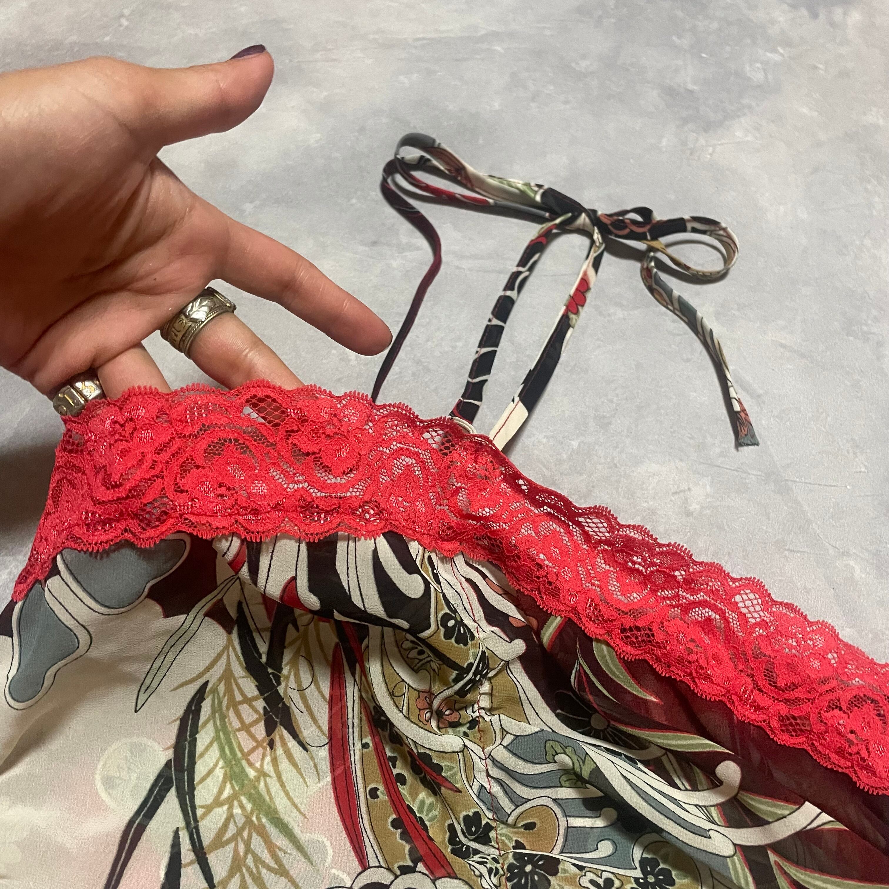 ホルターネックやサイドの紐でアレンジ自在なアイテム