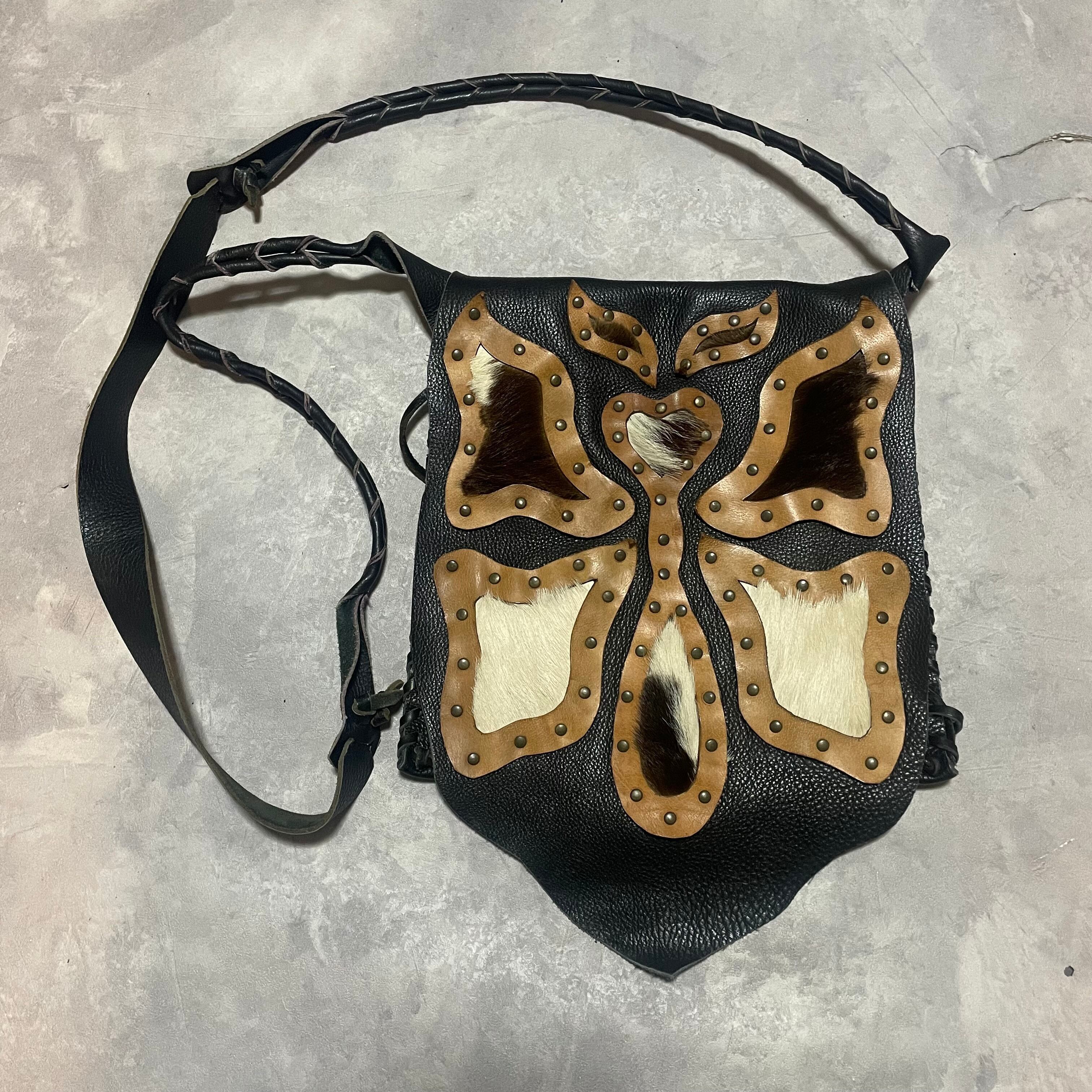 くたっとした柔らかいleatherにハラコの毛並みを活かしたpatchデザインがcoolなバッグ