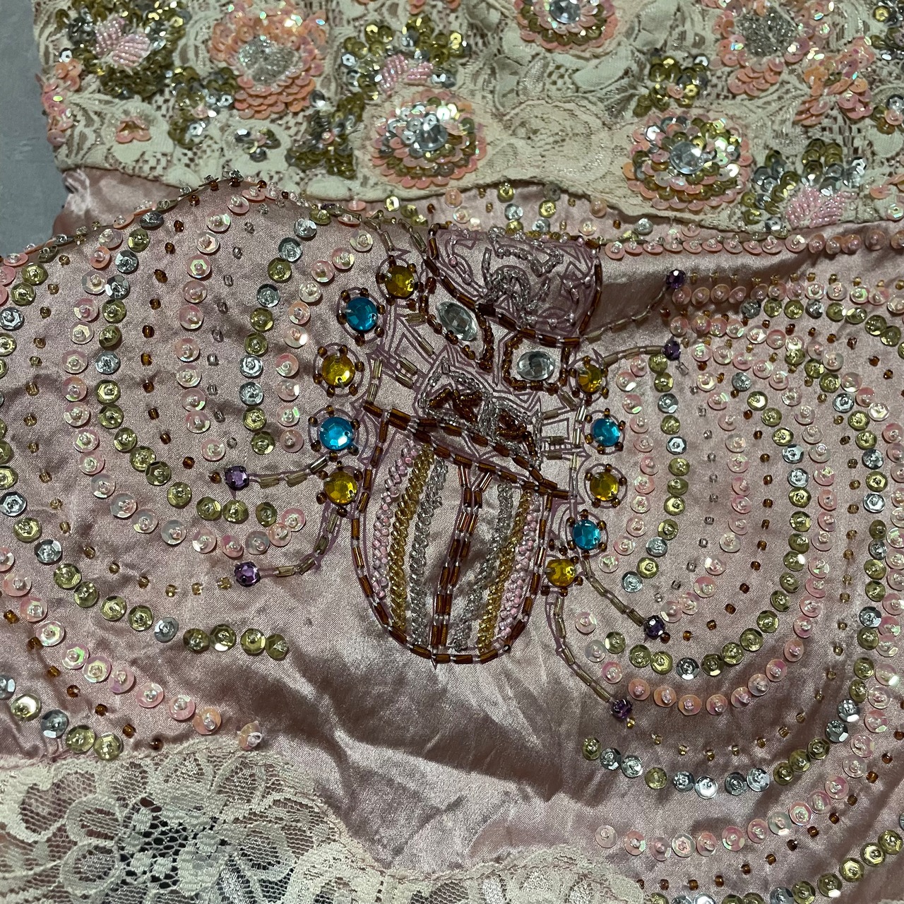 シルク100%の生地にスパンコールやビーズの細かな刺繍が綺麗なキャミソール