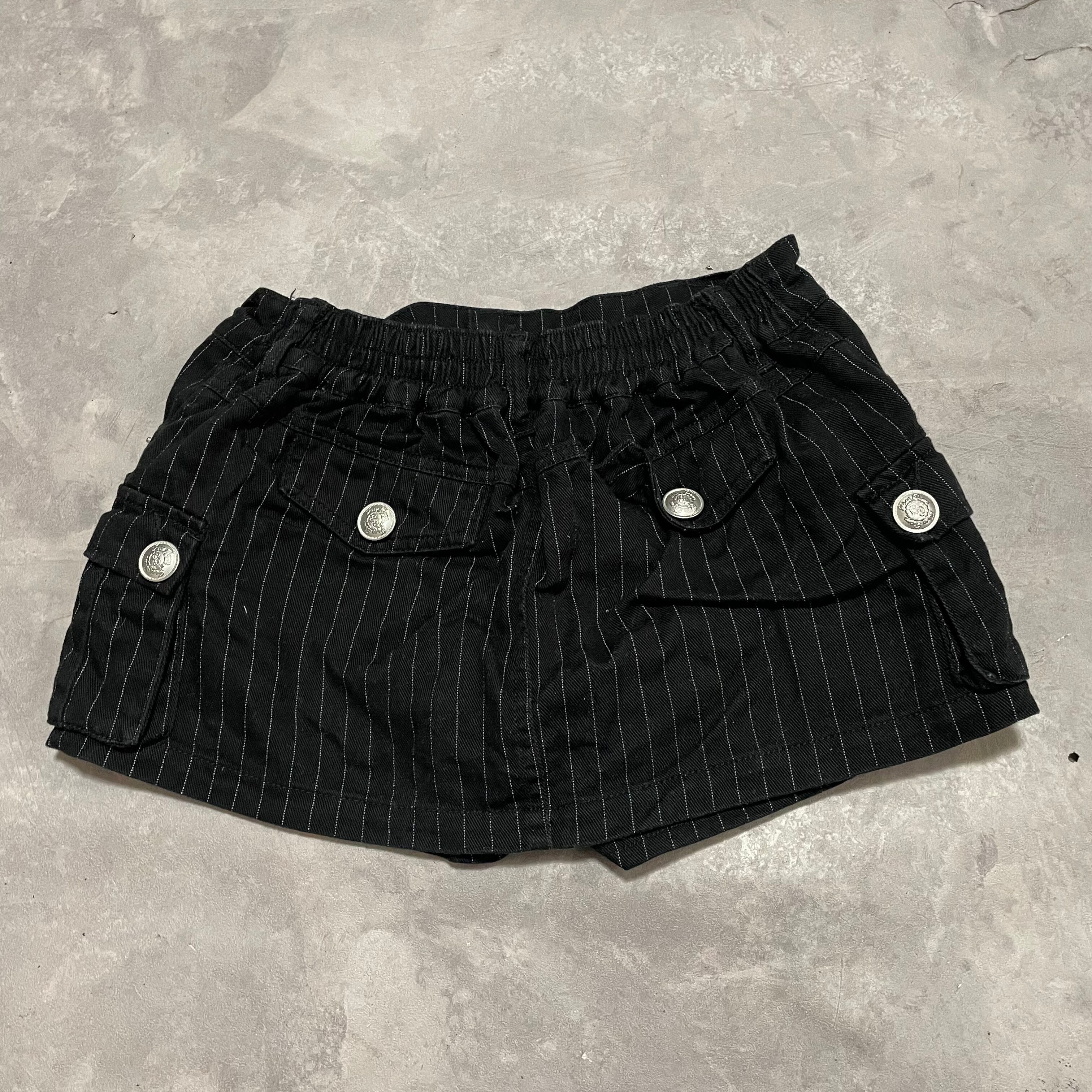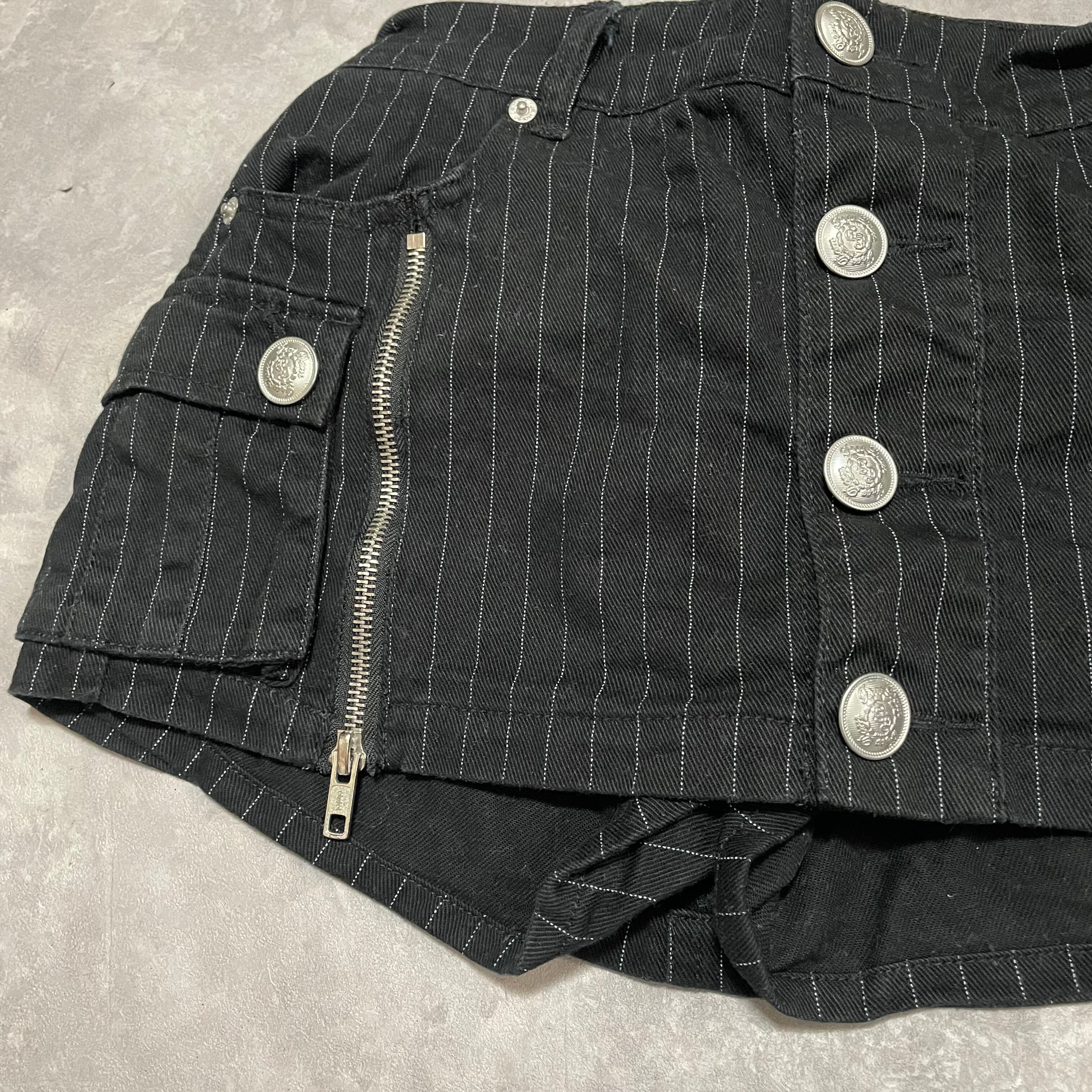 ストライプ柄にfastenerとボタンのデザインが効いたスカートパンツ