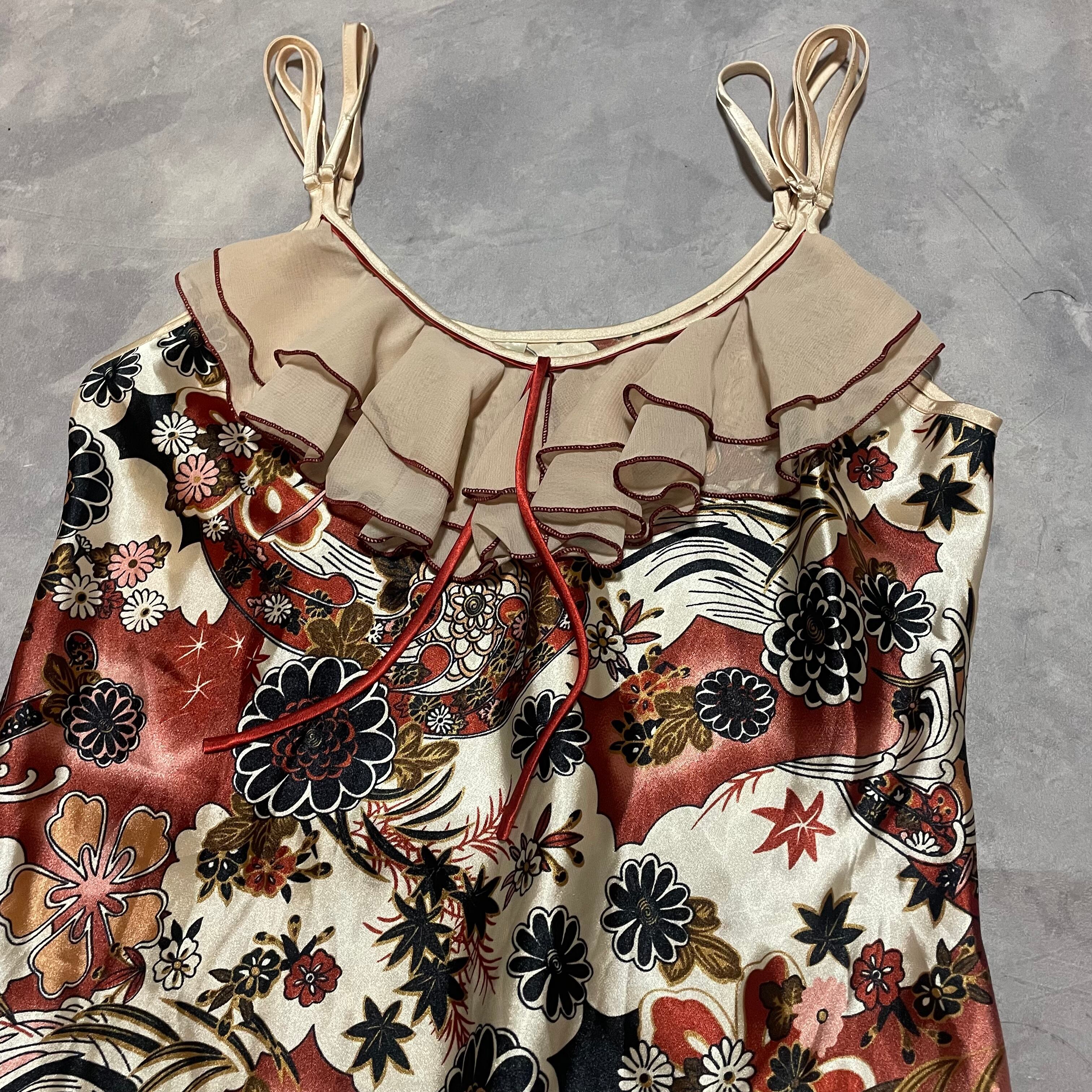 ツヤ感のあるチャイナ柄がcuteなキャミワンピース