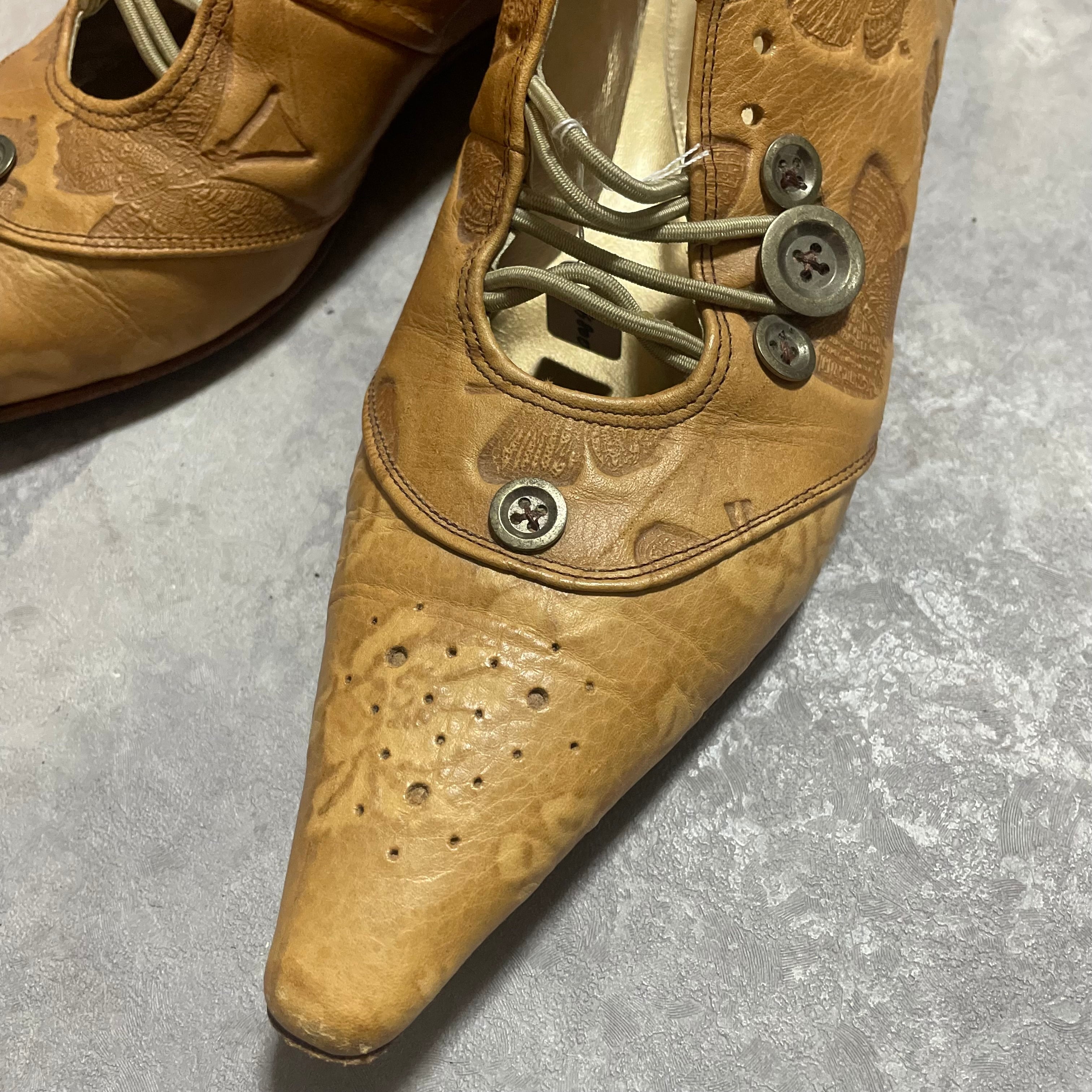 butterflyの型押しデザインが美しいpointed toe シューズ