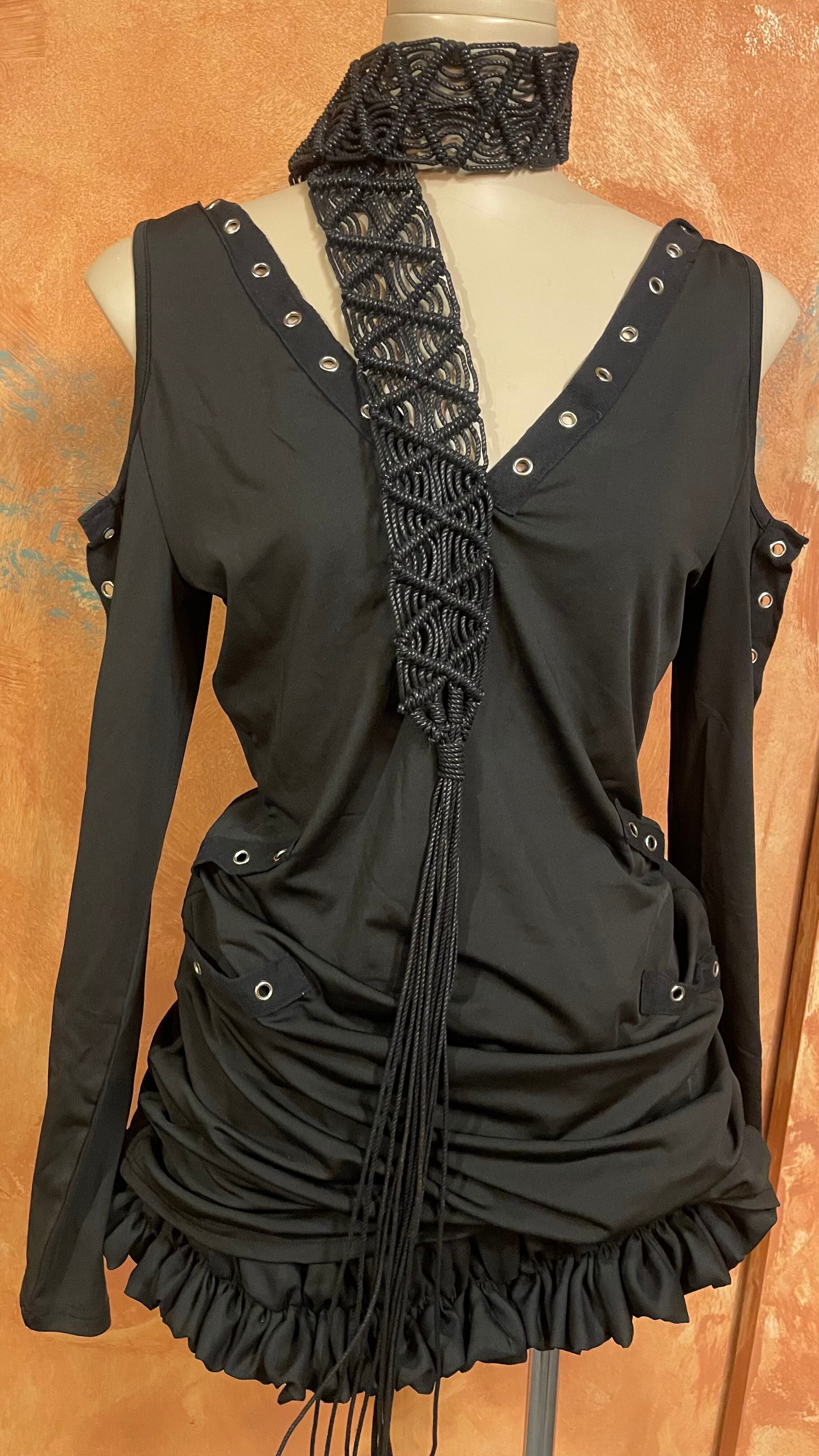 全体に施されたeyeletのデザインがcoolなTシャツワンピース