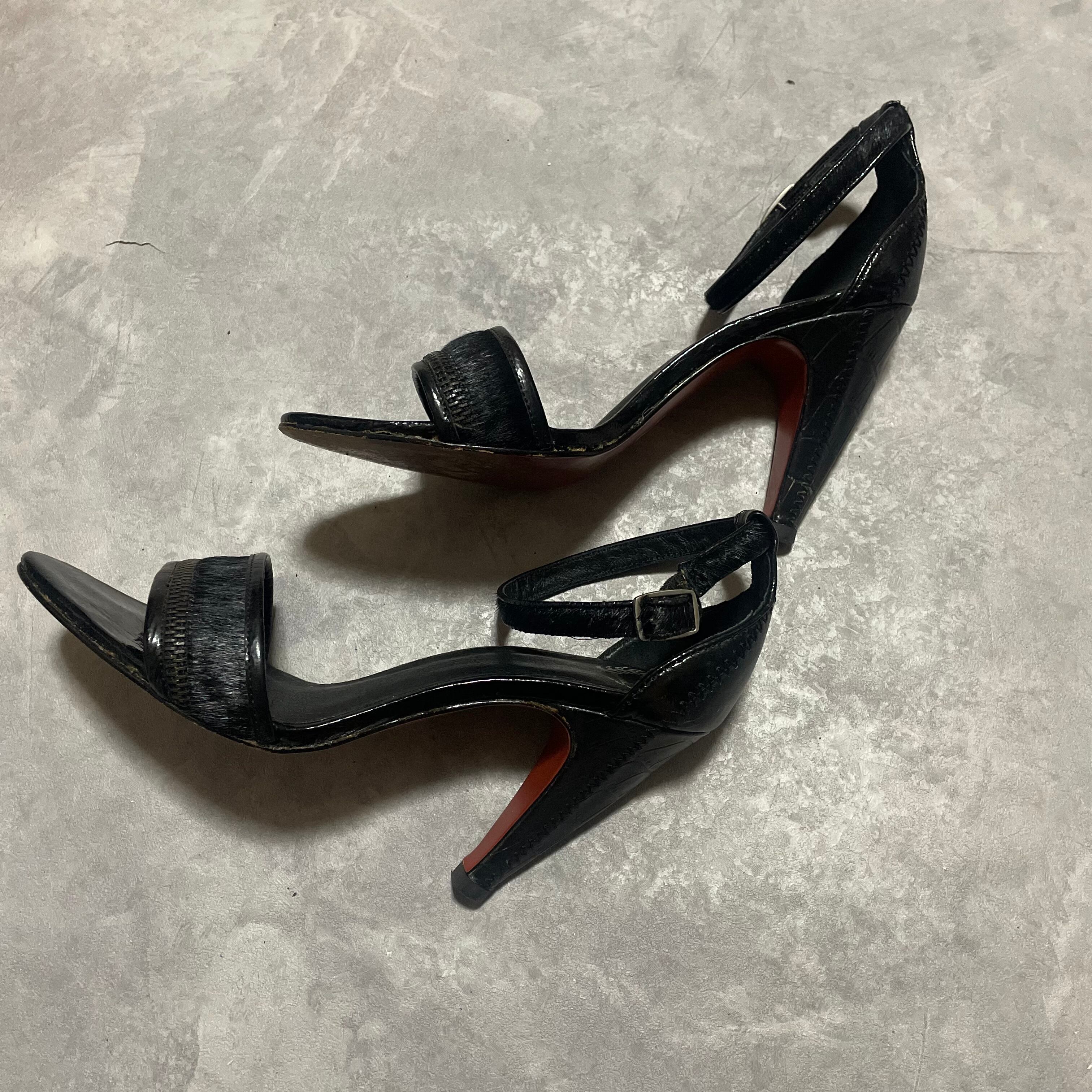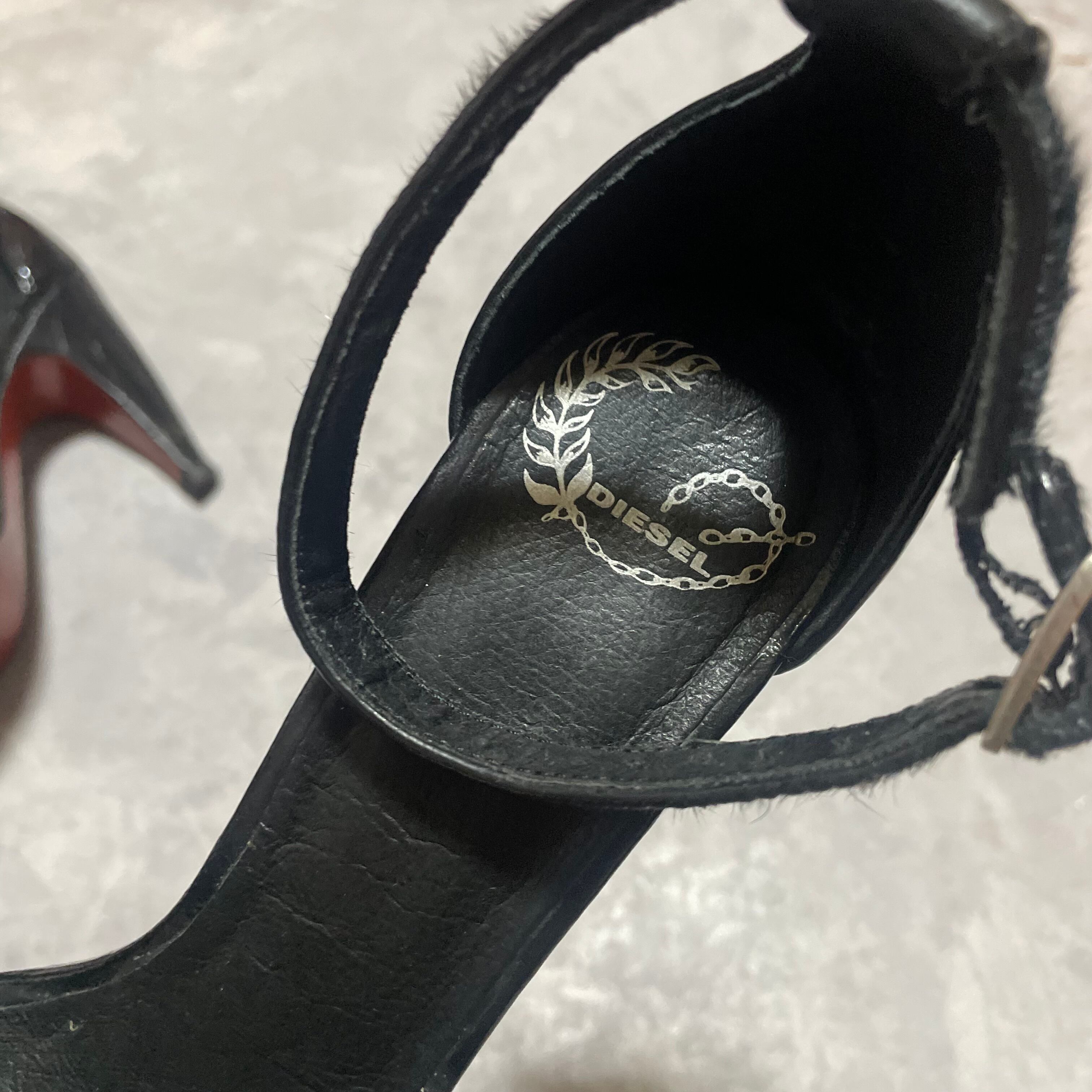 Dieselからハラコの毛並みとファスナーのバランスがcoolなヒールsandal