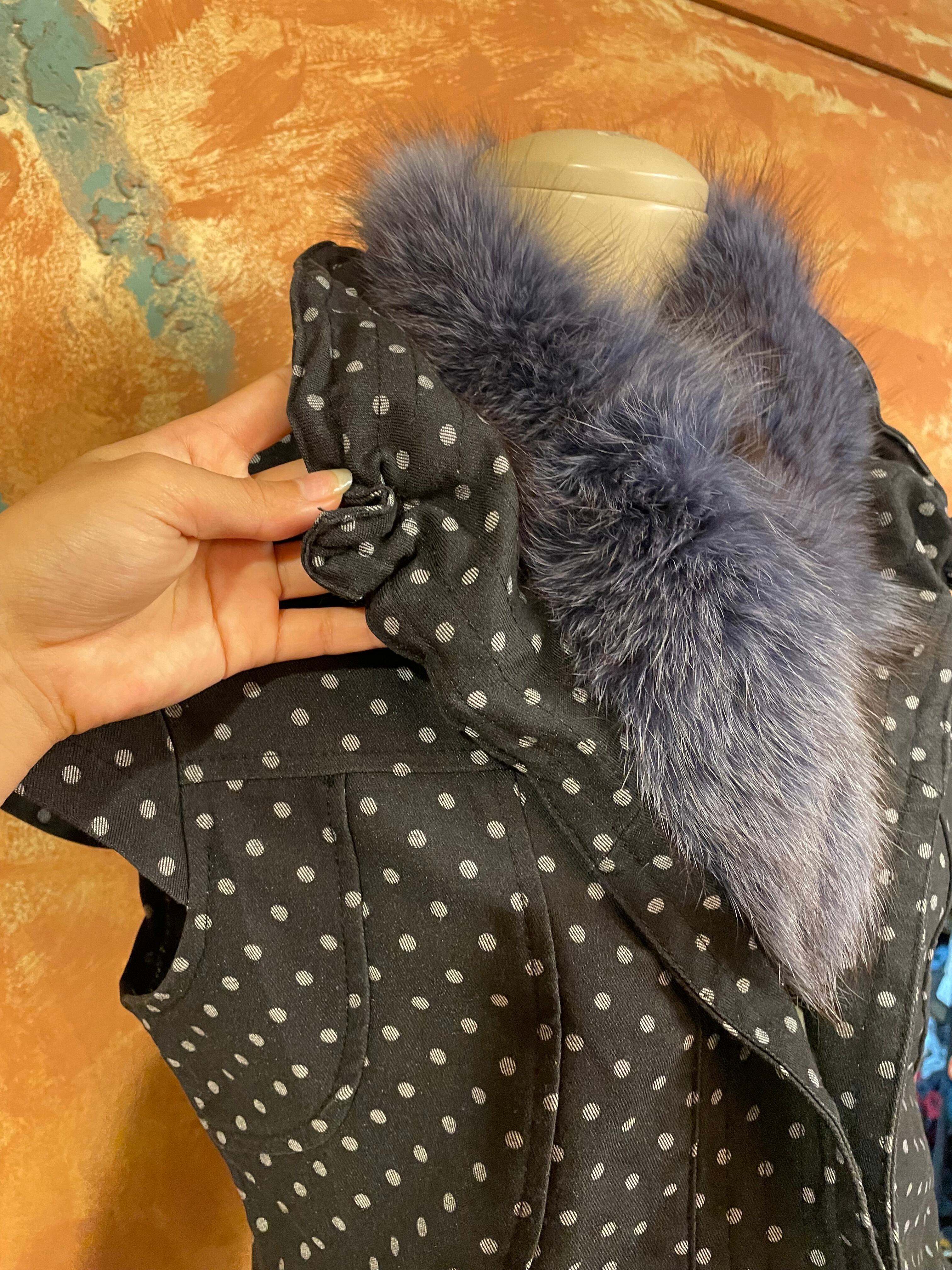 ブラックデニムにドットの柄がcuteなフリルジャケット