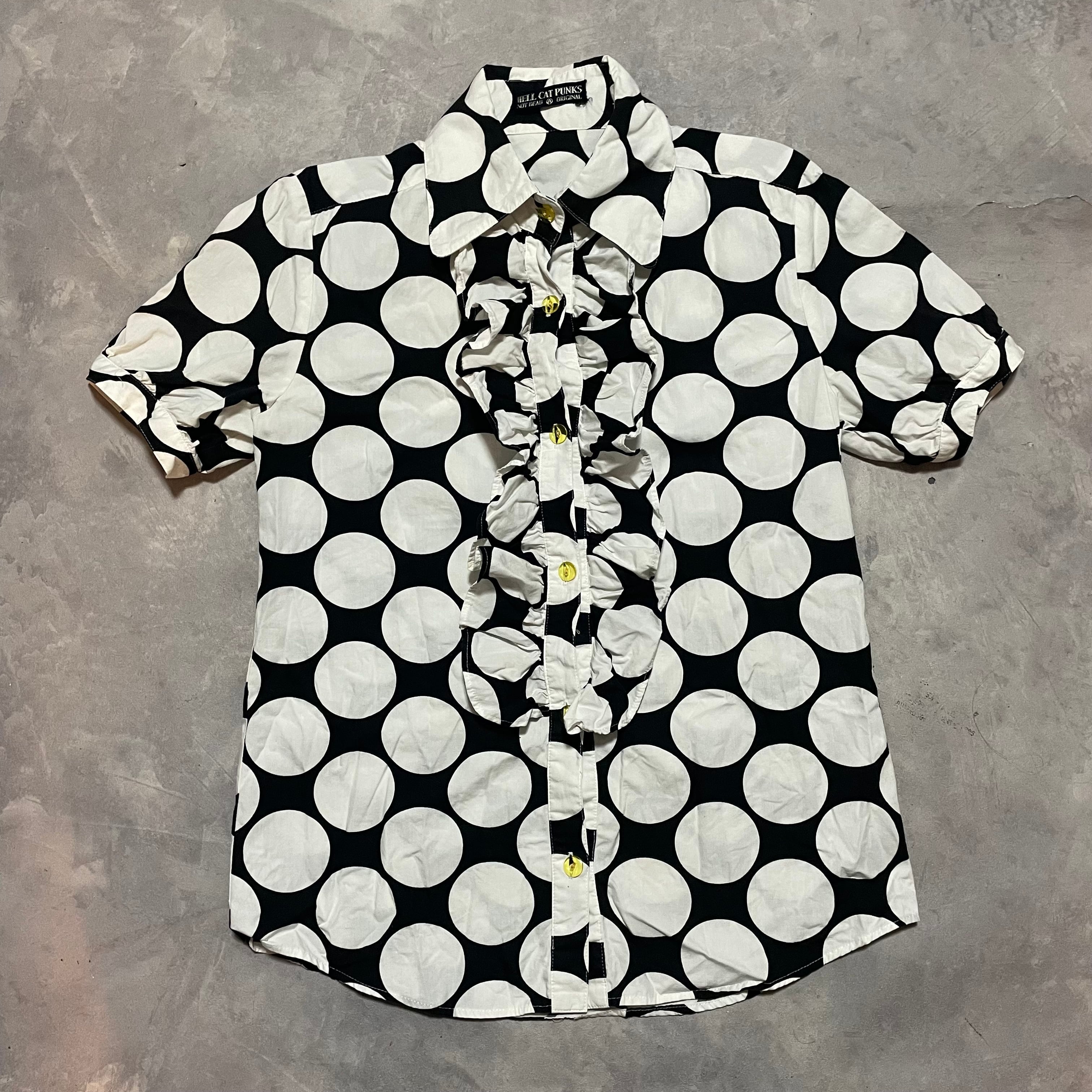大きめポップなdot柄に胸元のフリルがキュートなコットンシャツ