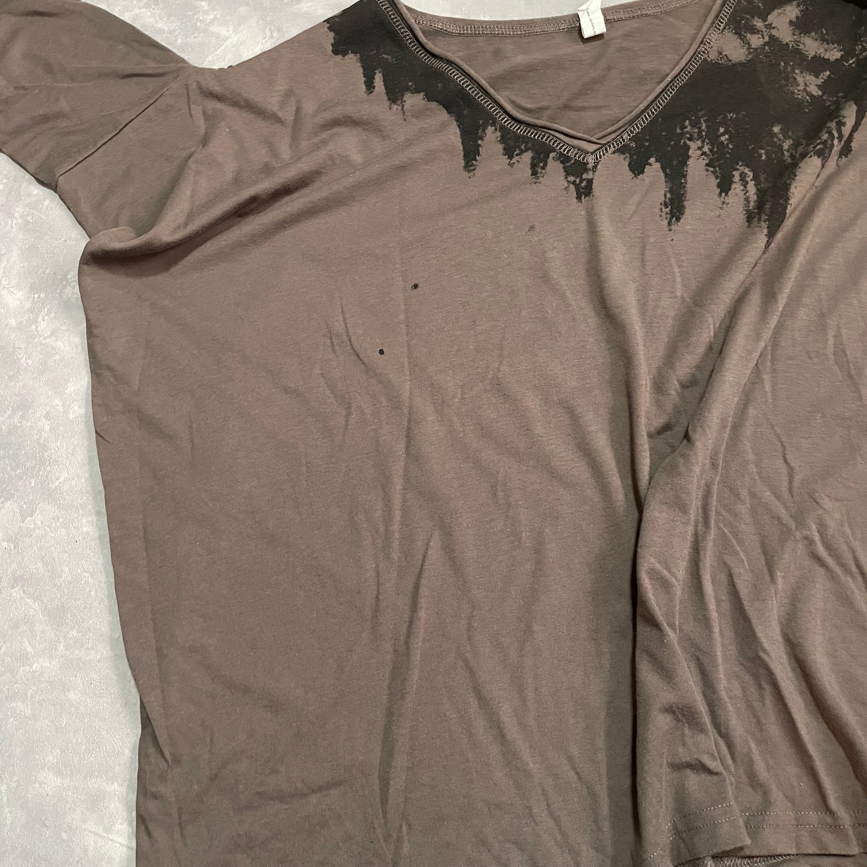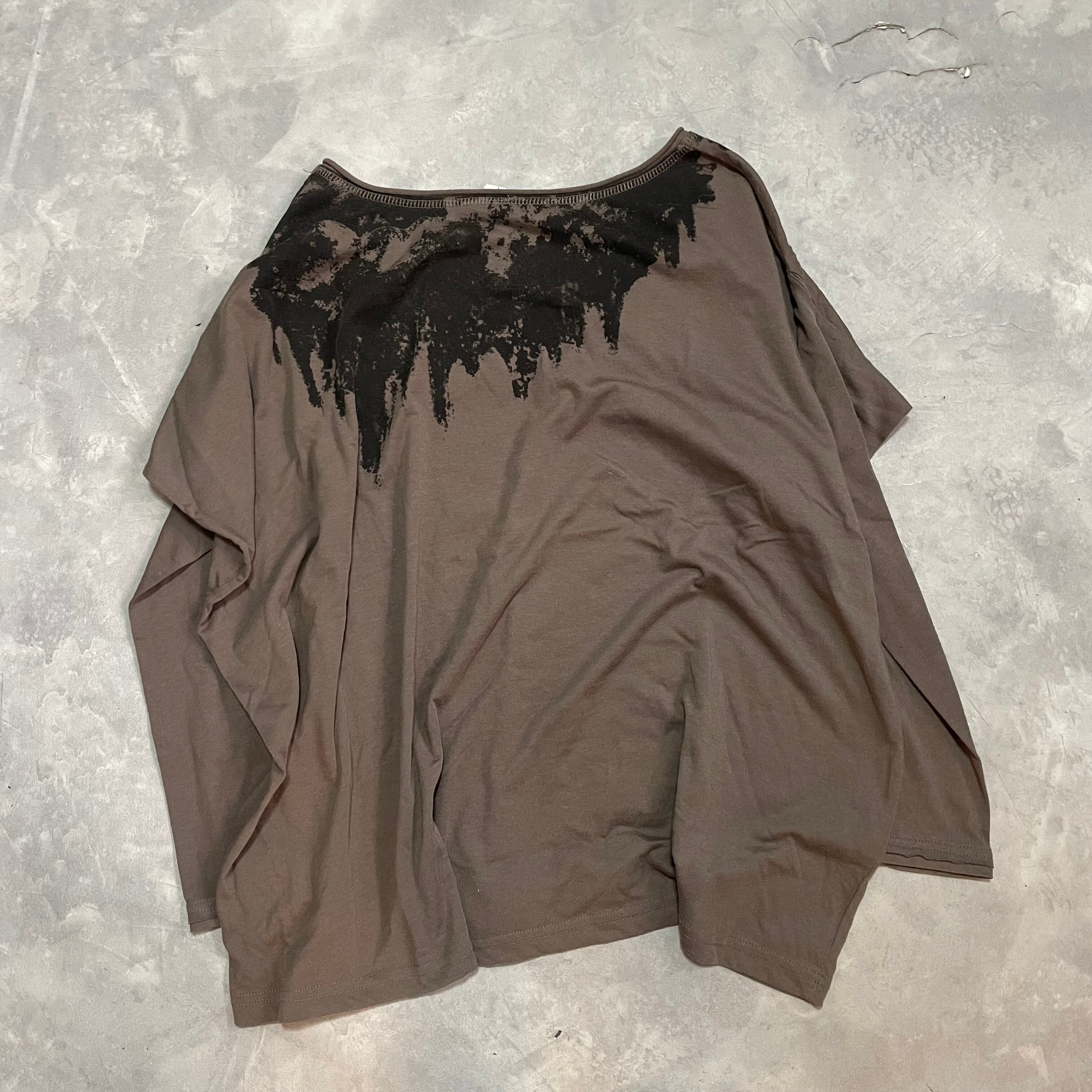 大きめの身ごろに細めのsleeveデザインが不思議なシルエットのTシャツ