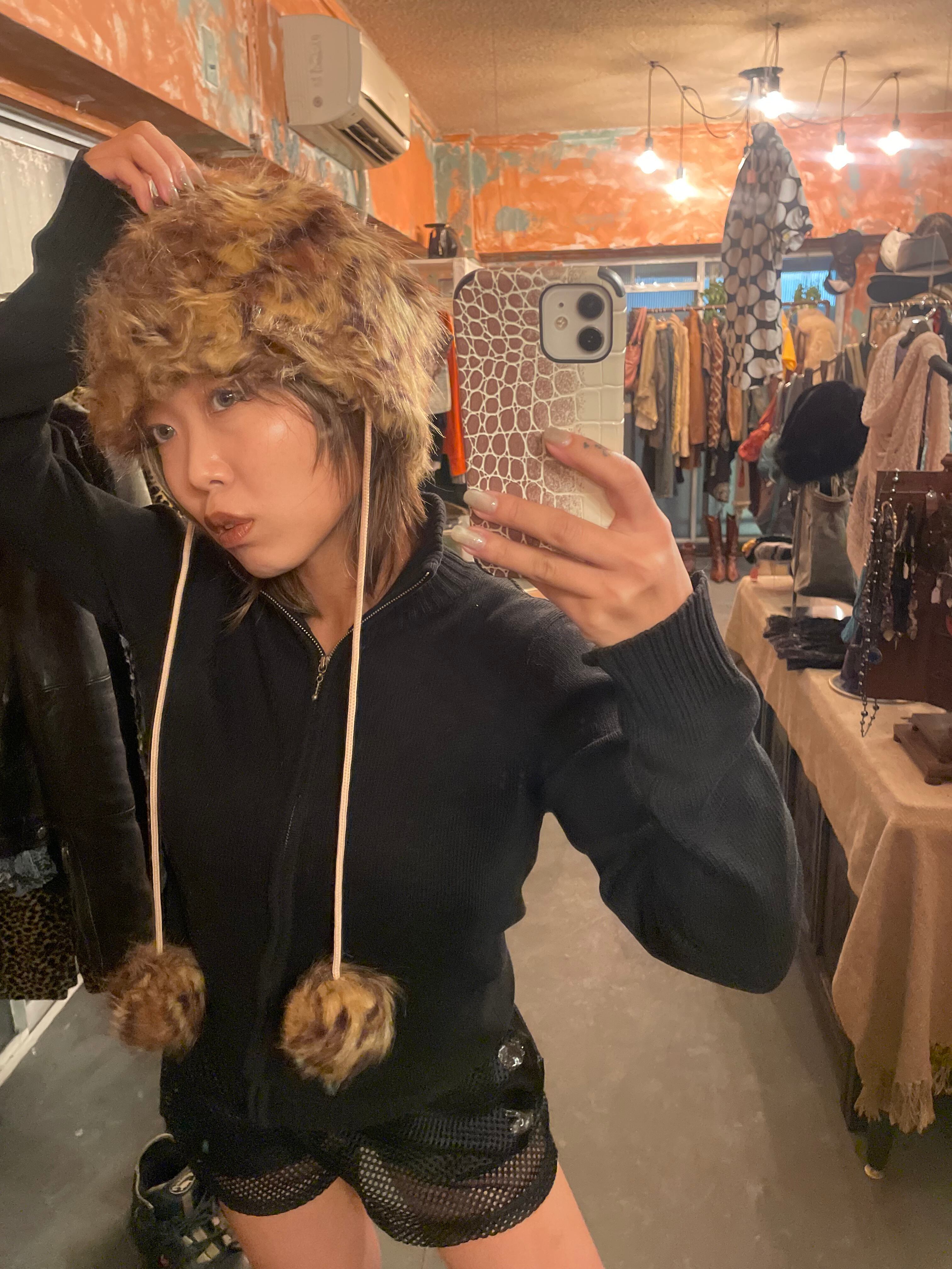 カジュアルな大きめのヒョウ柄がcuteなファー帽子