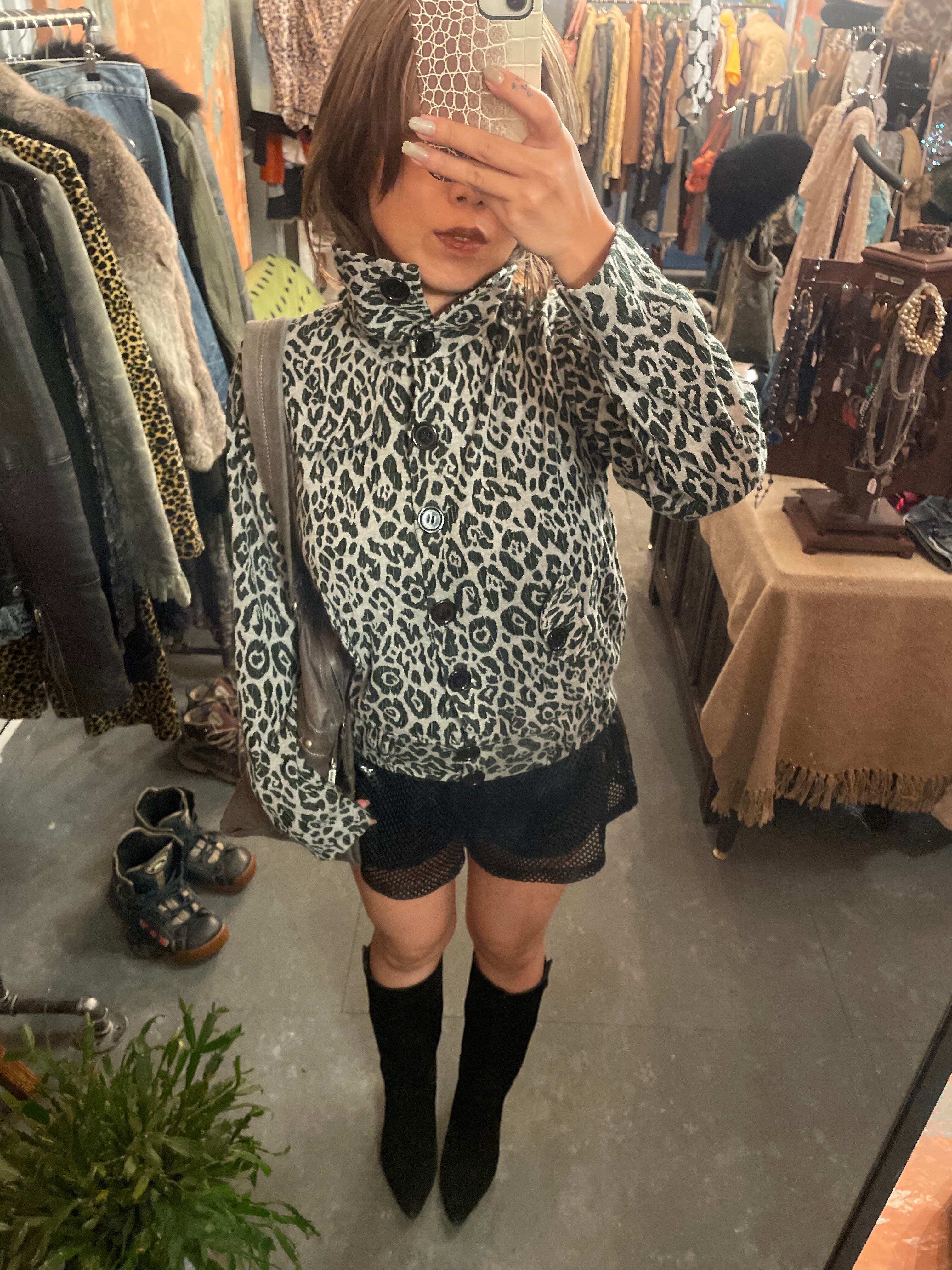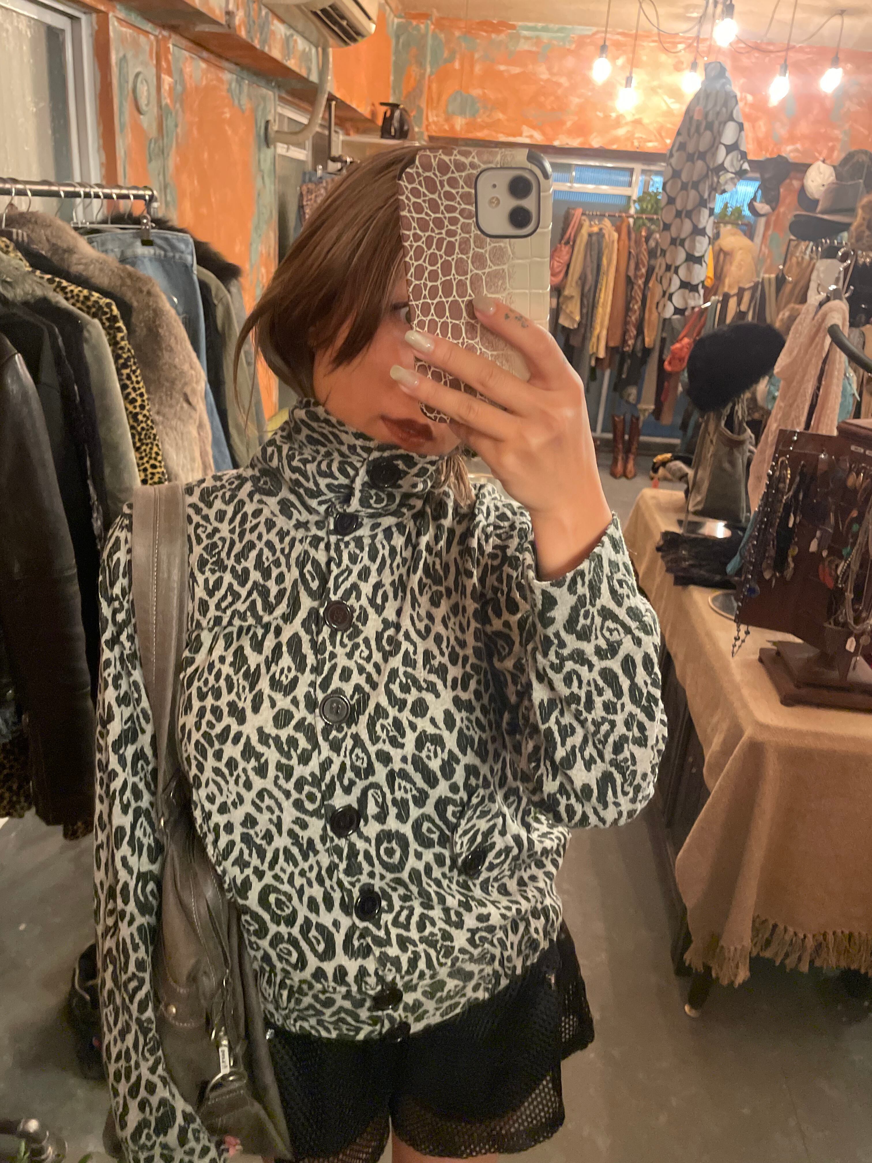 凹凸のあるスウェット素材のレオパード柄が丁度いいカジュアル感のjacket