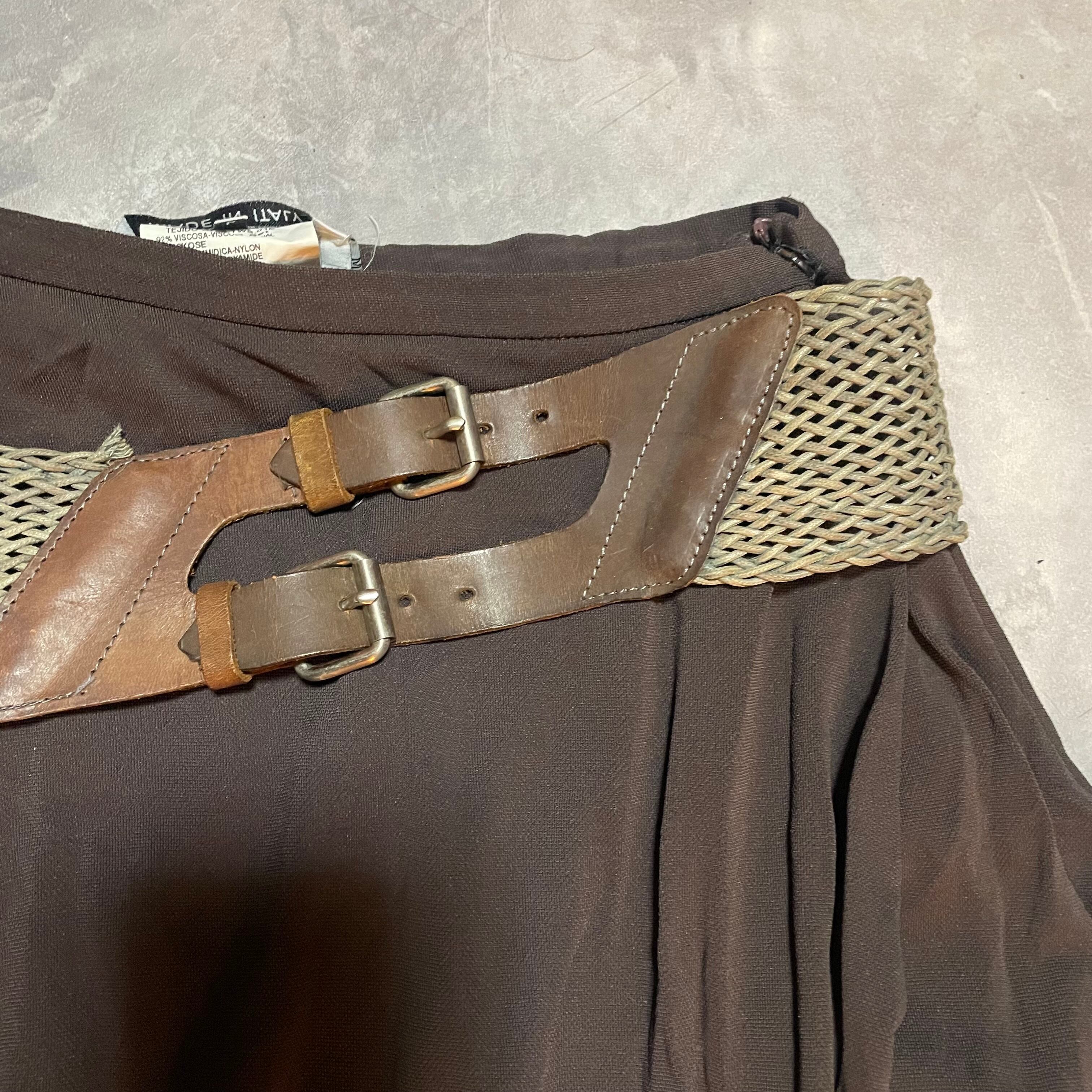 itary madeのラインが綺麗なロングスカートとmeshの太ベルトのセット