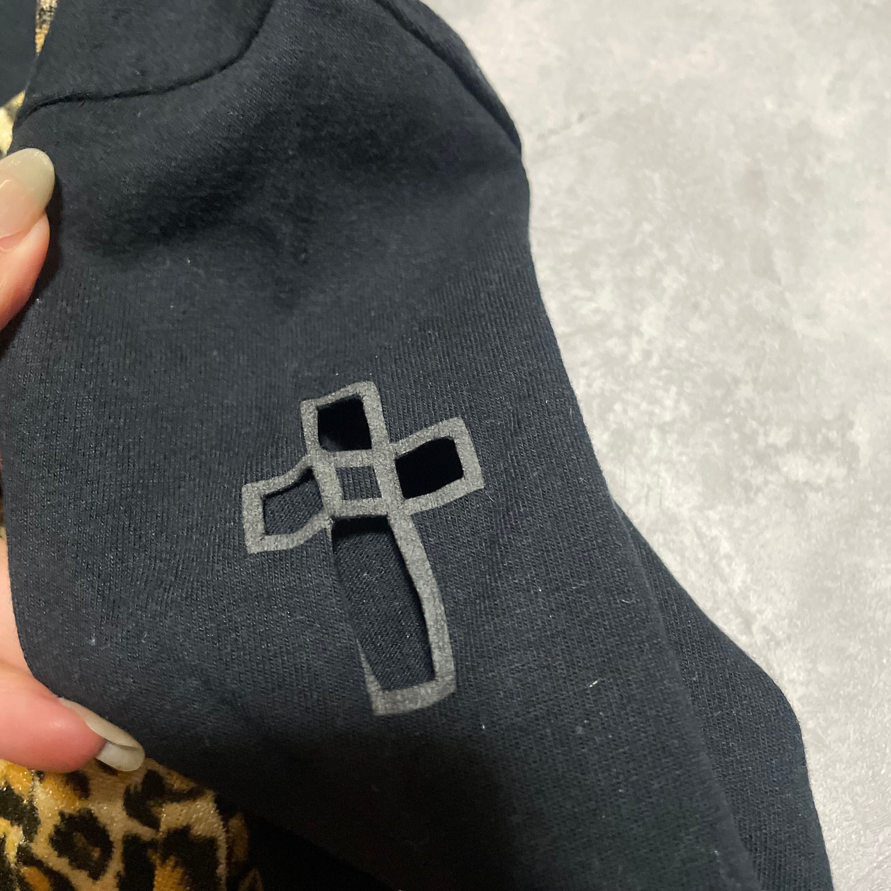 ロンTは袖にcrossの穴あきデザイン、バックのベロアデザインがcool