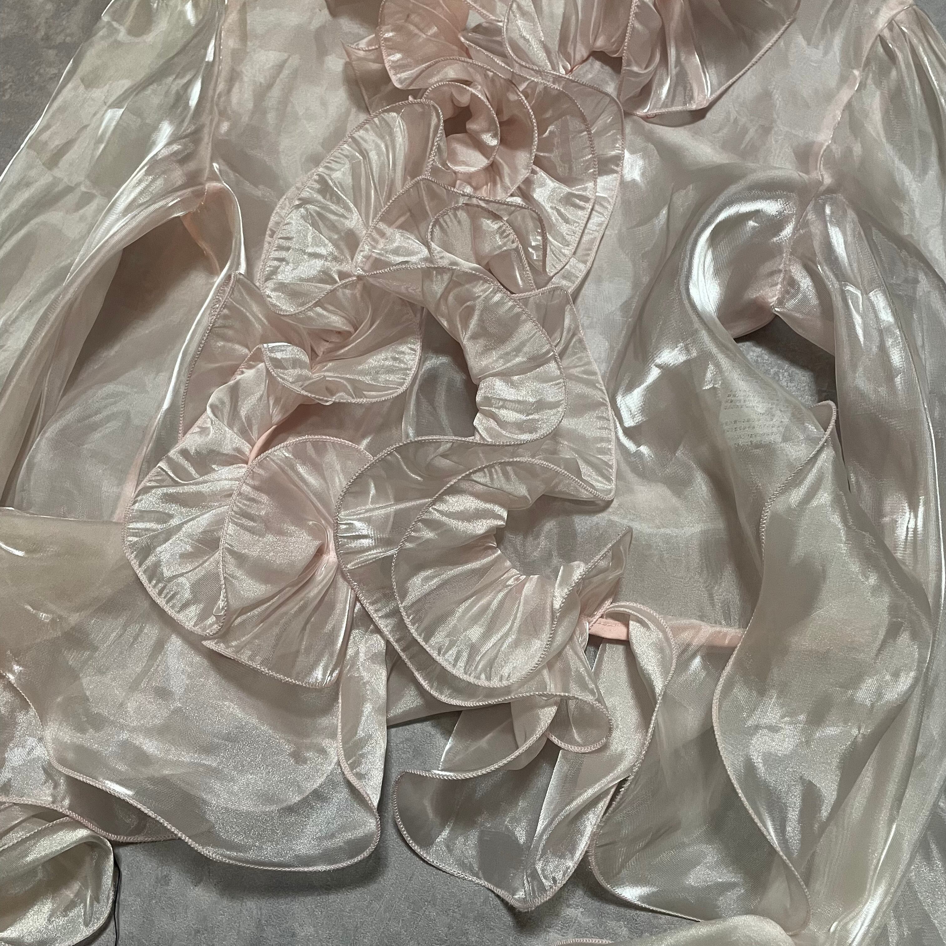 張り感を活かした動きのあるフリルに、うっすらペールピンクがマッチした一枚