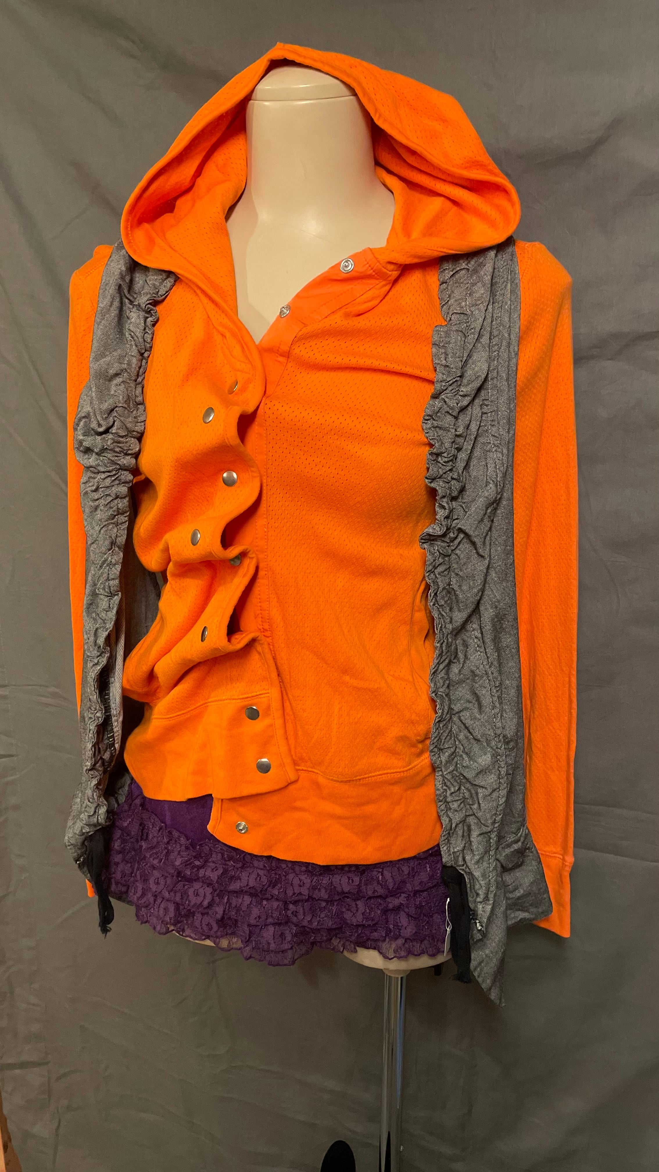 鮮やかなオレンジがcuteなメッシュ素材のフーディ