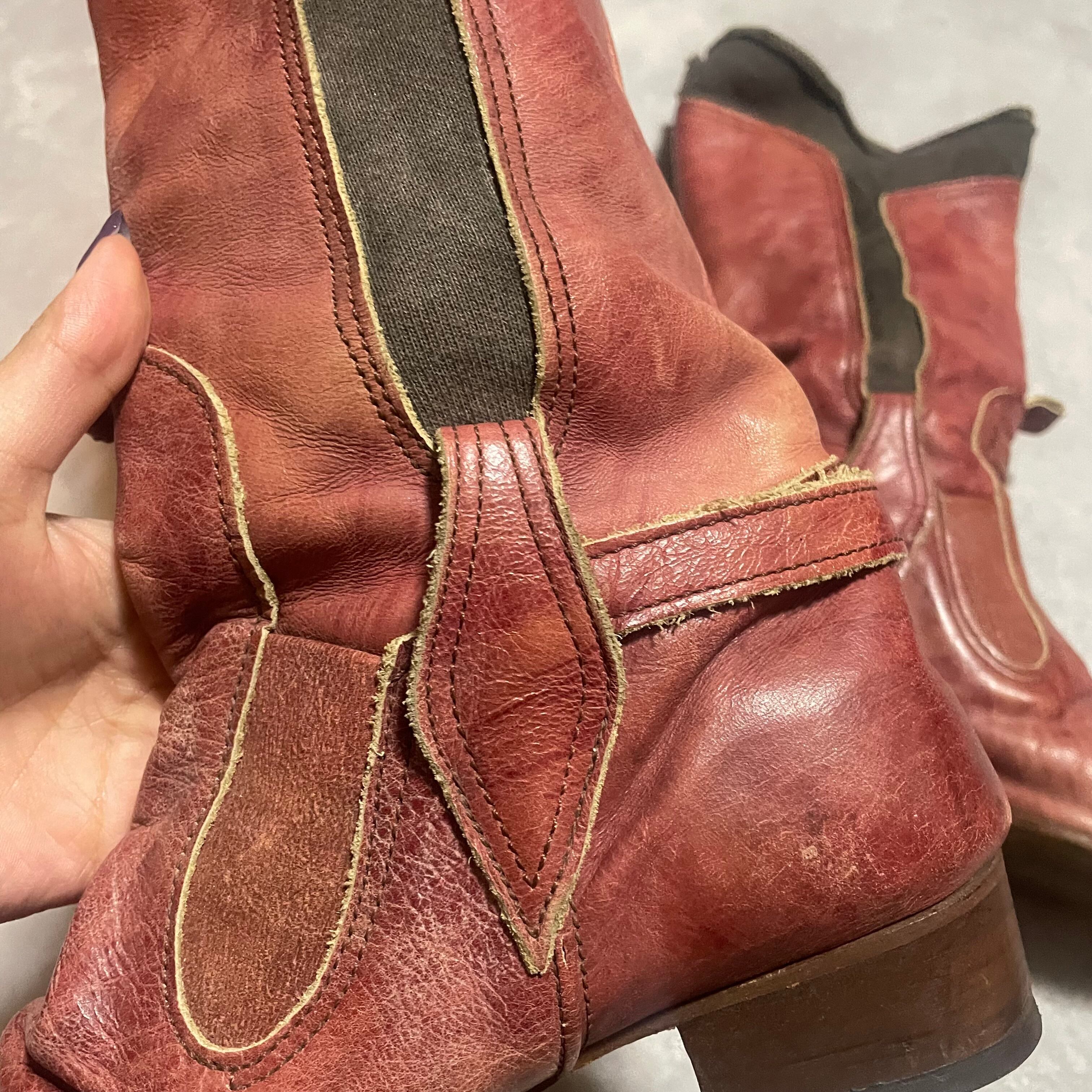 落ち着いたredのカラーがカッコいいvintageな風合いたっぷりのウエスタンブーツ