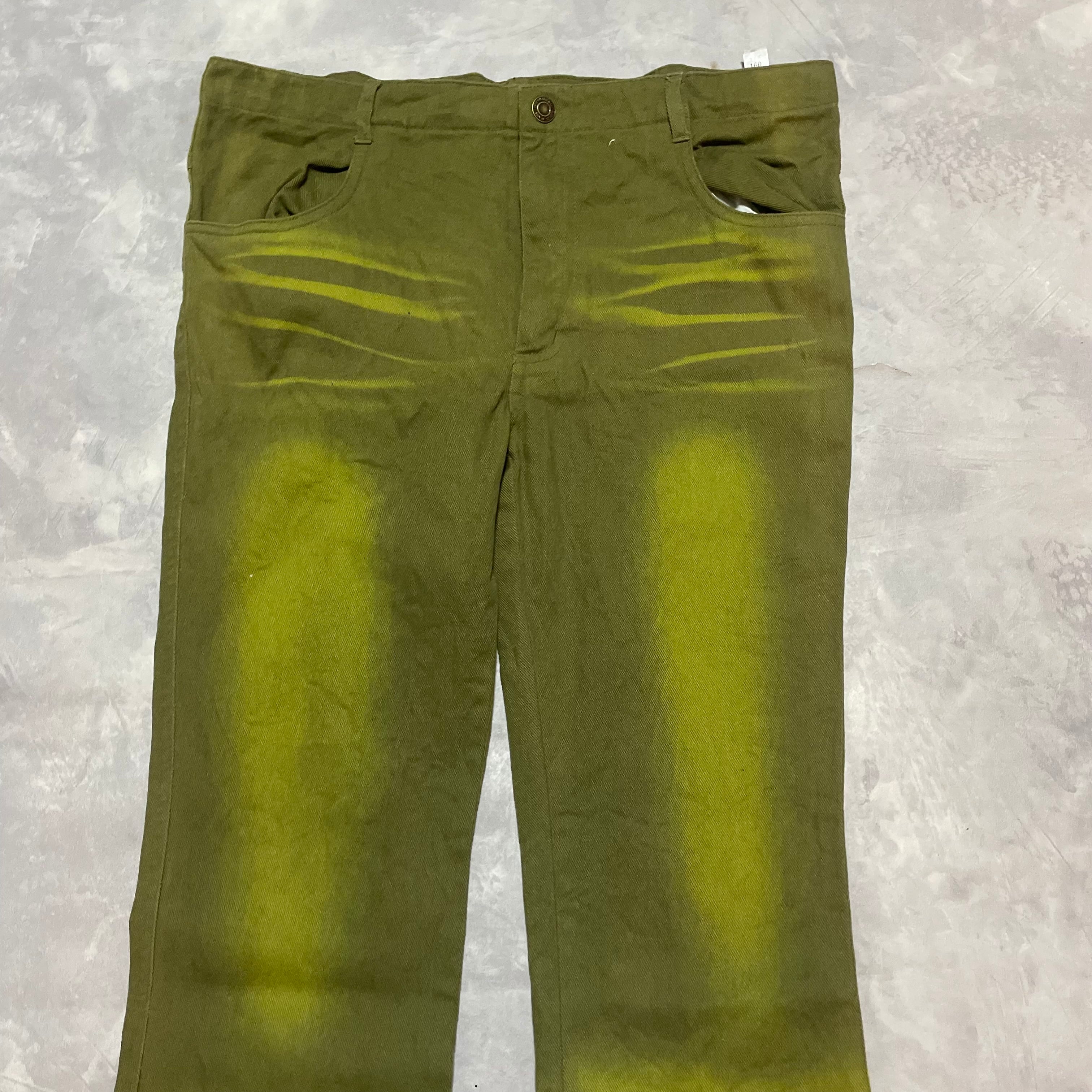 鮮やかなyellow greenが色落ちしたようなデザインがcoolなフレアパンツ