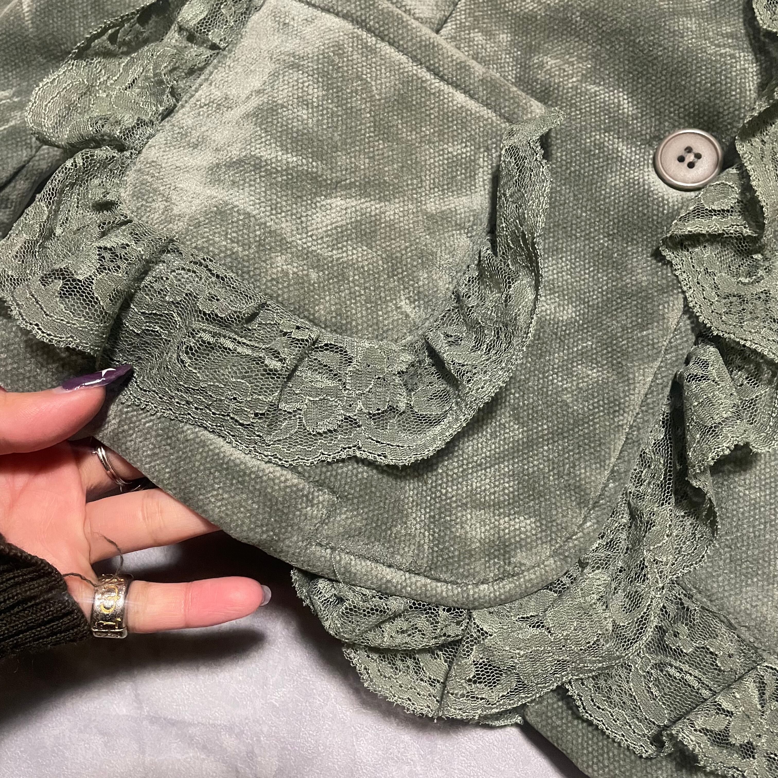 くすみgreenのカラーがいい雰囲気のcorduroyのジャケット