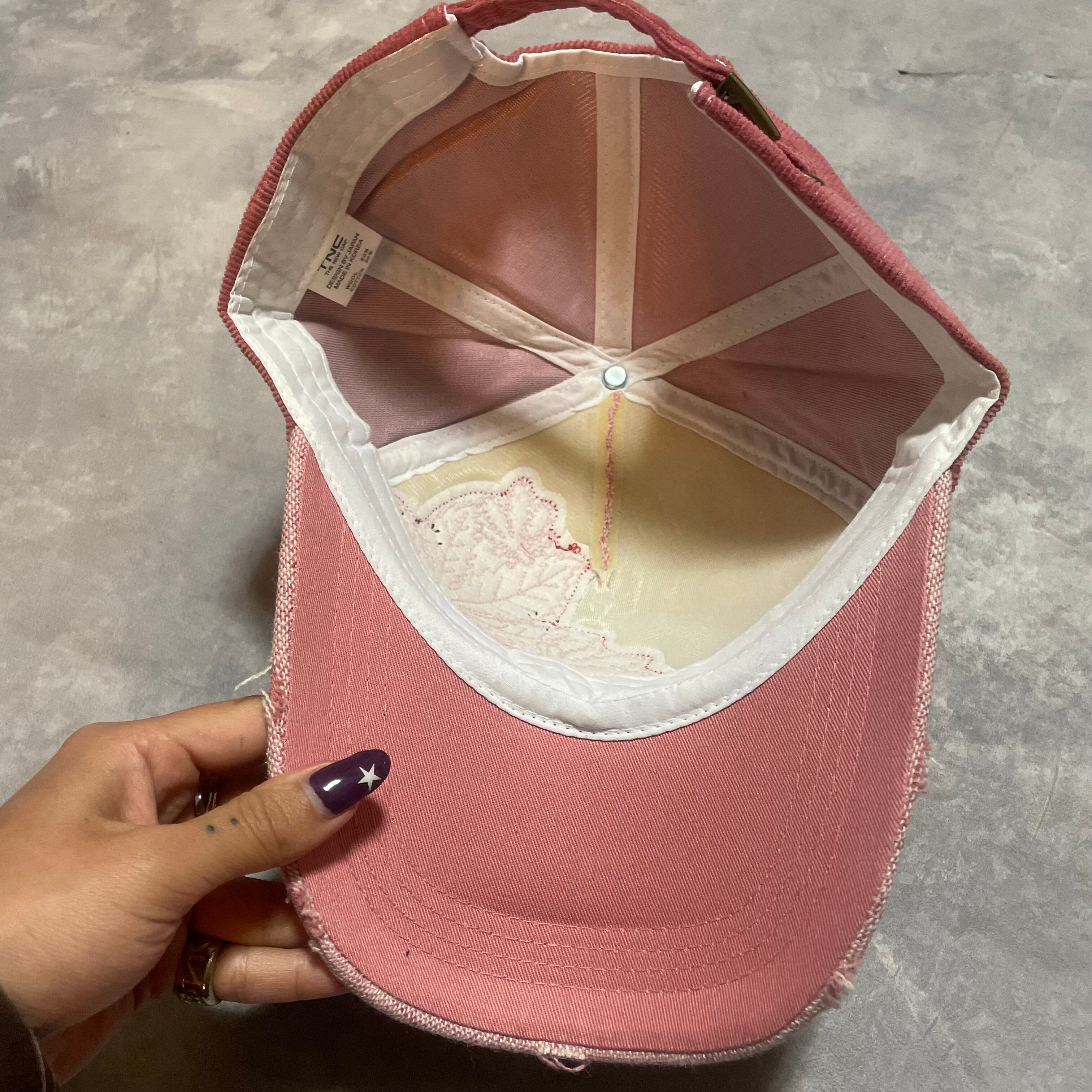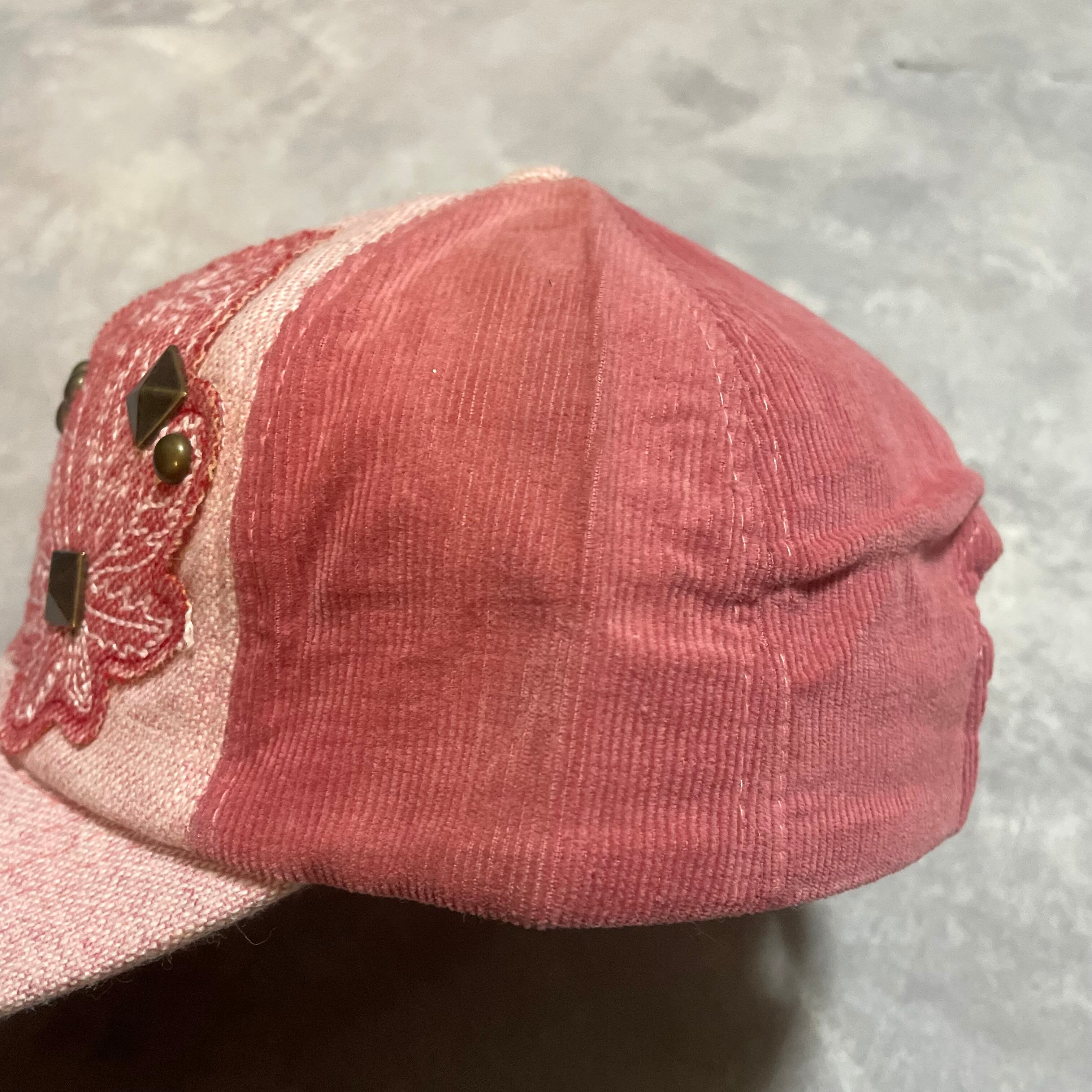 corduroyの素材にボタニカル柄とスタッズがcoolな冬仕様cap ピンクver.