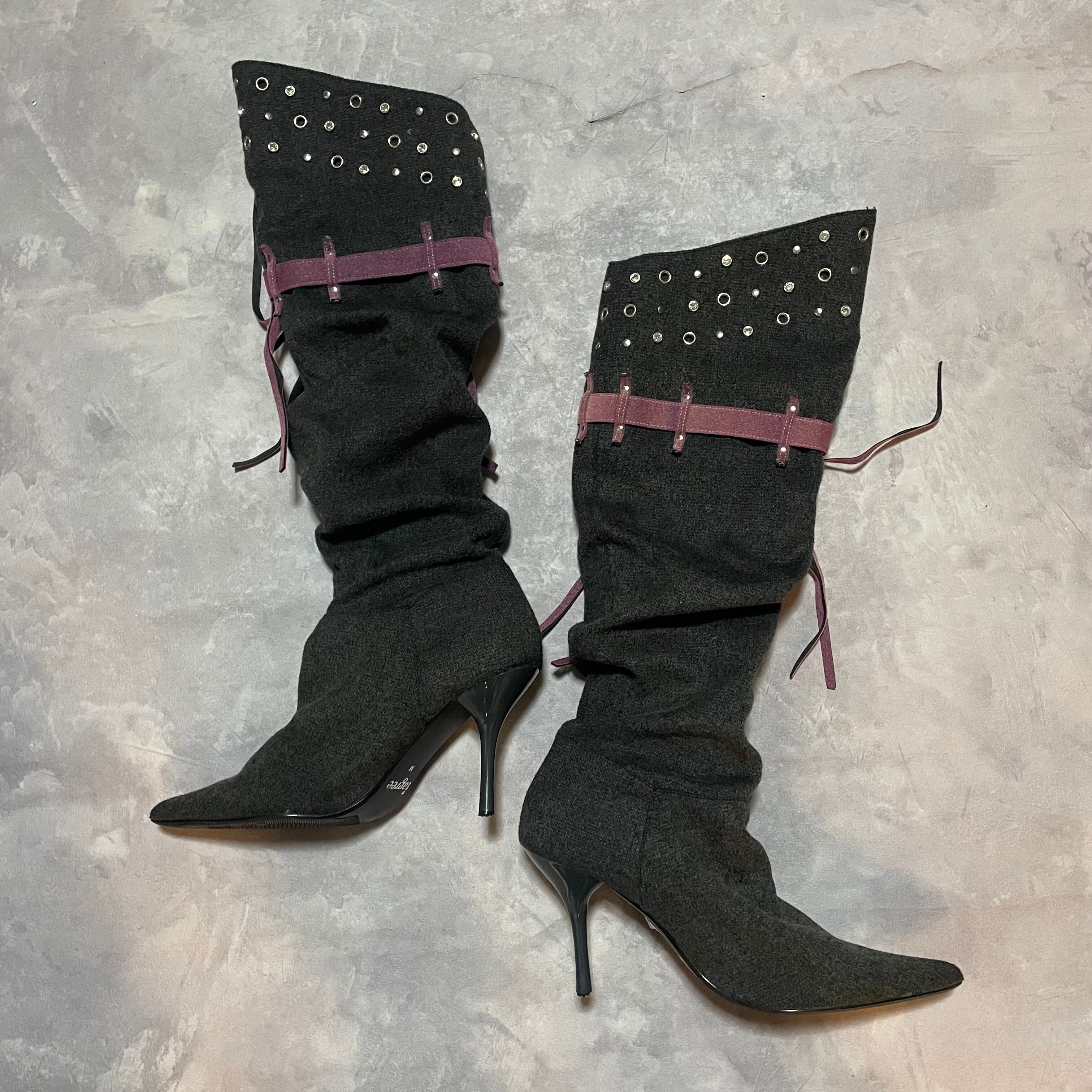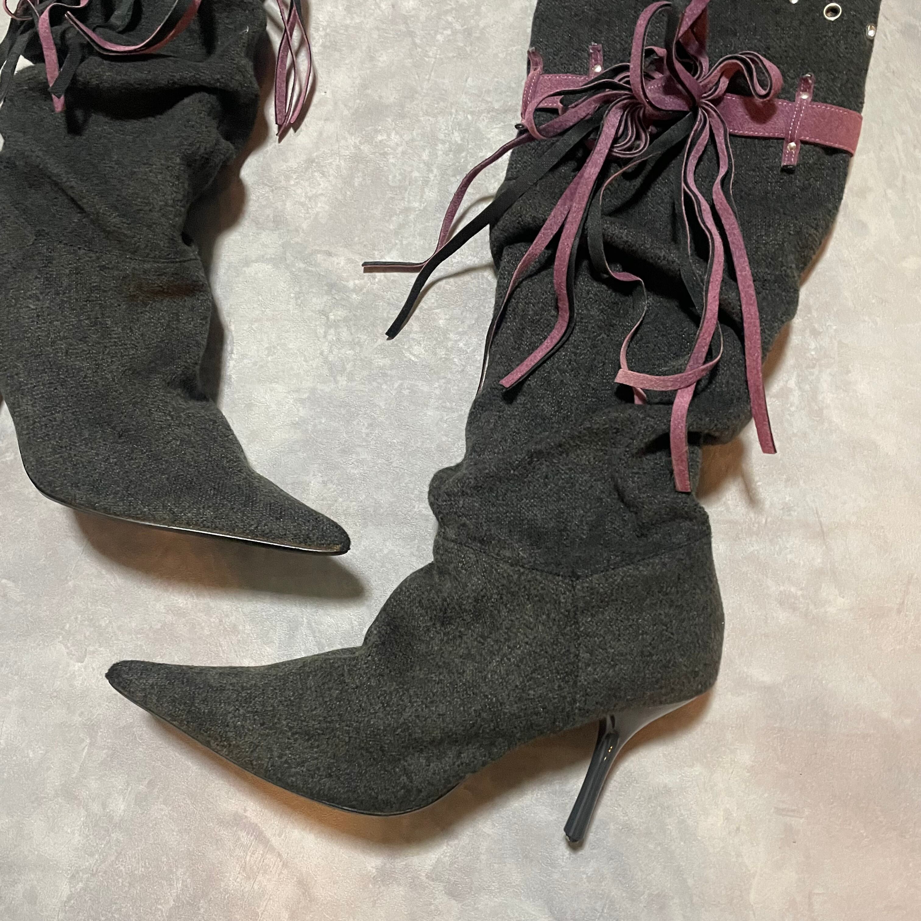 charcoal ×purpleのカラーリングまで完璧なヒールブーツ