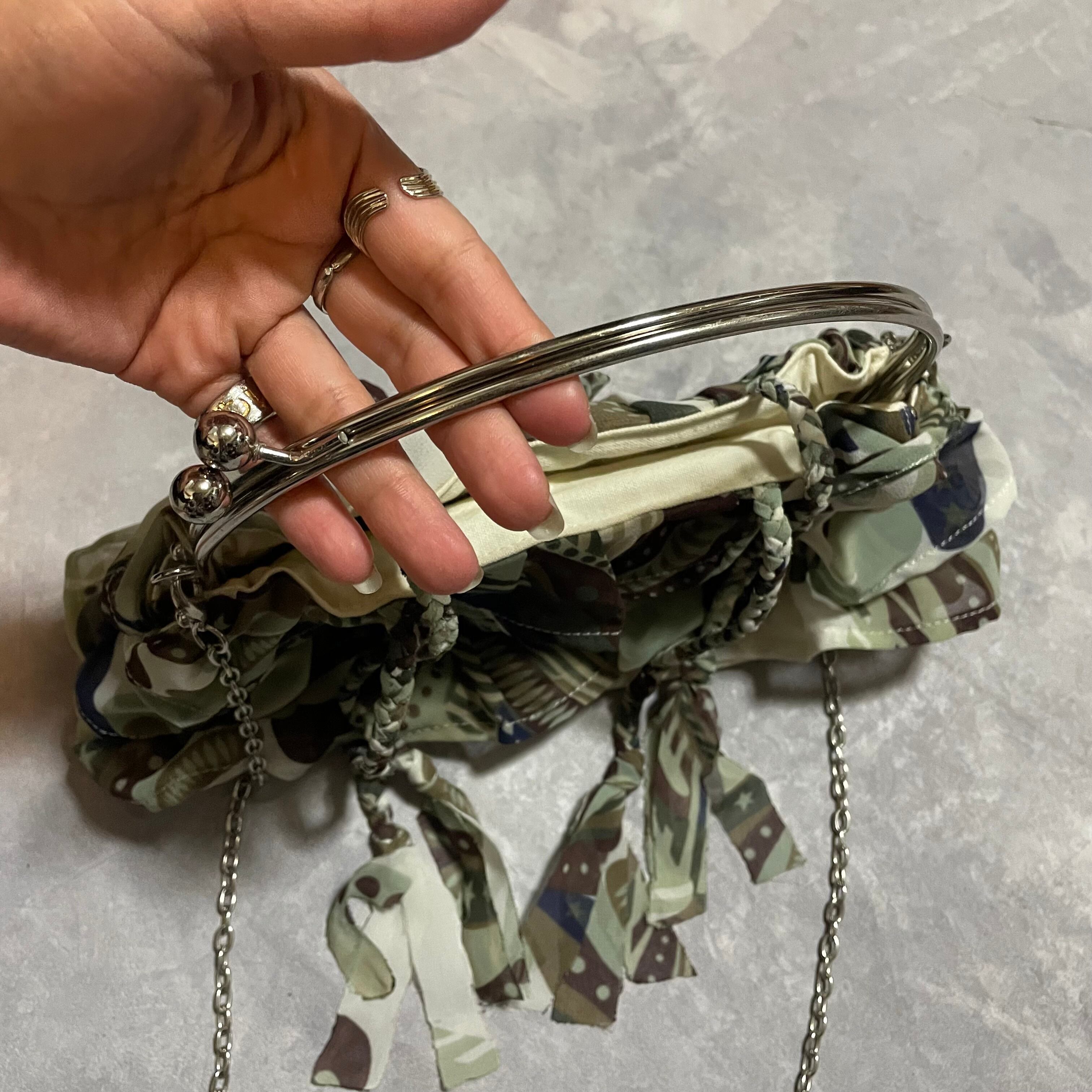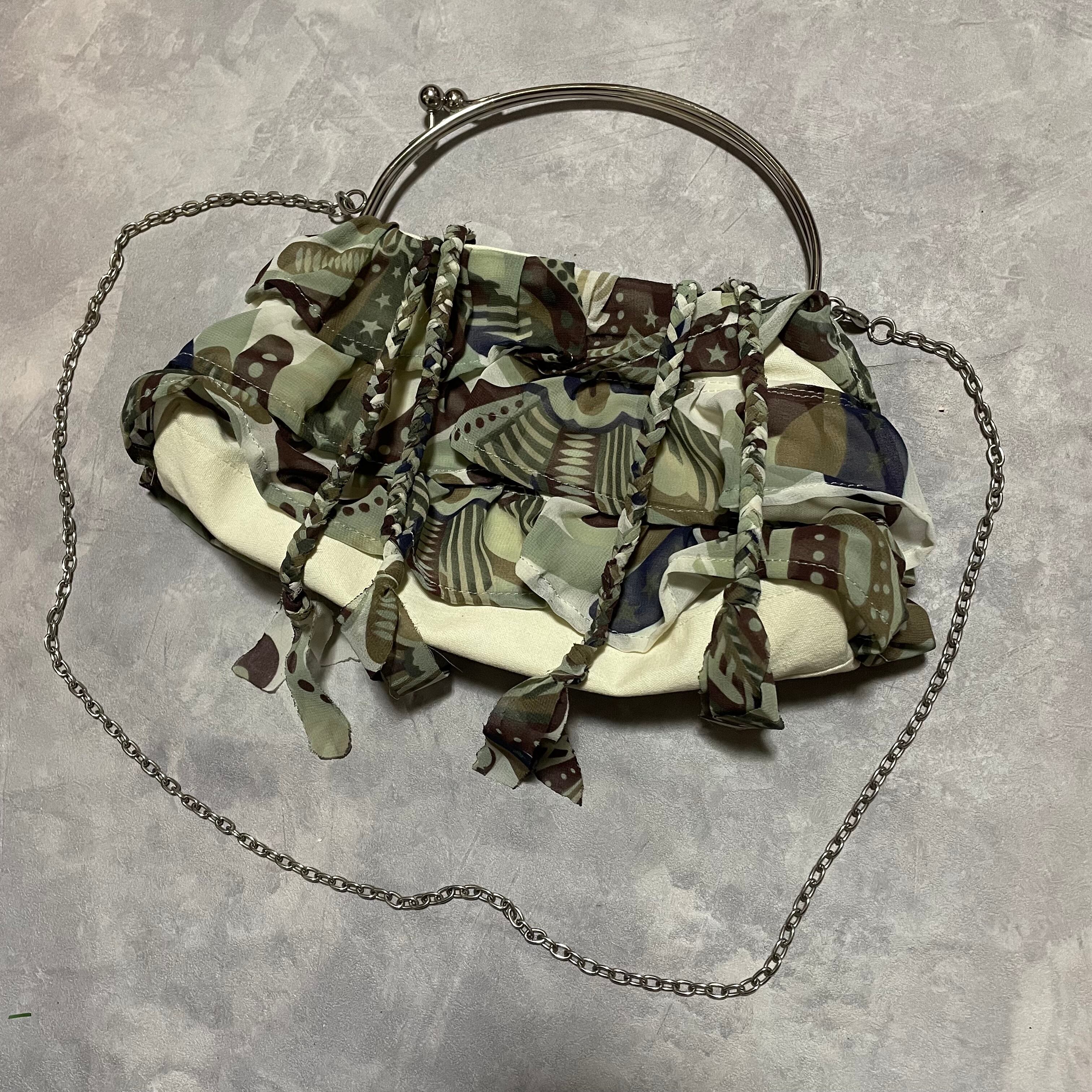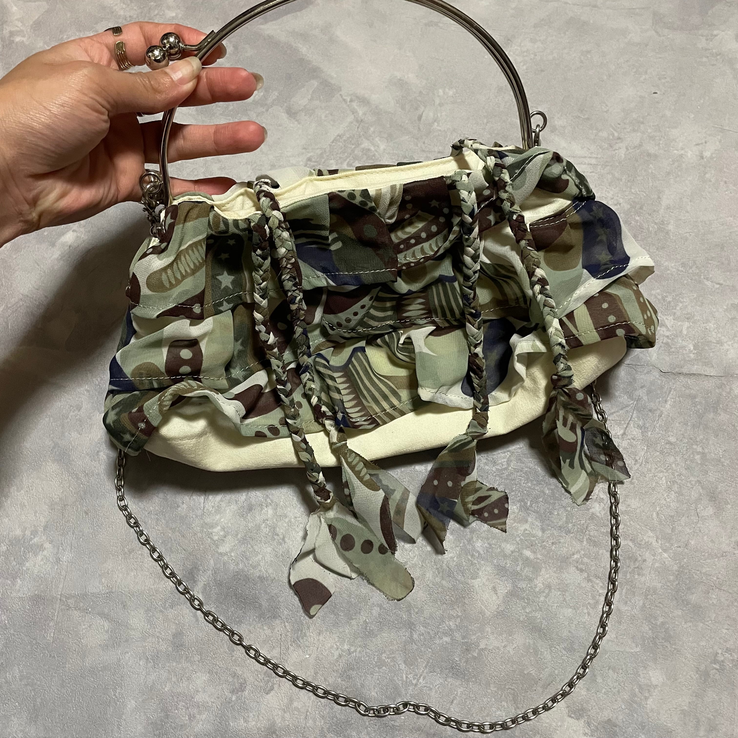 ボタニカル×star☆の柄のフリルや三つ編みの紐のデザインが斬新なパーティーbag