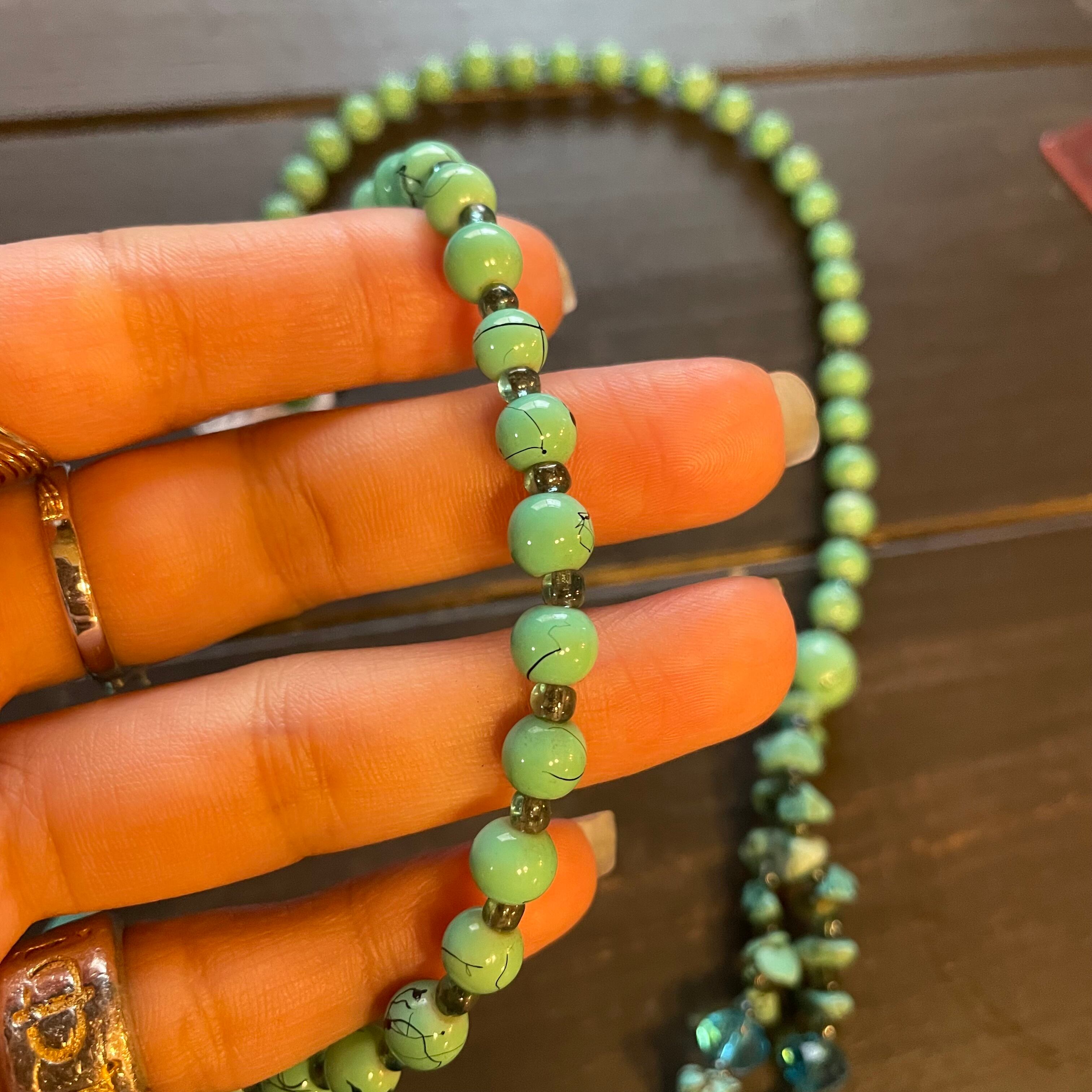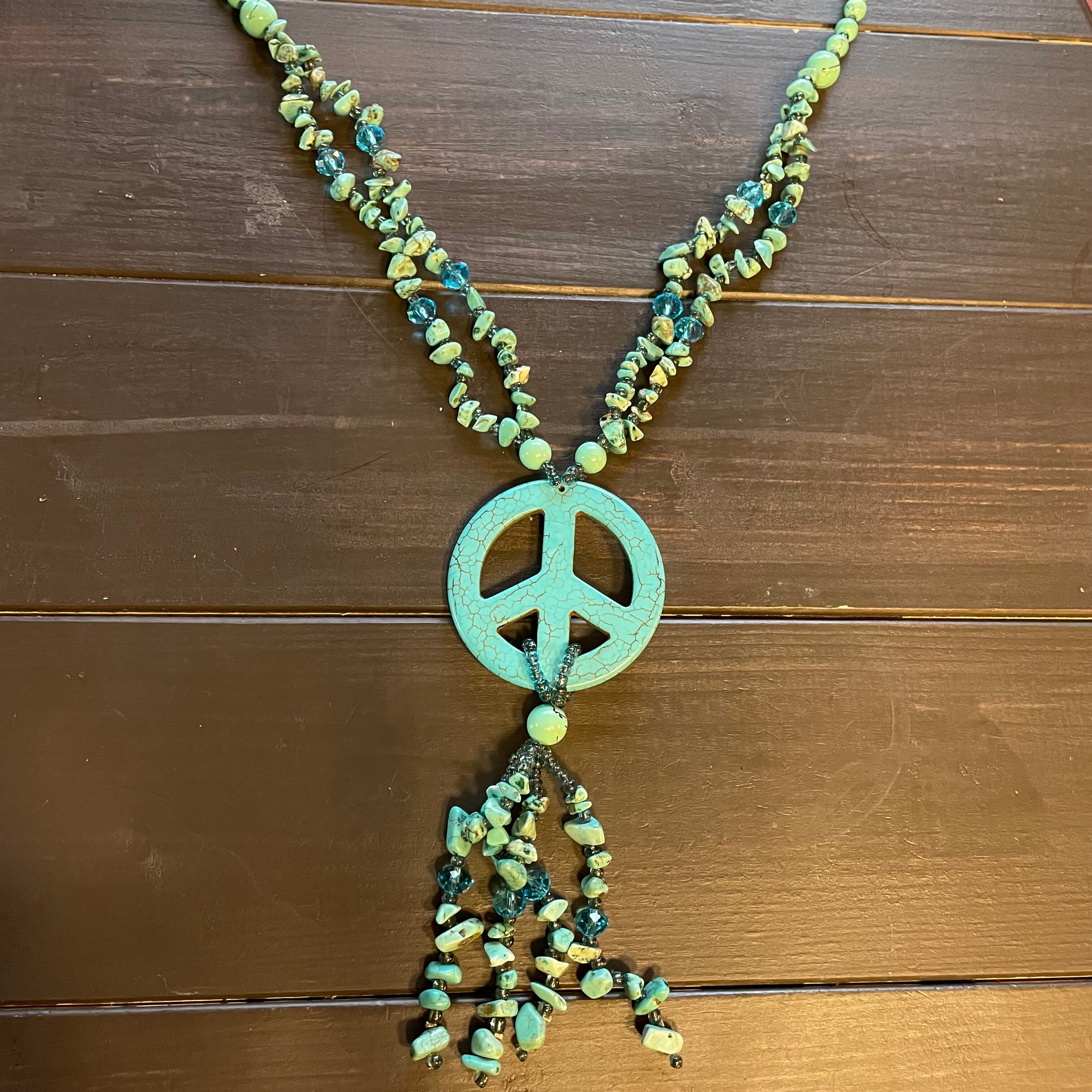 鮮やかな水色が目を引く天然石を使ったネックレス