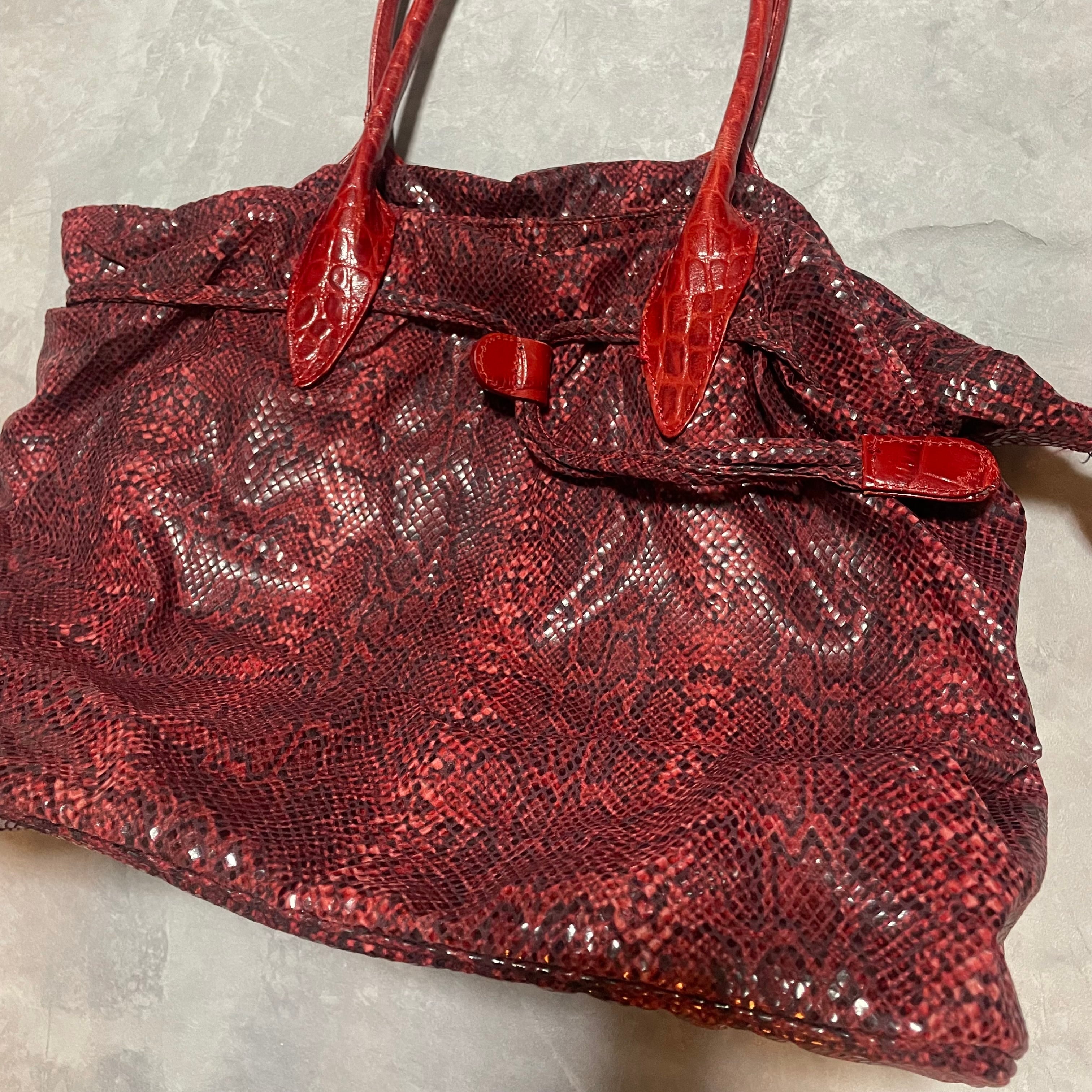 リアルならではの柔らかく軽い質感、アバンギャルドなredが魅力のbag