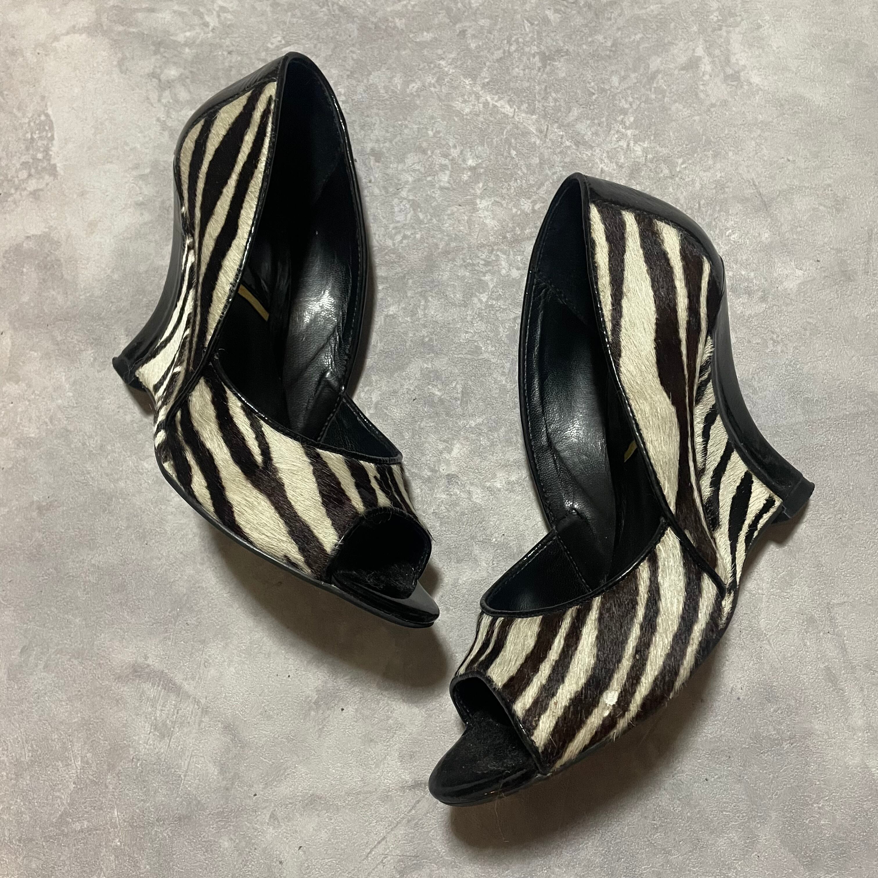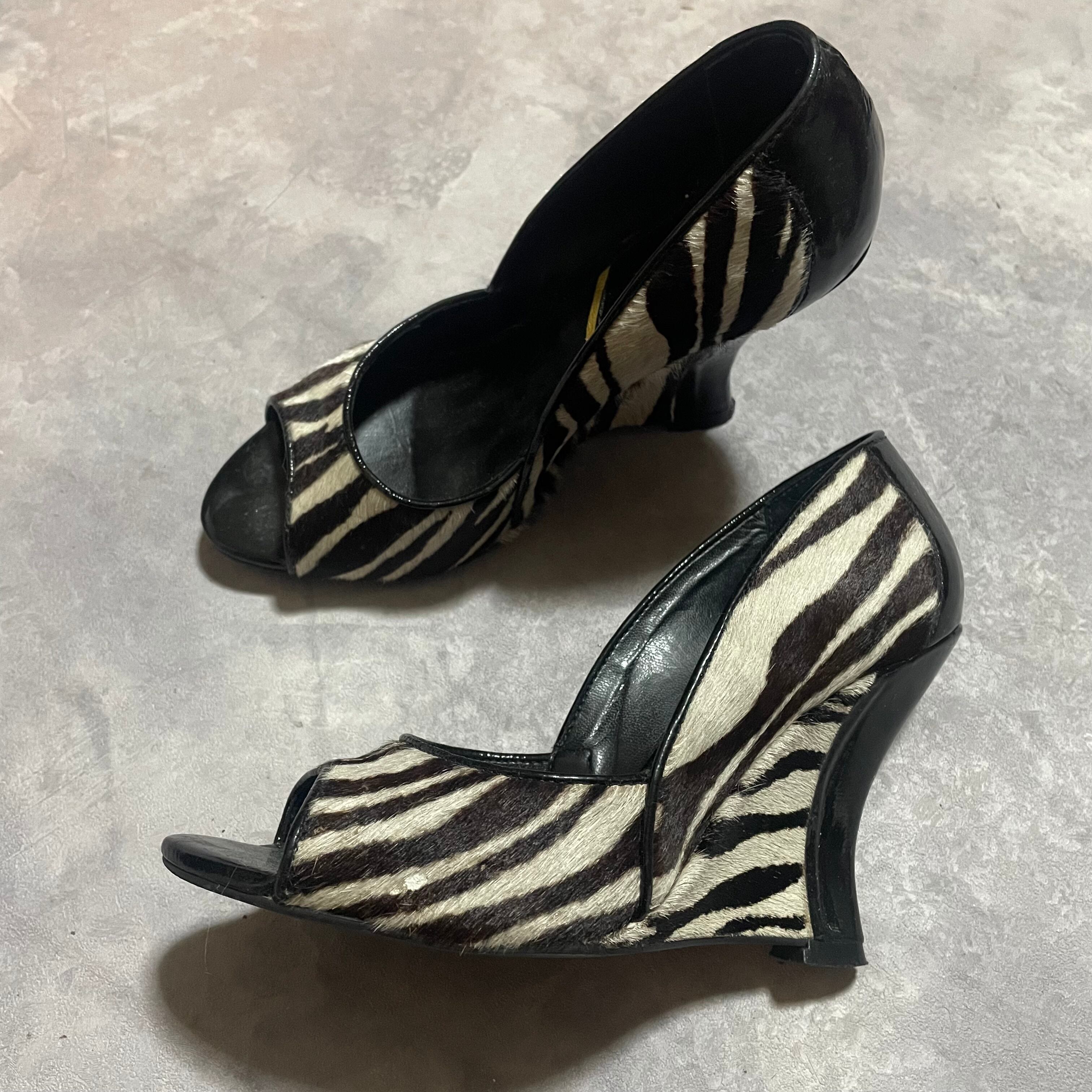 ハラコleatherの毛並みにzebra柄がcoolなウェッジソールsandal
