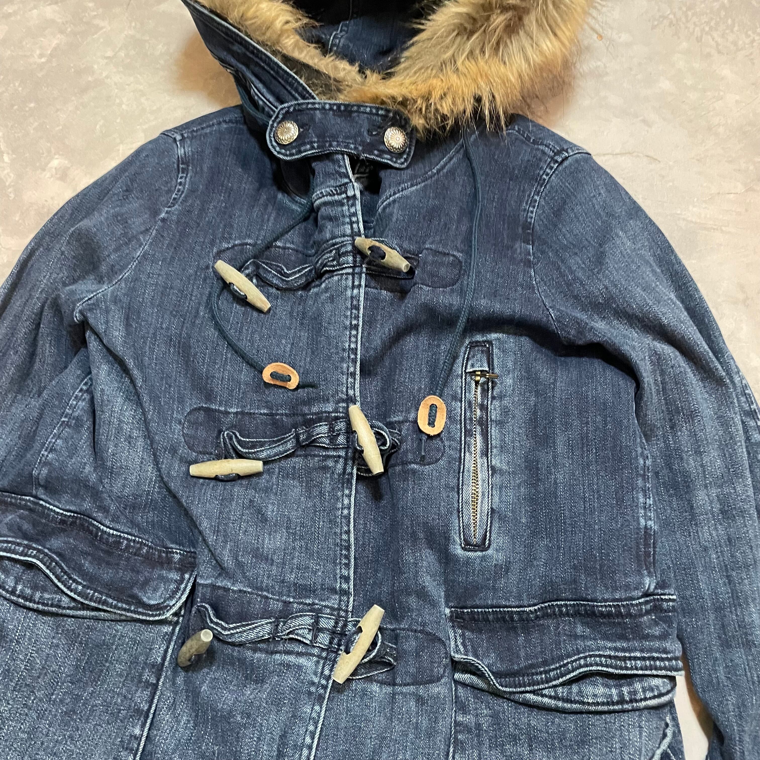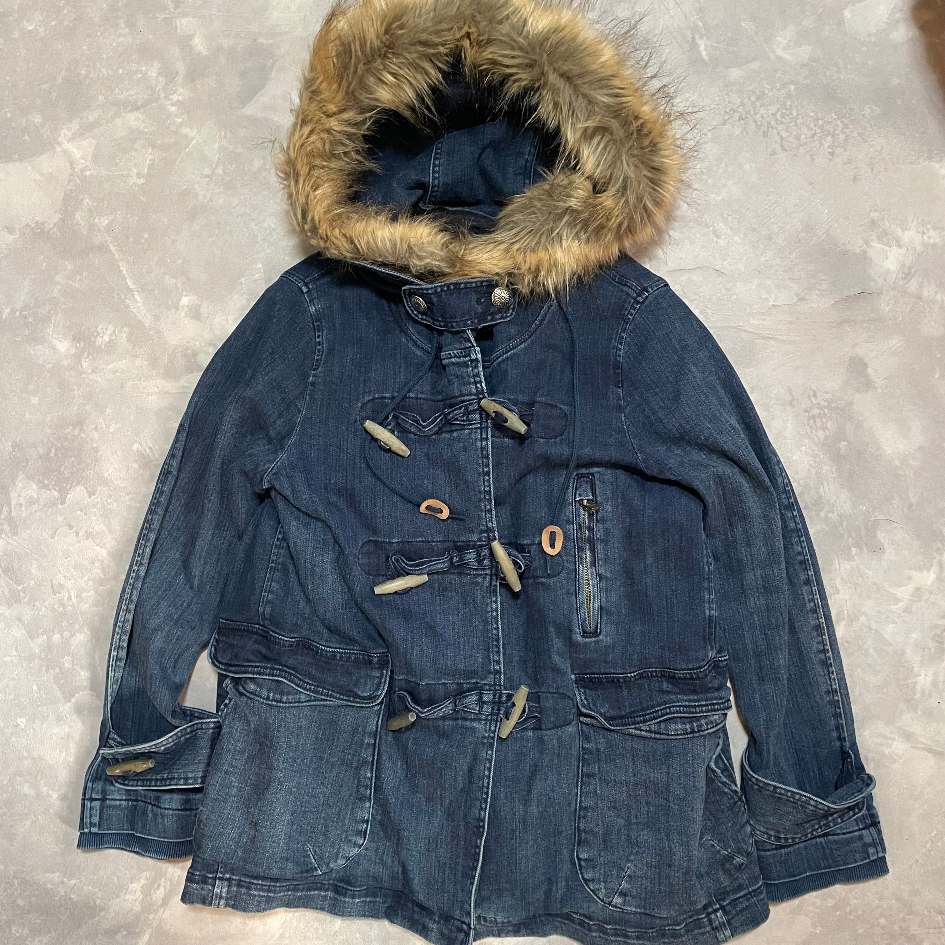 デニム×ファーの組み合わせが斬新なダッフルコート