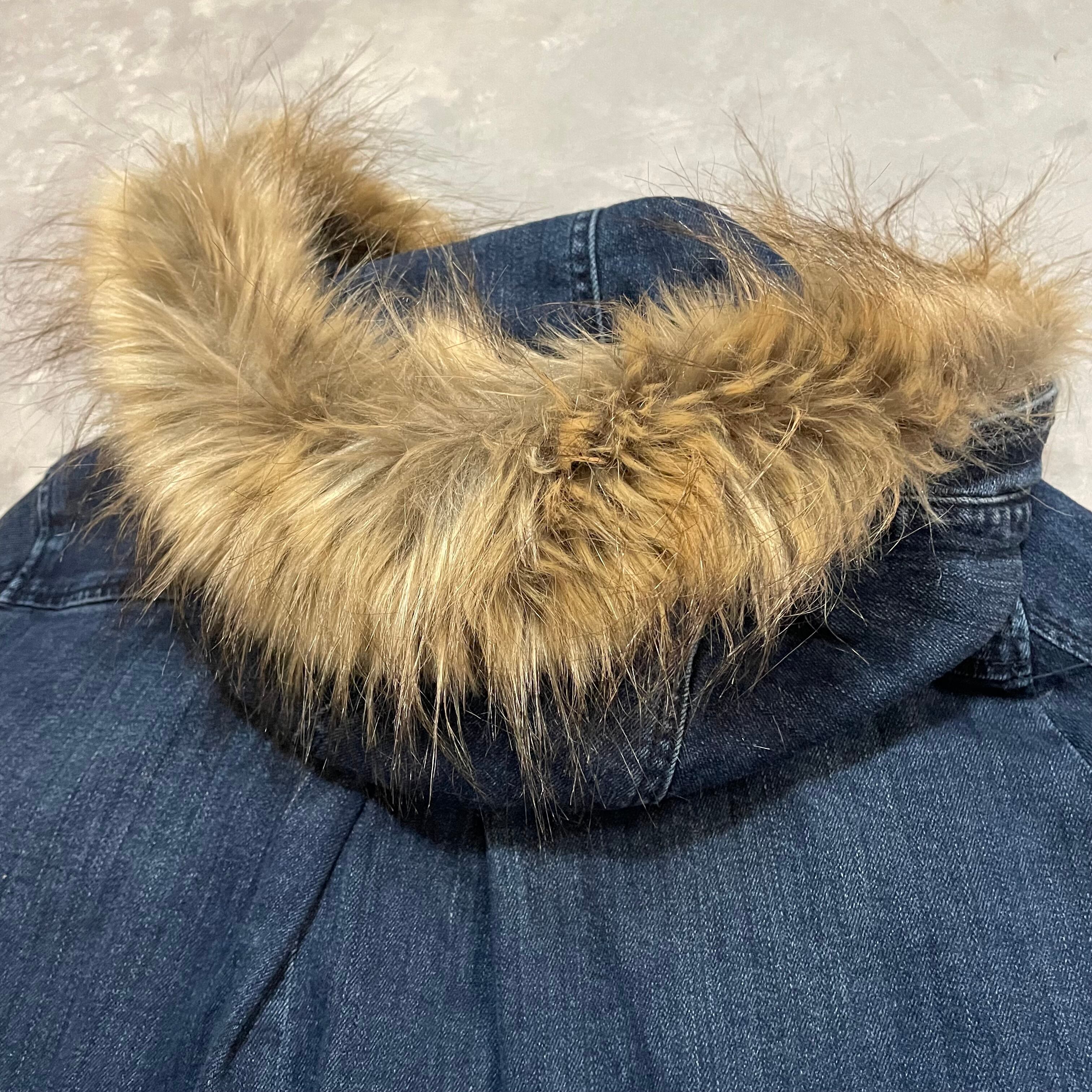 denim & fur duffle coat