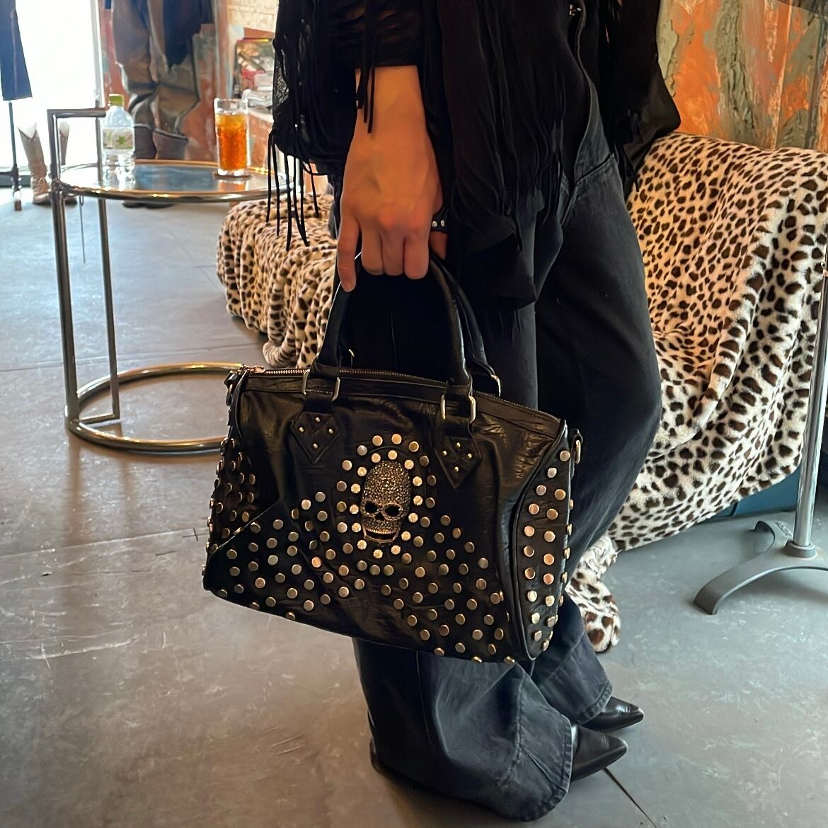 ゴテゴテのbijouとstudsたっぷりのskullモチーフハンドバッグ