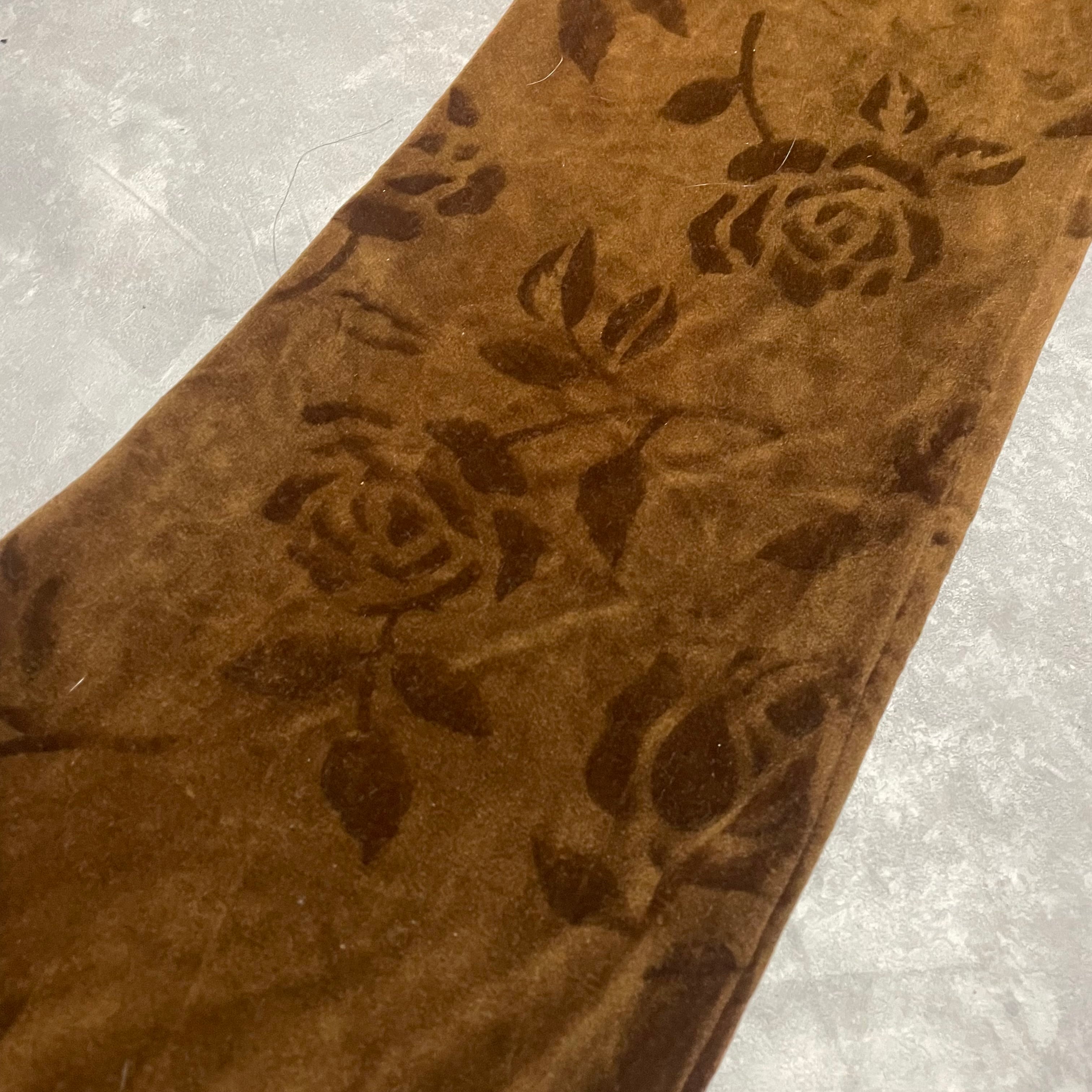 薄らと浮かぶベロア素材のバラ柄がcoolなフレアパンツ