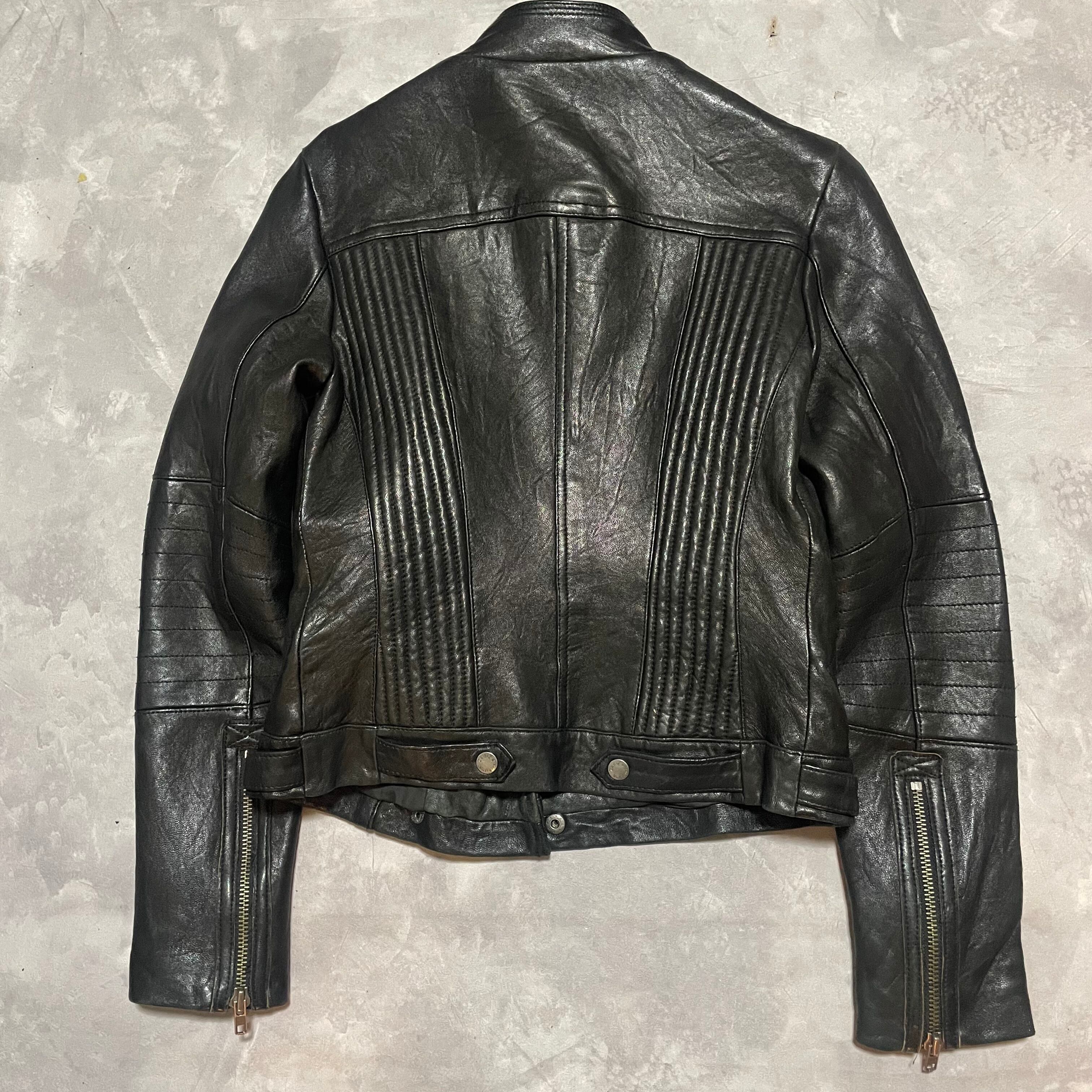 ツヤのあるleather、タイトなシルエットがcoolなライダースジャケット
