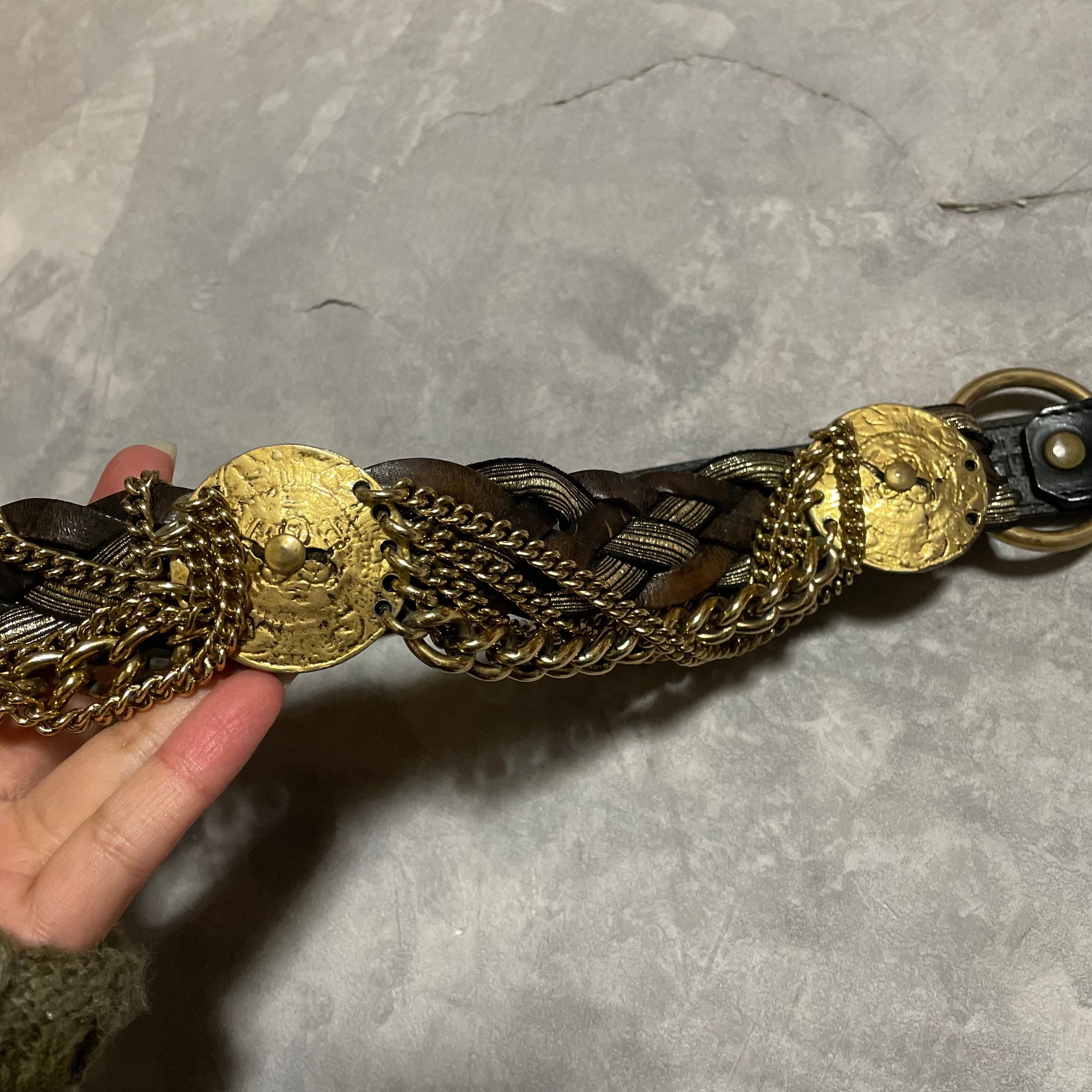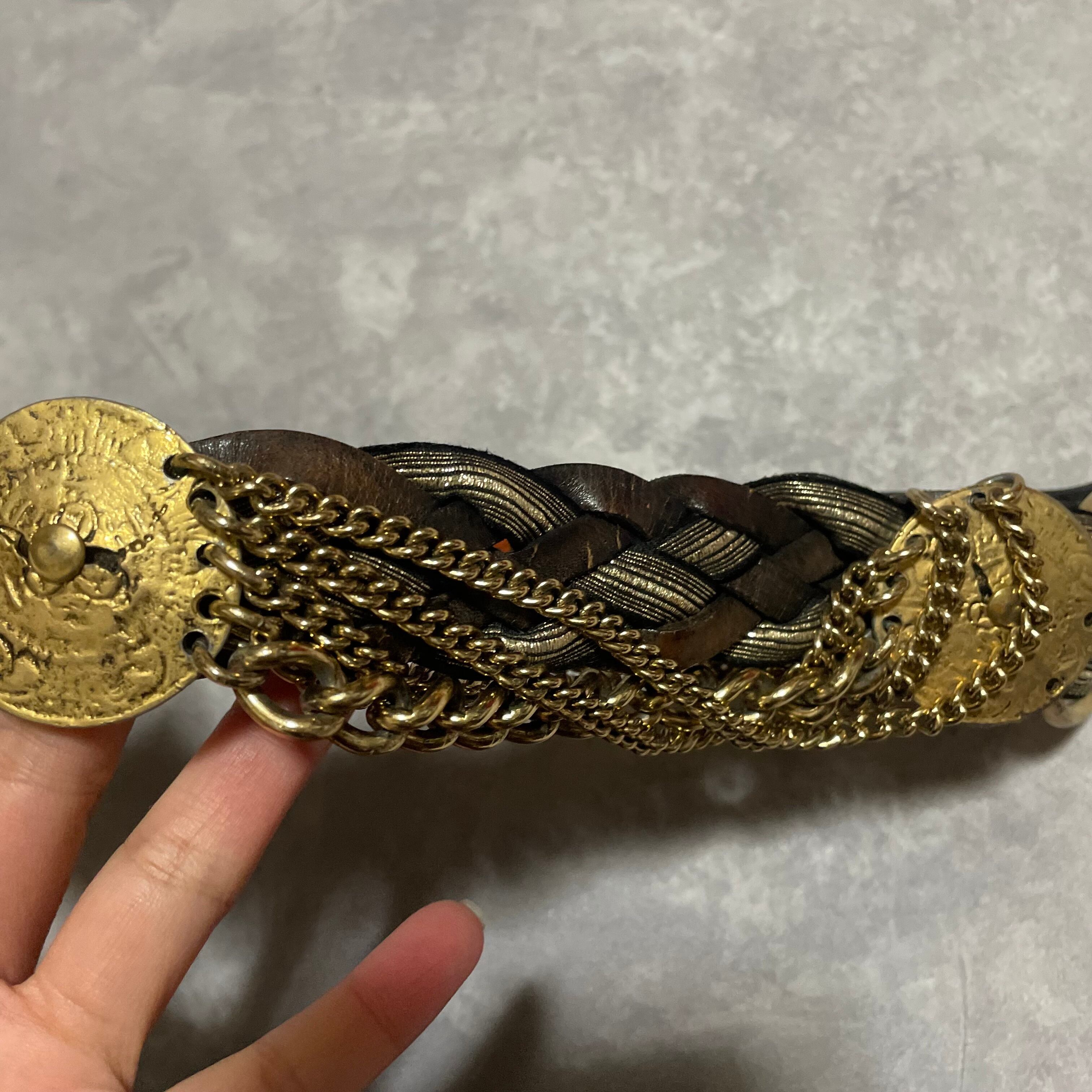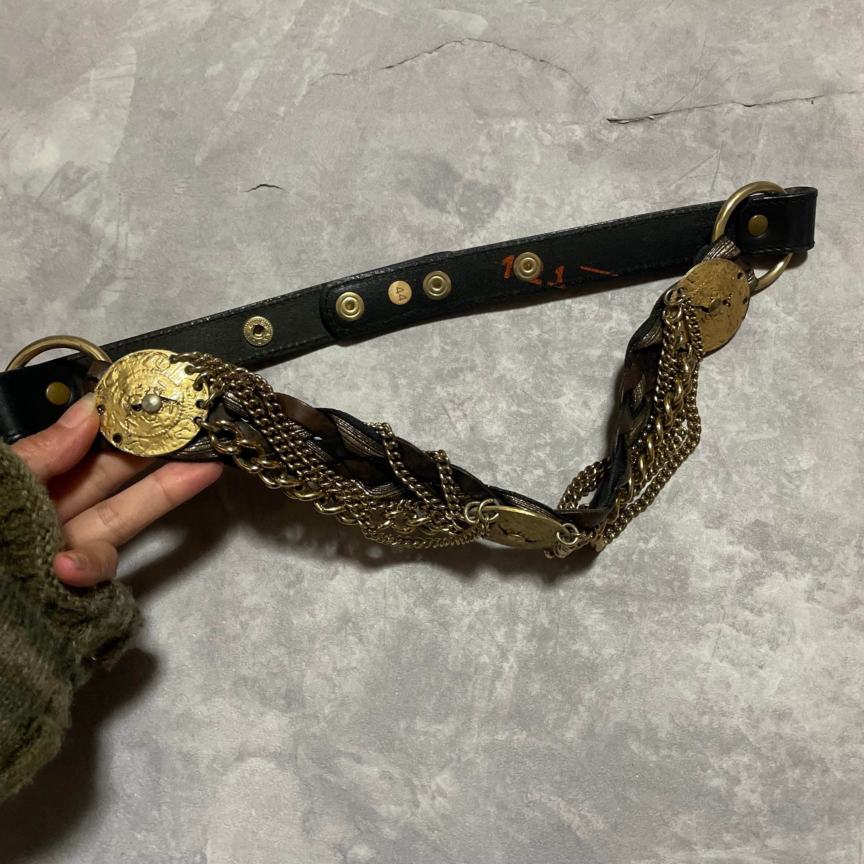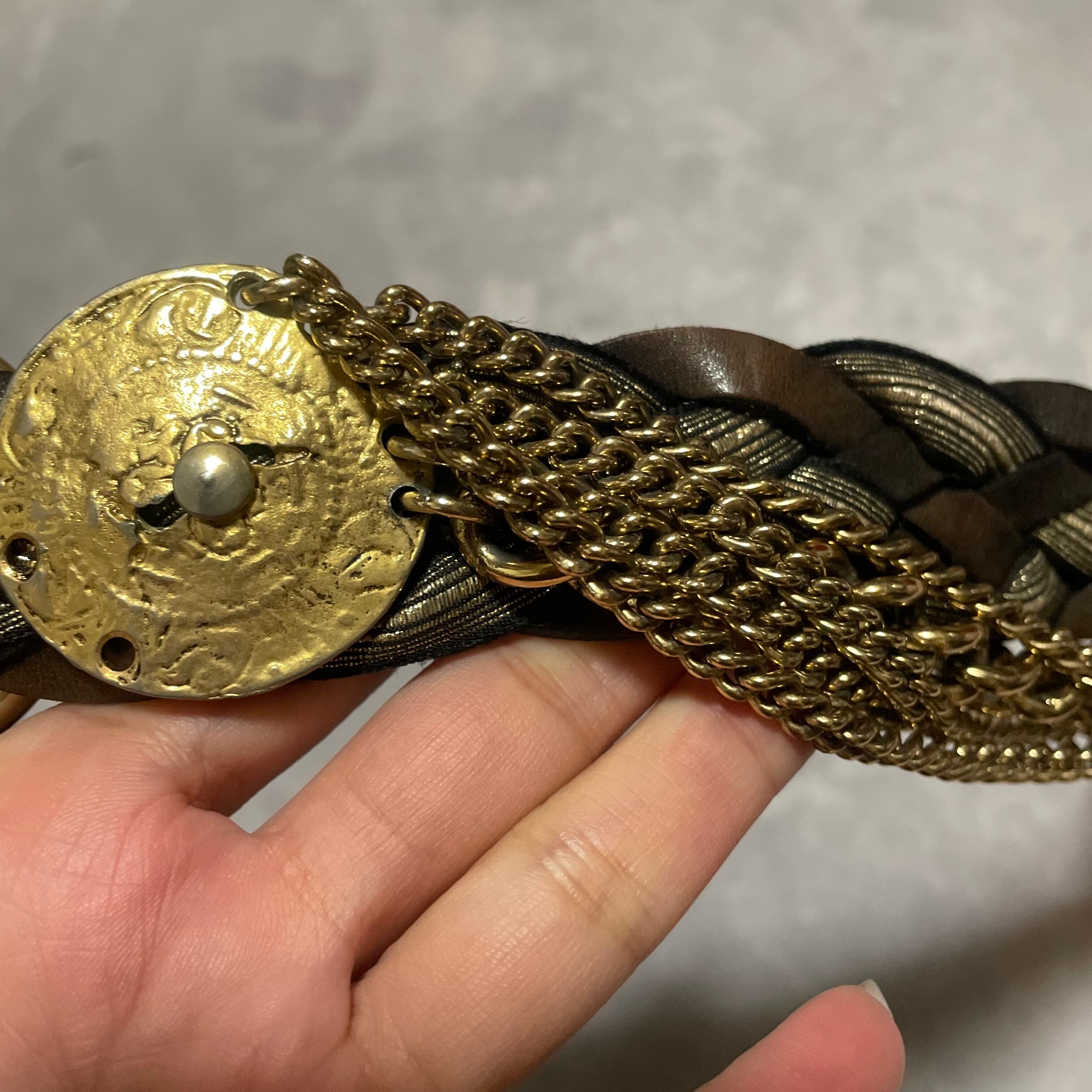 made in itaryのゴールドのmetalとチェーンのデザインが特徴的なベルト