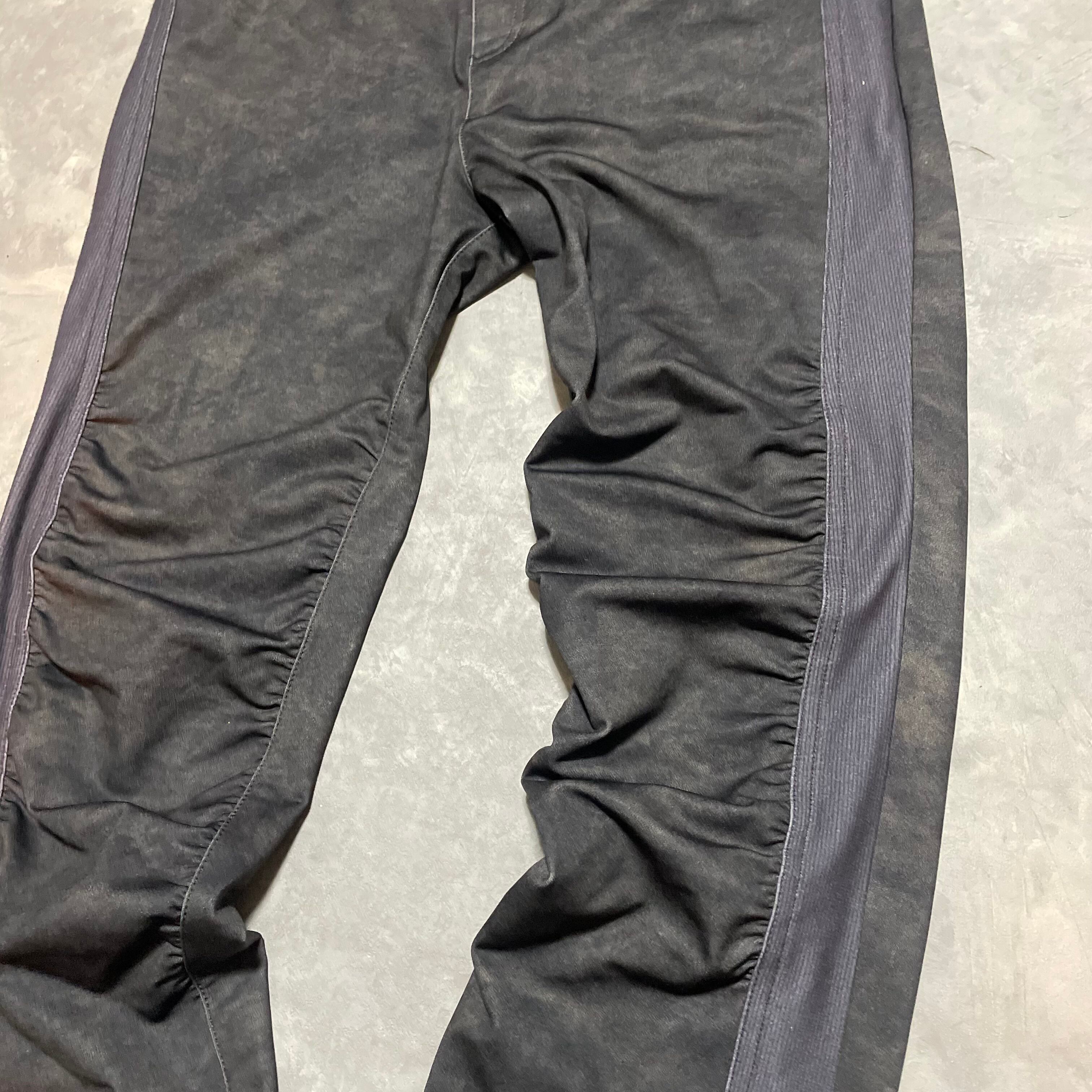 ダメージ感のある色落ちカラーの生地をクシュクシュと寄せたディテールが魅力のpants