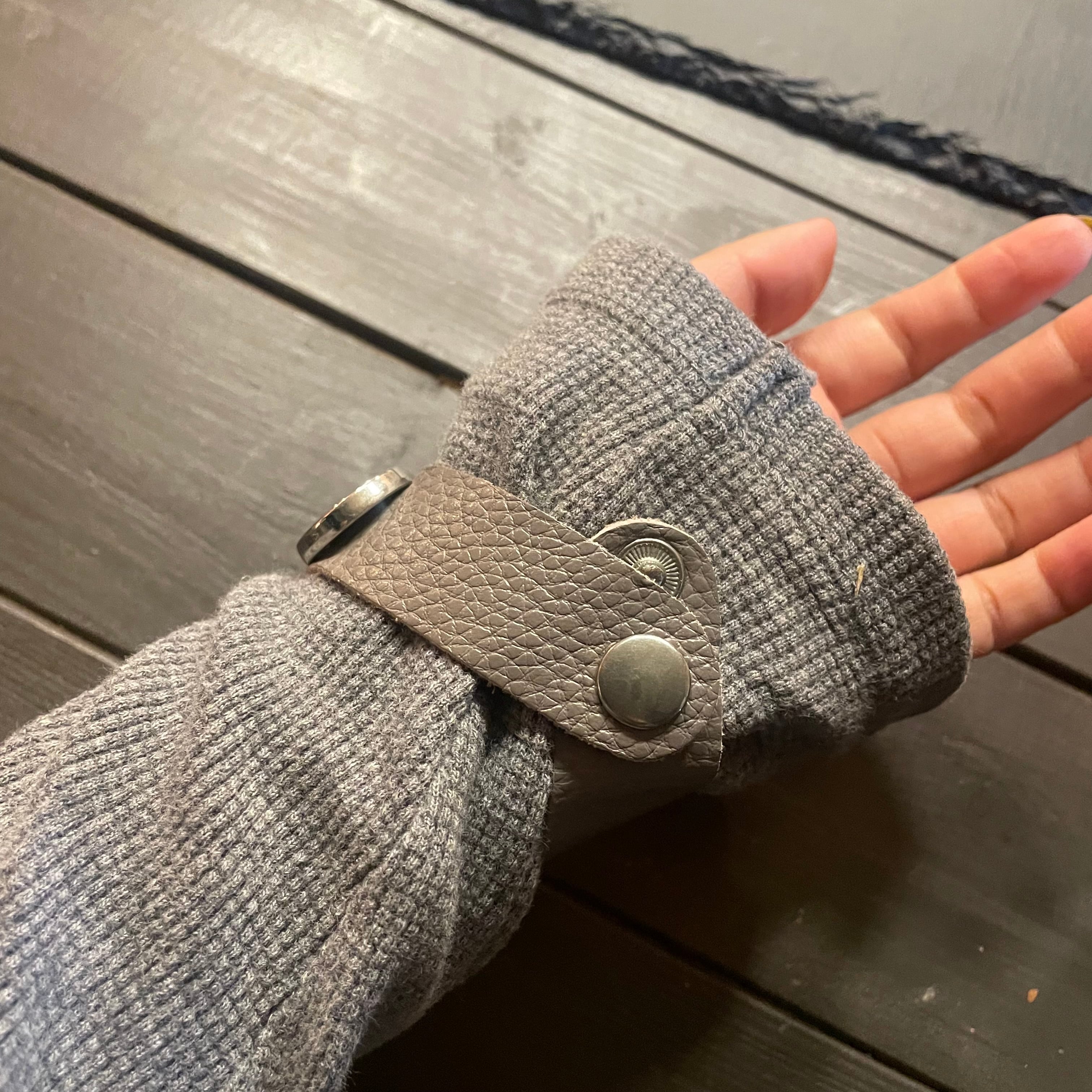 leather に大きめのメタルデザインがcoolなバングル