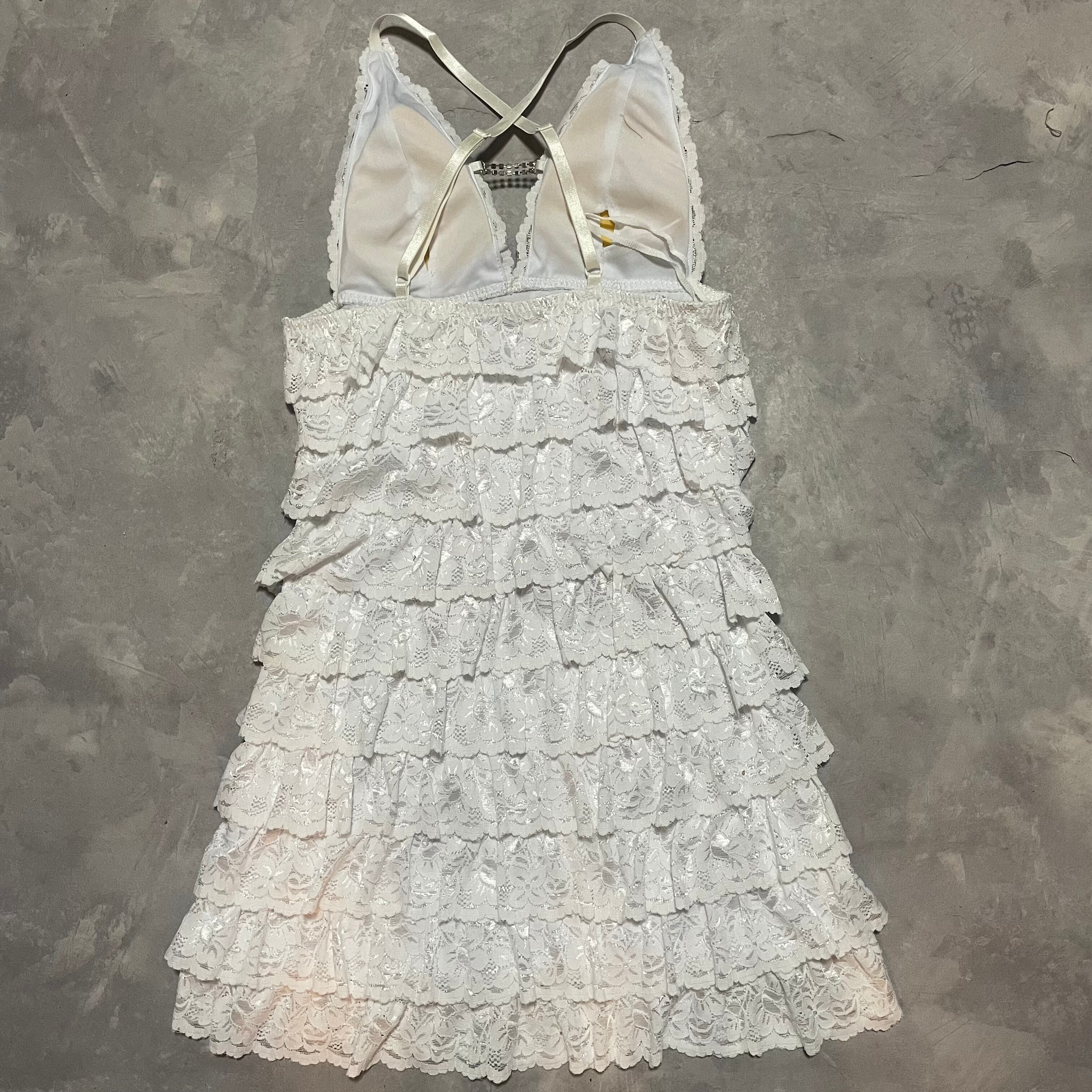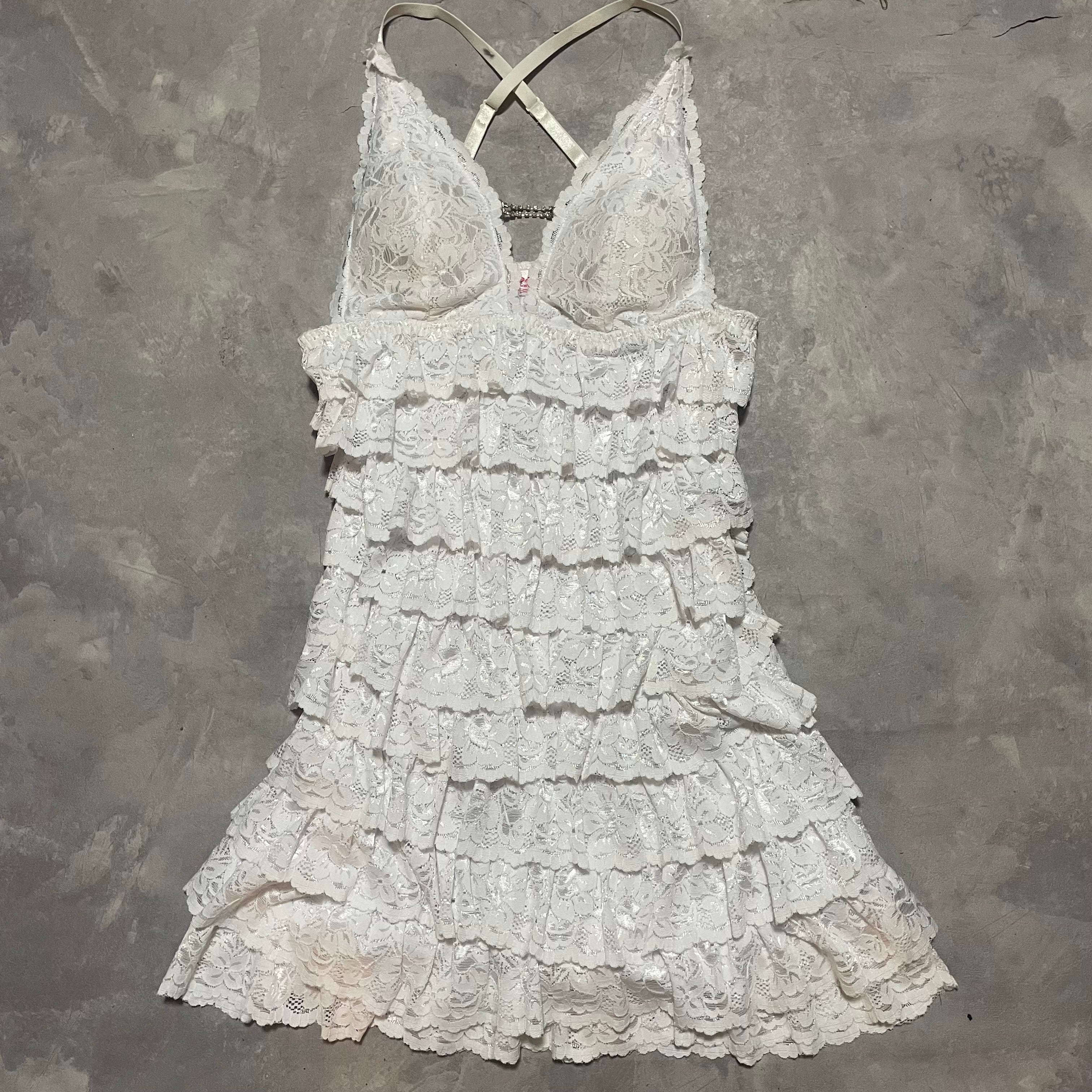 何段にも重なったレースのフリルがcuteなミニワンピース