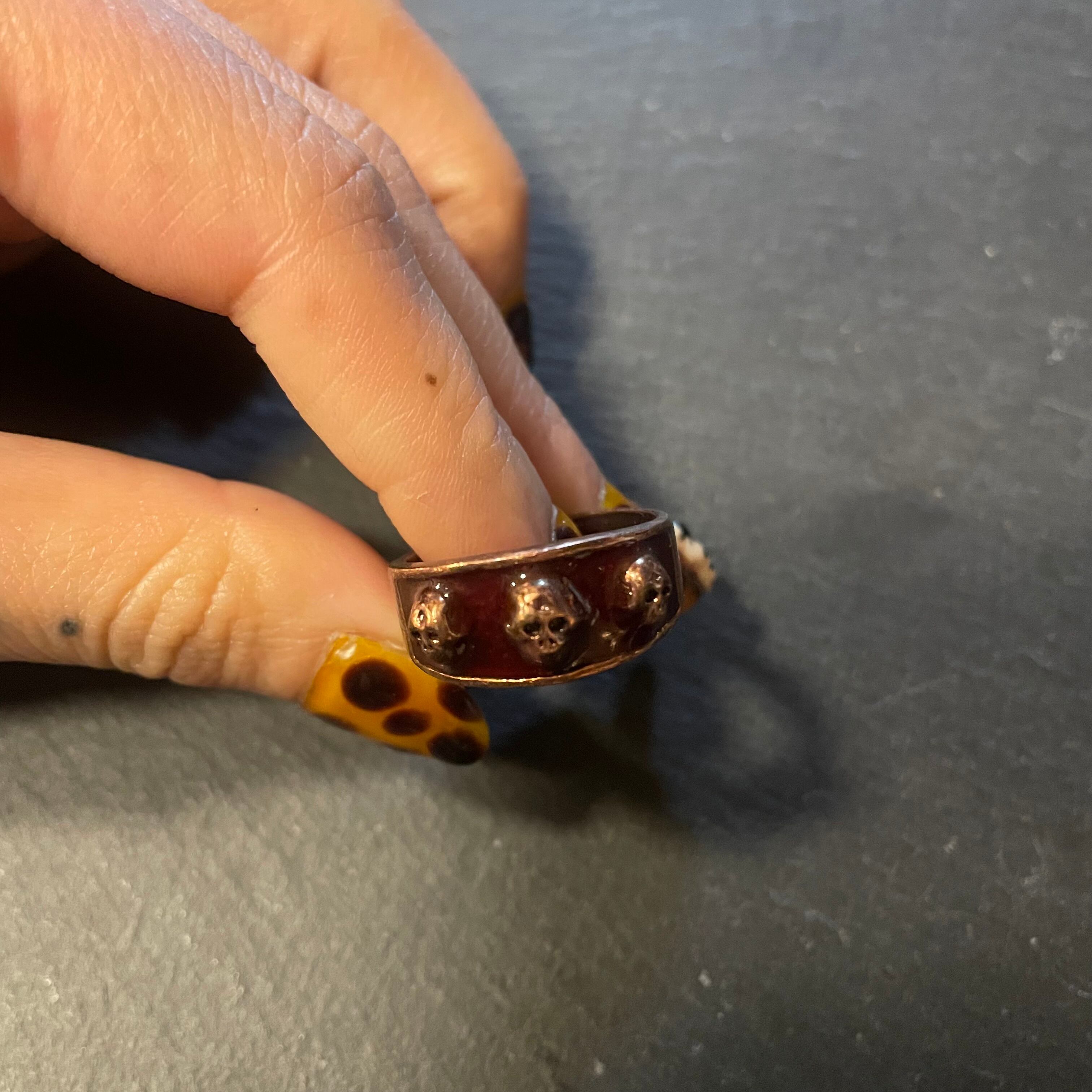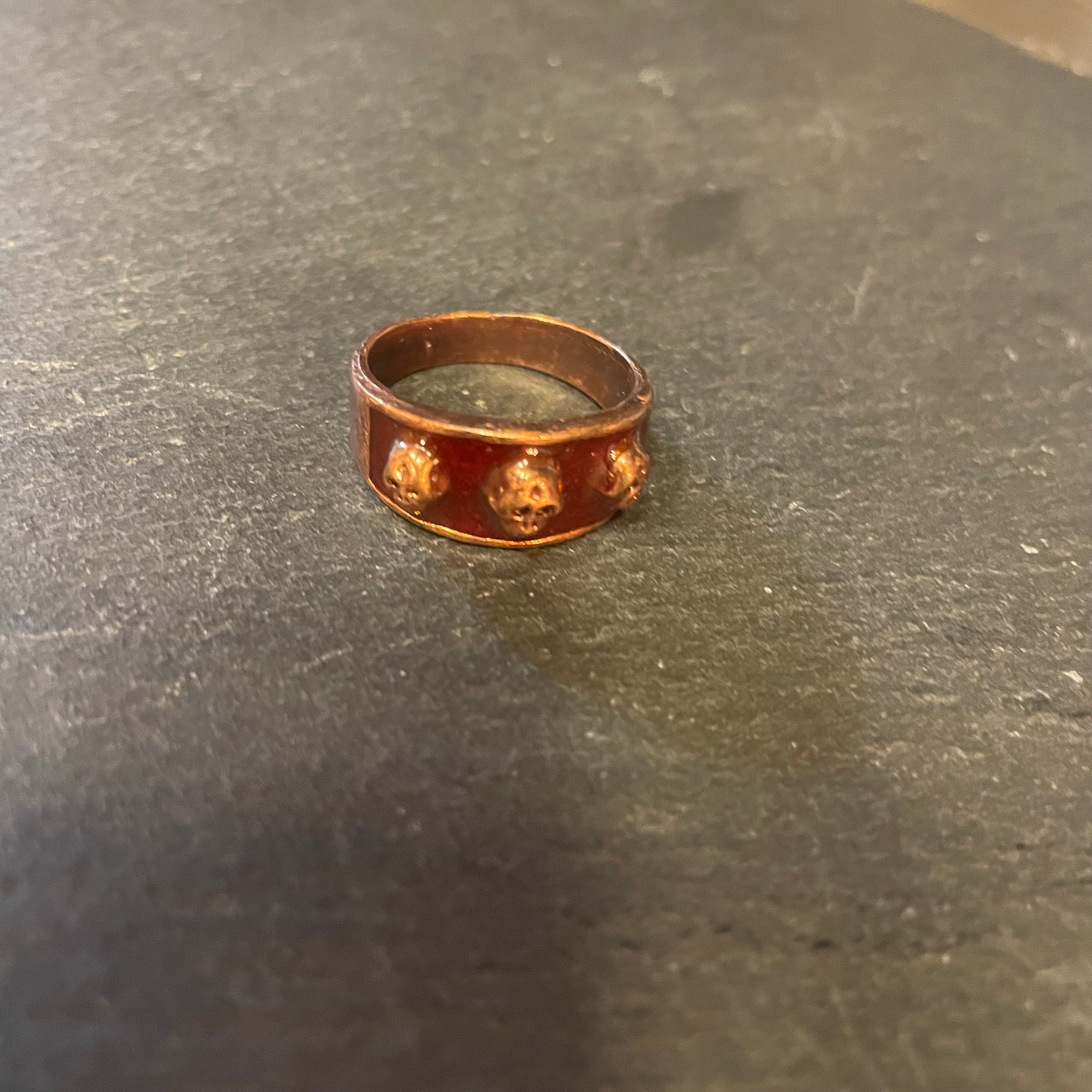 3つのスカルモチーフが刻まれたコッパーカラーのリング